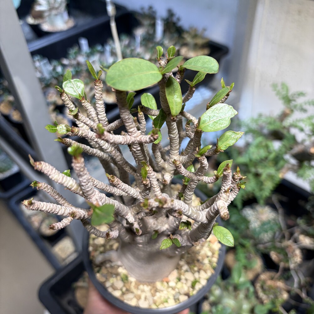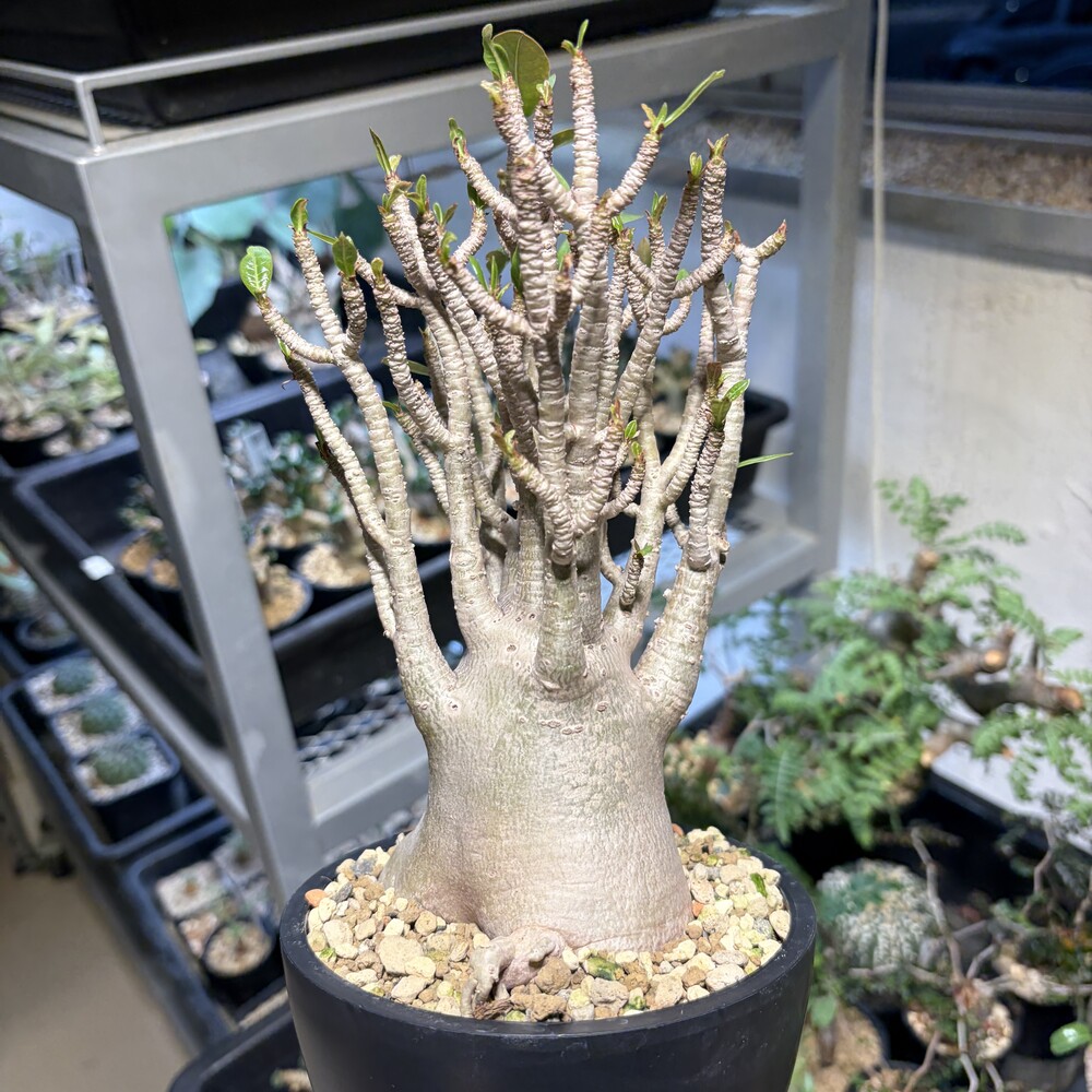 'Caudex' 식물들은 늦가을부터 자연스럽게 잎이 떨어집니다. (환경에 따라 잎이 지지 않을 수 있습니다.) 잎이 떨어지기 시작하면 서서히 물을 줄여나가며 휴면기인 겨울 동안에는 2-3주 1회 가볍게 분무 해주시면 됩니다.