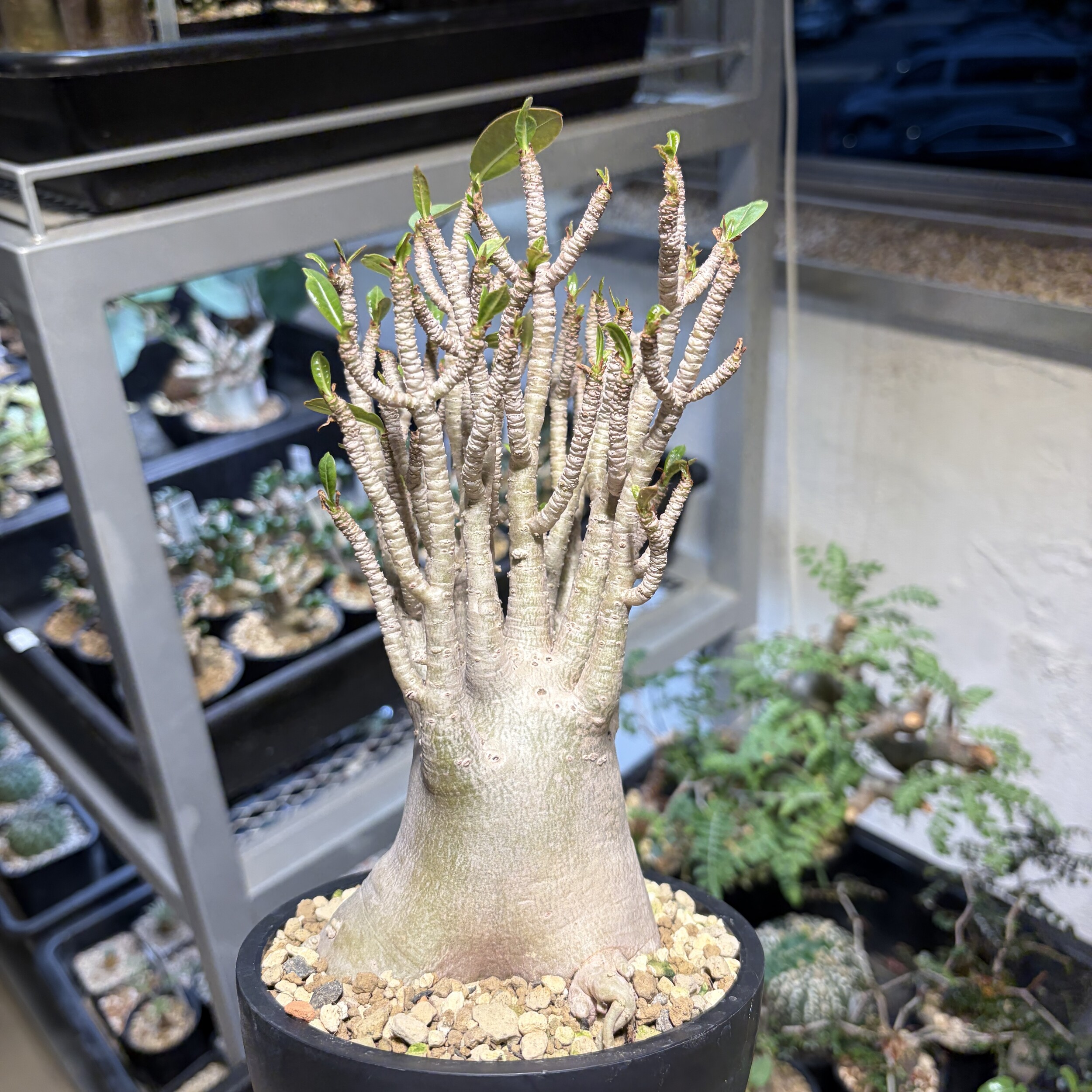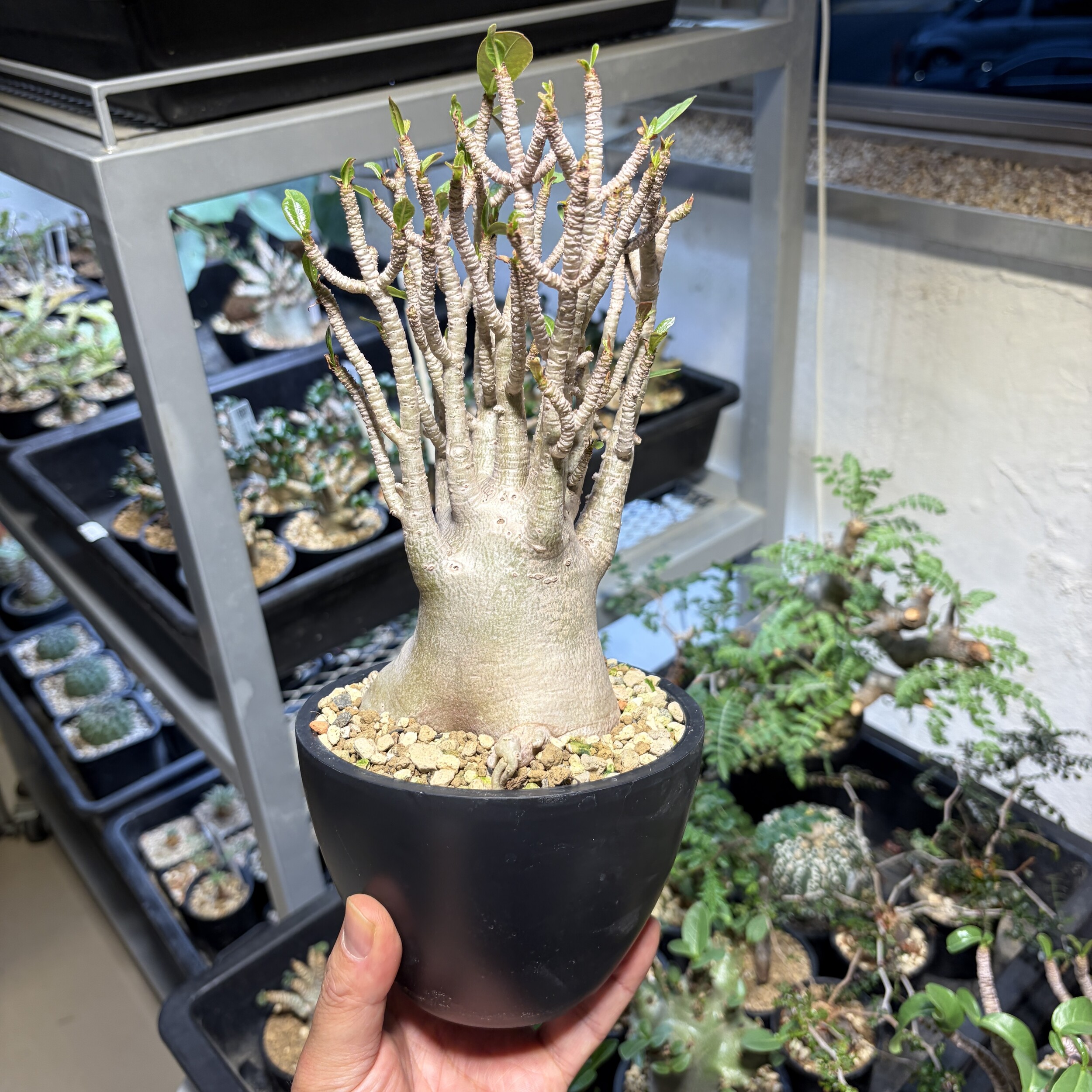 아프리카 예멘 소코트라 섬에서 유래한 식물로 독특한 보틀 트리 형태와 우아한 꽃으로 세계적으로 오랫동안 사랑받아온 대표 코덱스 식물입니다. 바오밥과 닮은 외형이 특징입니다.