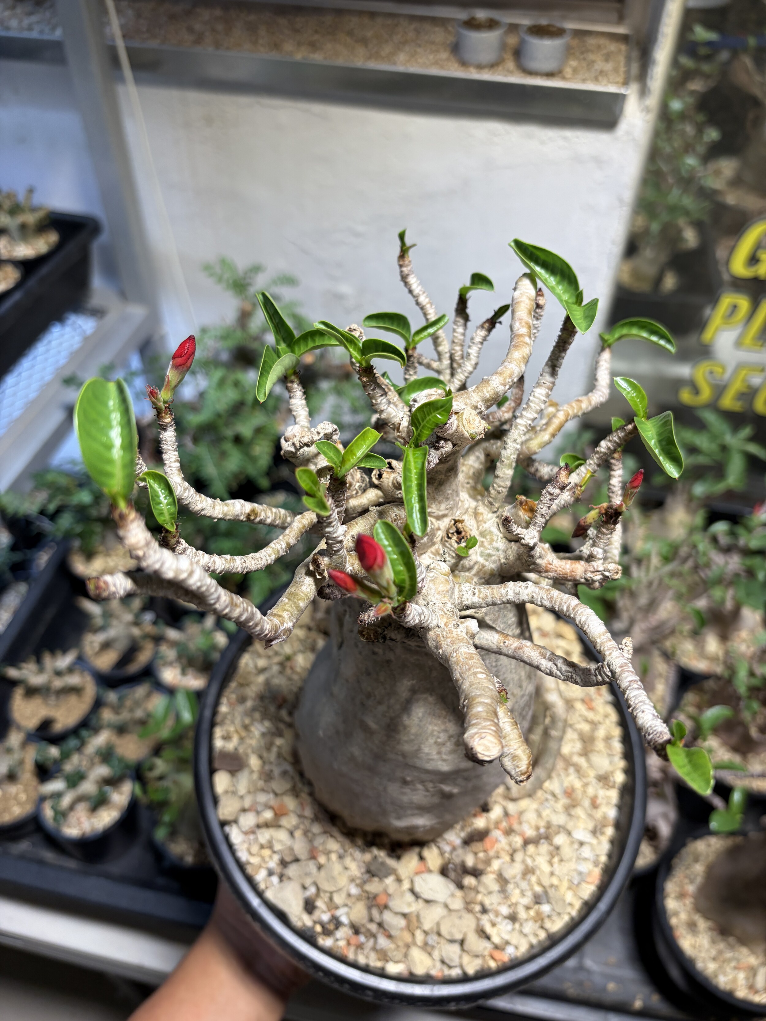 아프리카 예멘 소코트라 섬에서 유래한 식물로 독특한 보틀 트리 형태와 우아한 꽃으로 세계적으로 오랫동안 사랑받아온 대표 코덱스 식물입니다. 바오밥과 닮은 외형이 특징입니다.