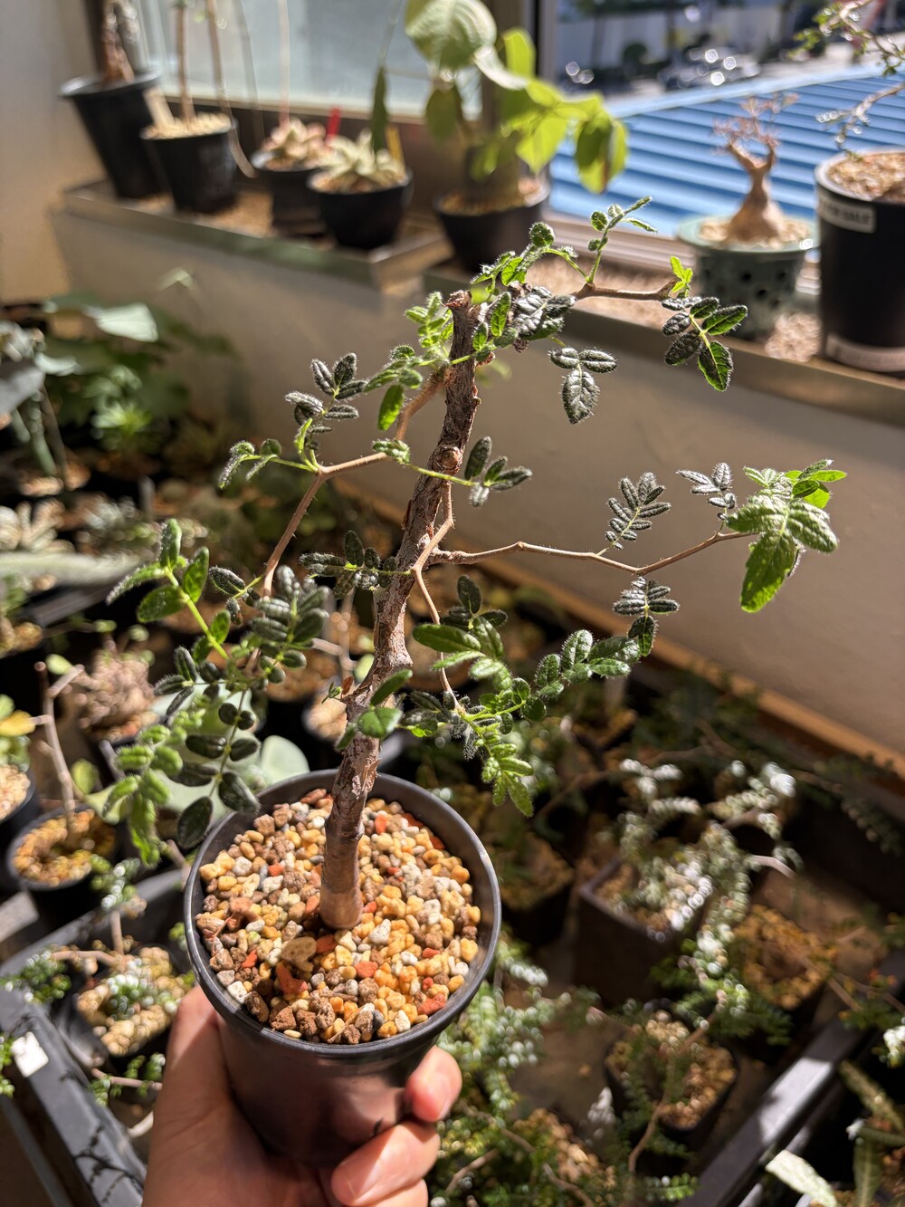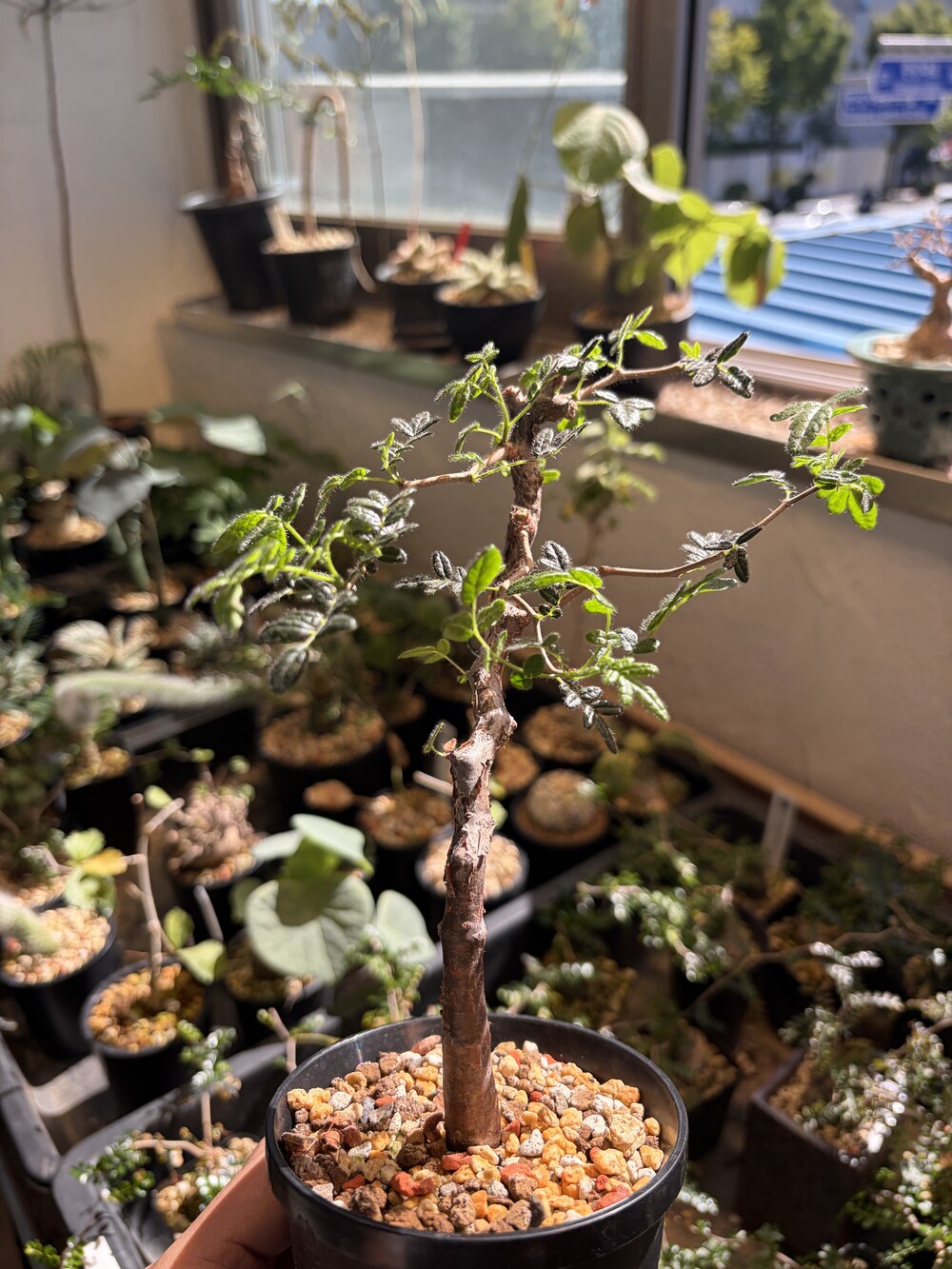 'Caudex' 식물들은 늦가을부터 자연스럽게 잎이 떨어집니다. (환경에 따라 잎이 지지 않을 수 있습니다.) 잎이 떨어지기 시작하면 서서히 물을 줄여나가며 휴면기인 겨울 동안에는 2-3주 1회 가볍게 분무 해주시면 됩니다.