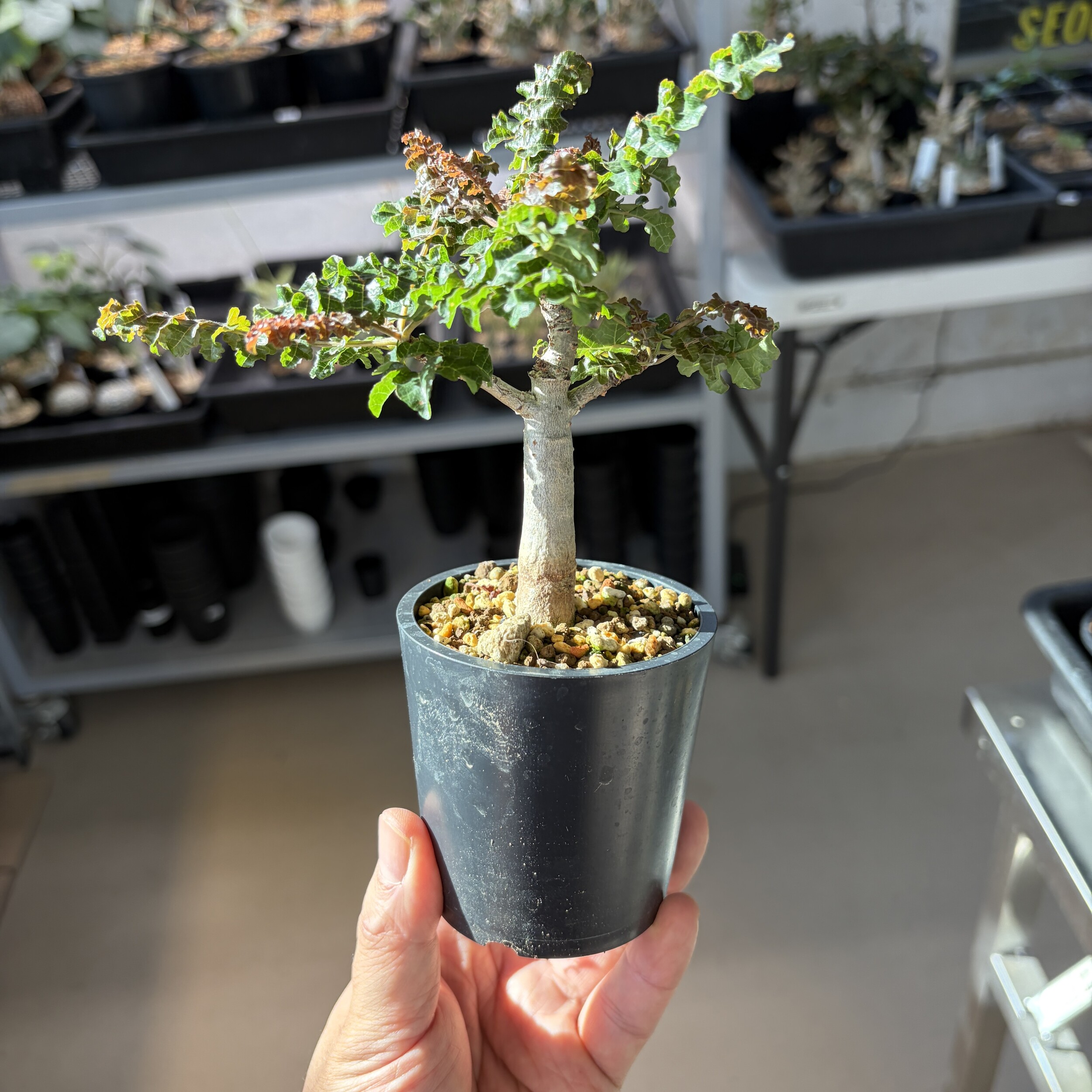 'Caudex' 식물들은 늦가을부터 자연스럽게 잎이 떨어집니다. (환경에 따라 잎이 지지 않을 수 있습니다.) 잎이 떨어지기 시작하면 서서히 물을 줄여나가며 휴면기인 겨울 동안에는 2-3주 1회 가볍게 분무 해주시면 됩니다.