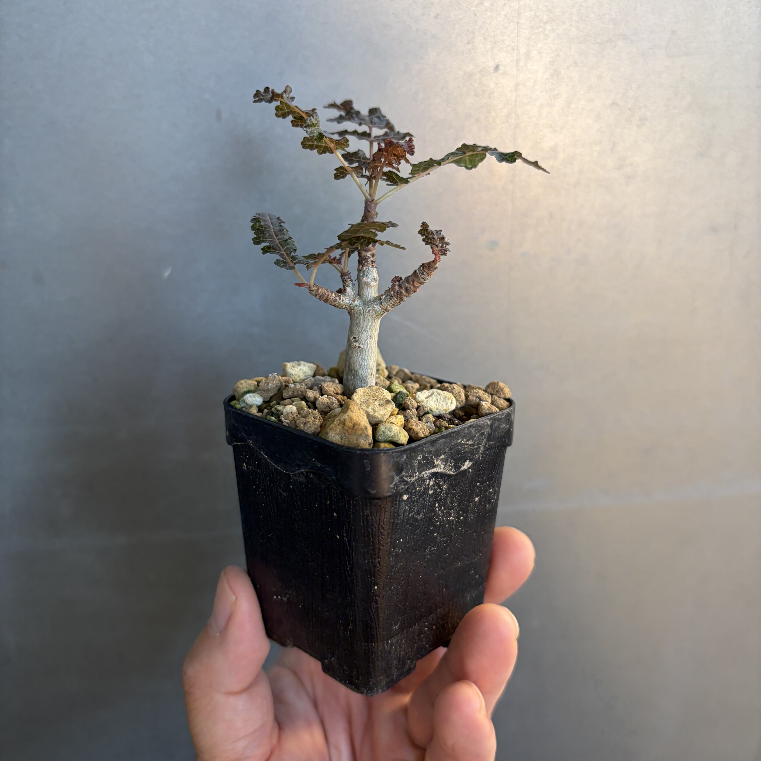 'Caudex' 식물들은 늦가을부터 자연스럽게 잎이 떨어집니다. (환경에 따라 잎이 지지 않을 수 있습니다.) 잎이 떨어지기 시작하면 서서히 물을 줄여나가며 휴면기인 겨울 동안에는 2-3주 1회 가볍게 분무 해주시면 됩니다.