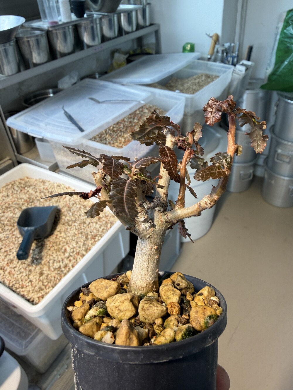 'Caudex' 식물들은 늦가을부터 자연스럽게 잎이 떨어집니다. (환경에 따라 잎이 지지 않을 수 있습니다.) 잎이 떨어지기 시작하면 서서히 물을 줄여나가며 휴면기인 겨울 동안에는 2-3주 1회 가볍게 분무 해주시면 됩니다.