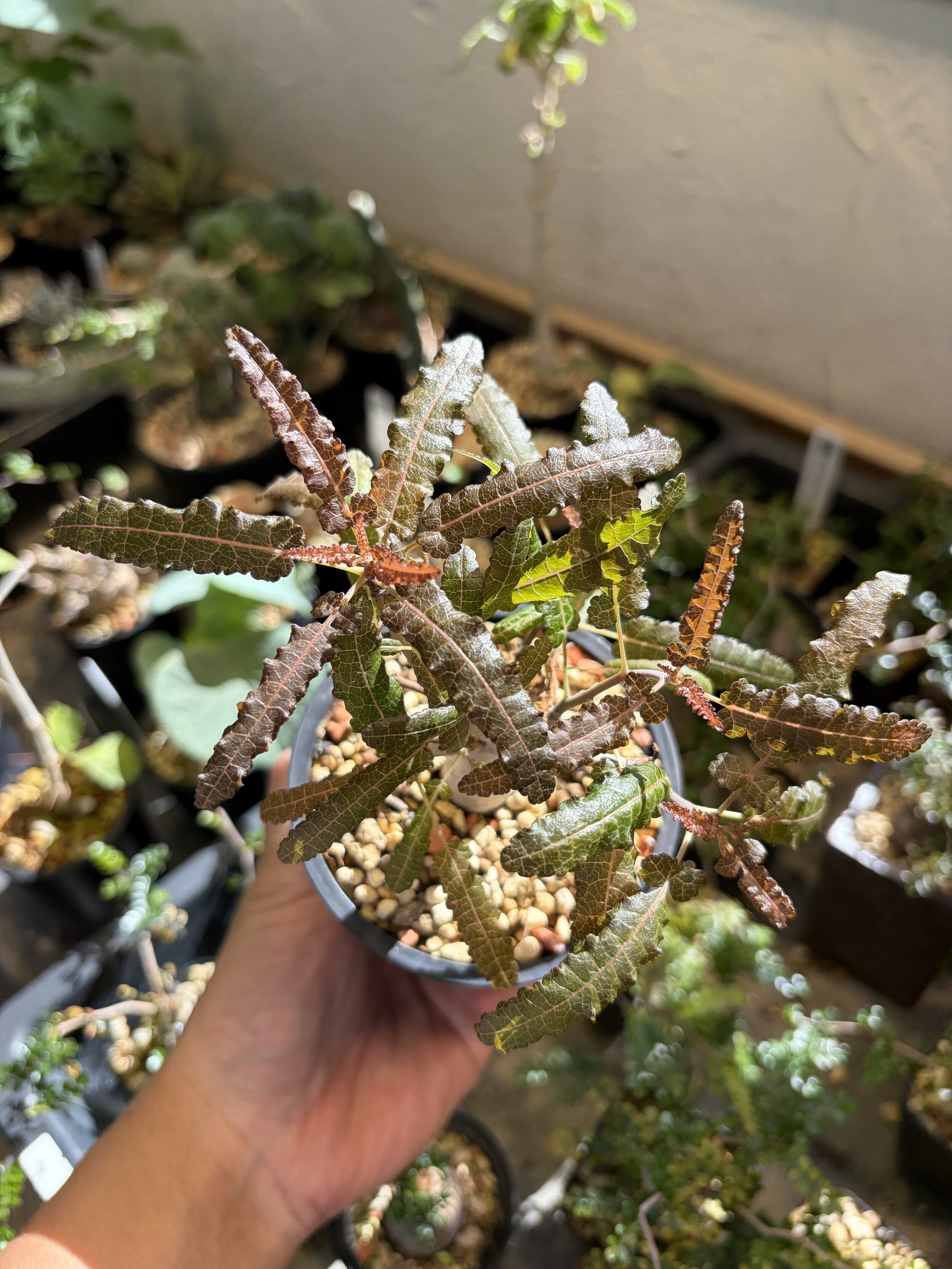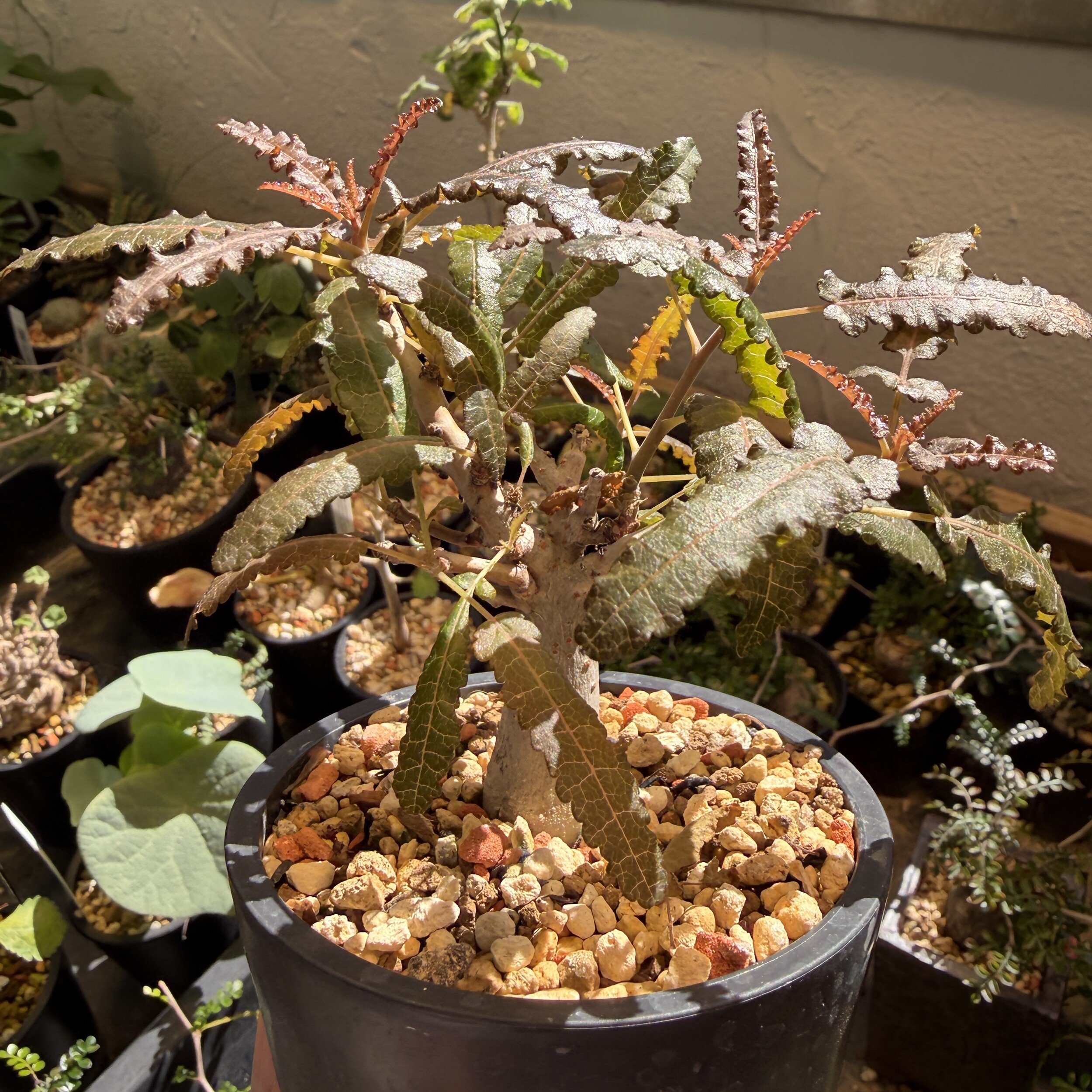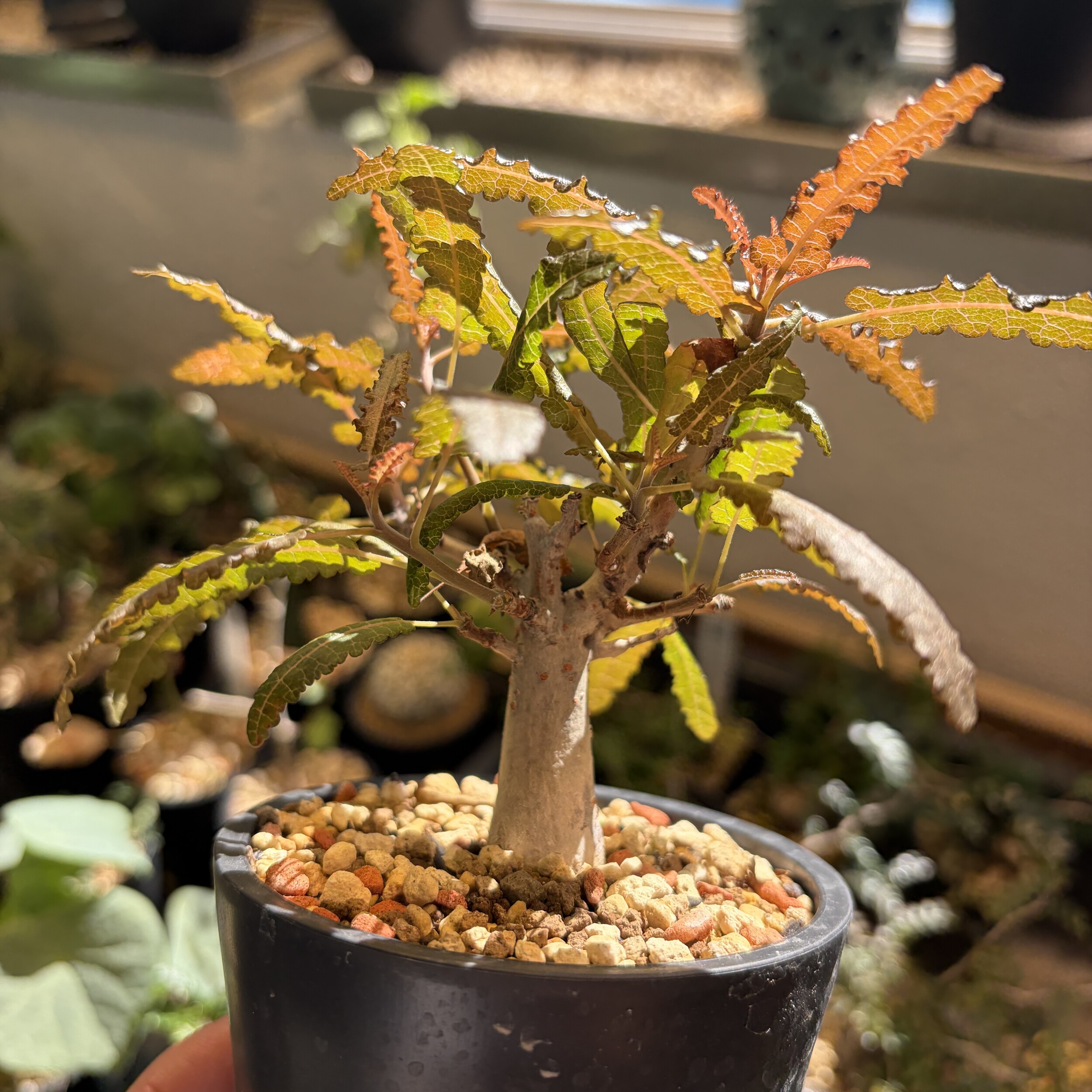 'Caudex' 식물들은 늦가을부터 자연스럽게 잎이 떨어집니다. (환경에 따라 잎이 지지 않을 수 있습니다.) 잎이 떨어지기 시작하면 서서히 물을 줄여나가며 휴면기인 겨울 동안에는 2-3주 1회 가볍게 분무 해주시면 됩니다.