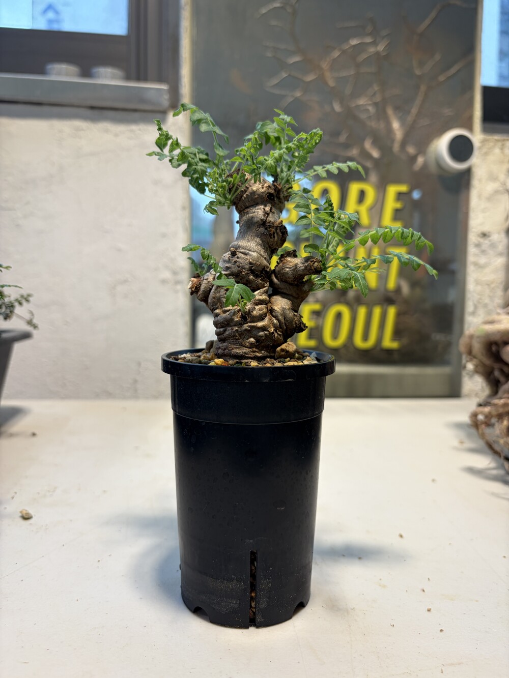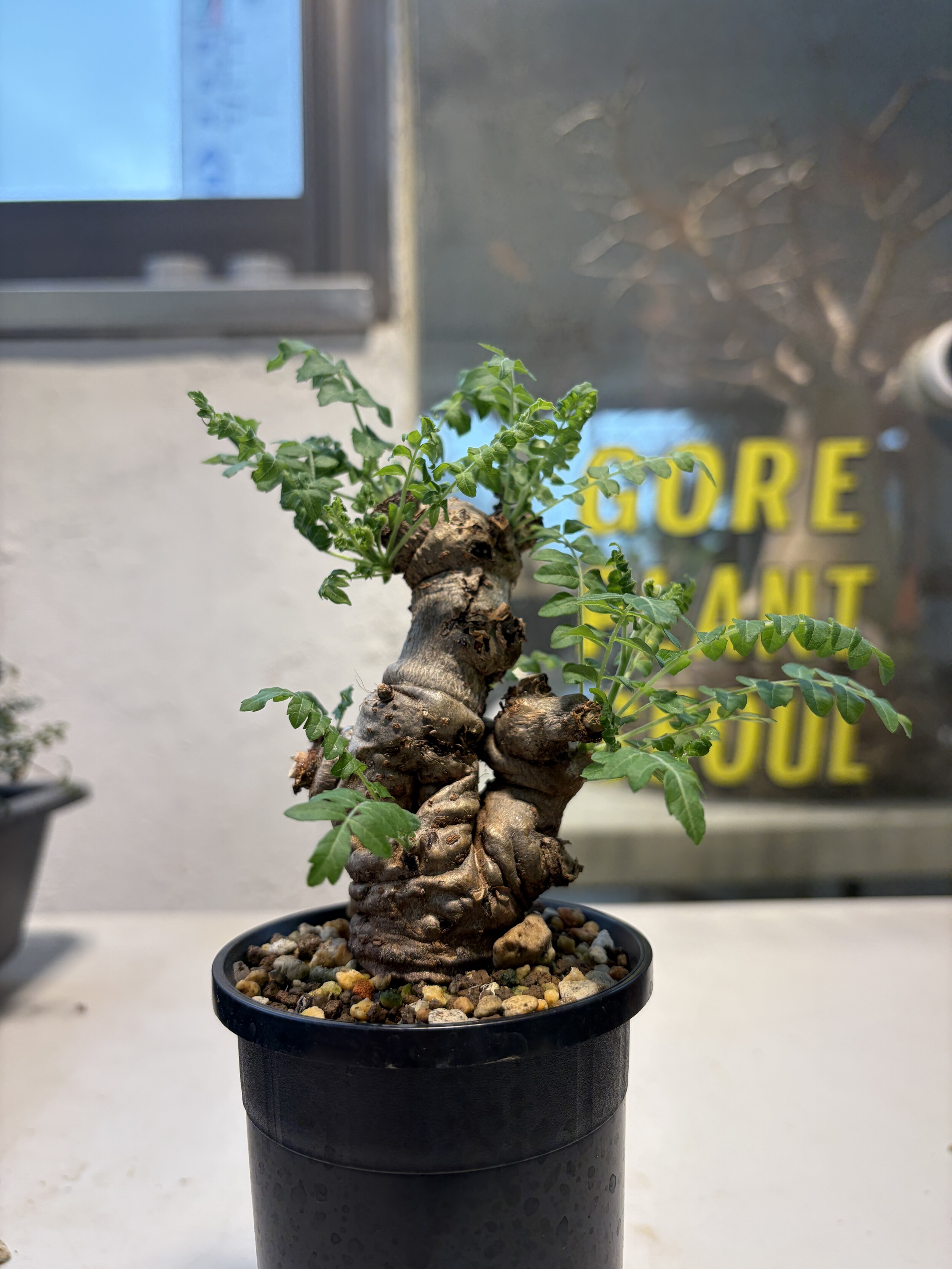 'Caudex' 식물들은 늦가을부터 자연스럽게 잎이 떨어집니다. (환경에 따라 잎이 지지 않을 수 있습니다.) 잎이 떨어지기 시작하면 서서히 물을 줄여나가며 휴면기인 겨울 동안에는 2-3주 1회 가볍게 분무 해주시면 됩니다.