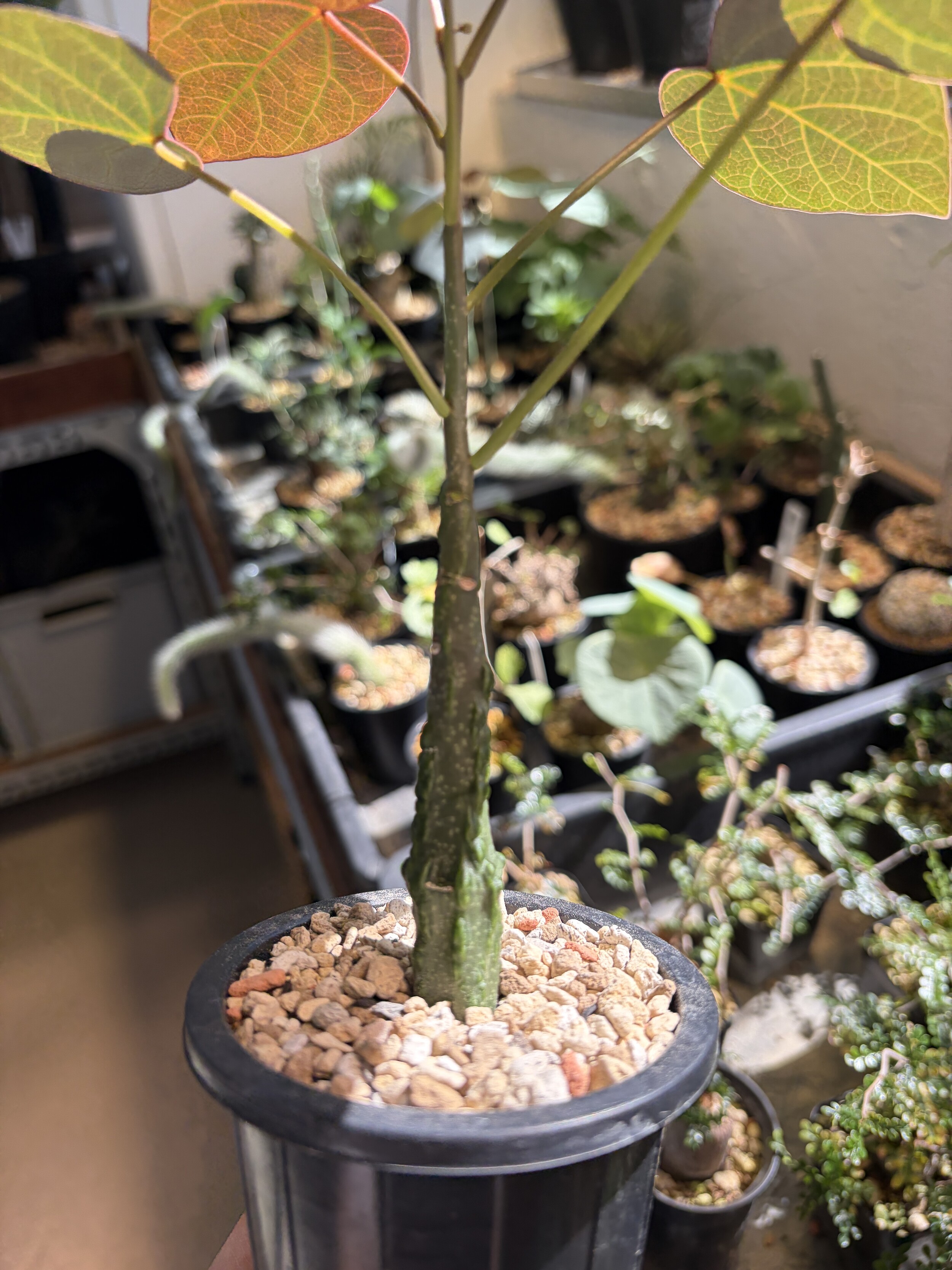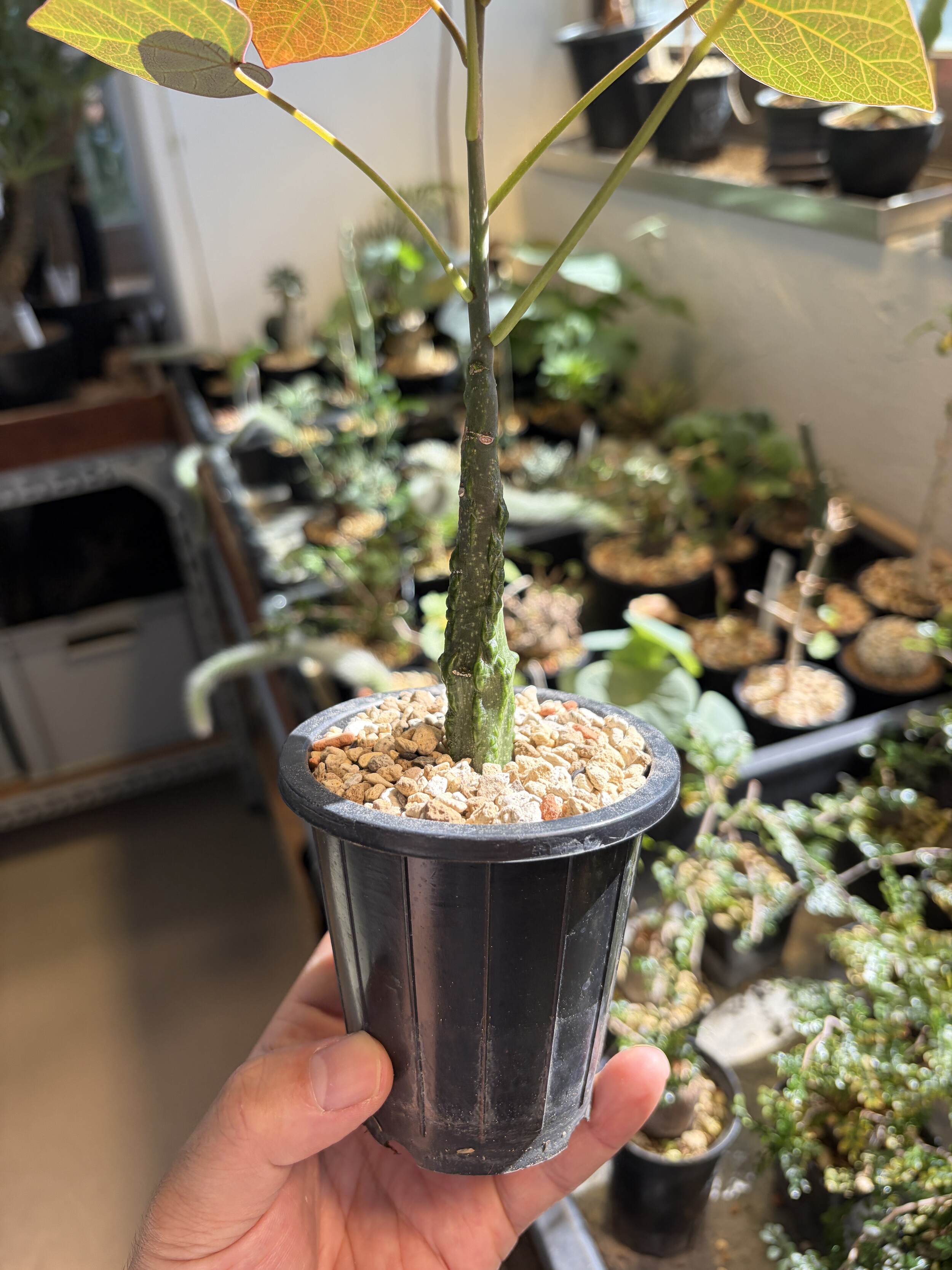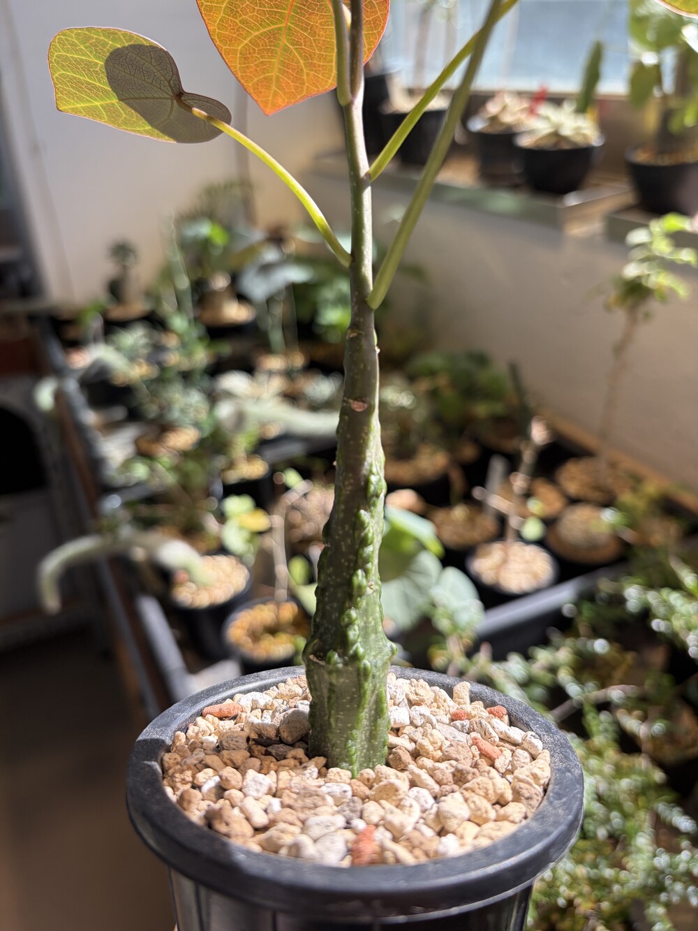 'Caudex' 식물들은 늦가을부터 자연스럽게 잎이 떨어집니다. (환경에 따라 잎이 지지 않을 수 있습니다.) 잎이 떨어지기 시작하면 서서히 물을 줄여나가며 휴면기인 겨울 동안에는 2-3주 1회 가볍게 분무 해주시면 됩니다.