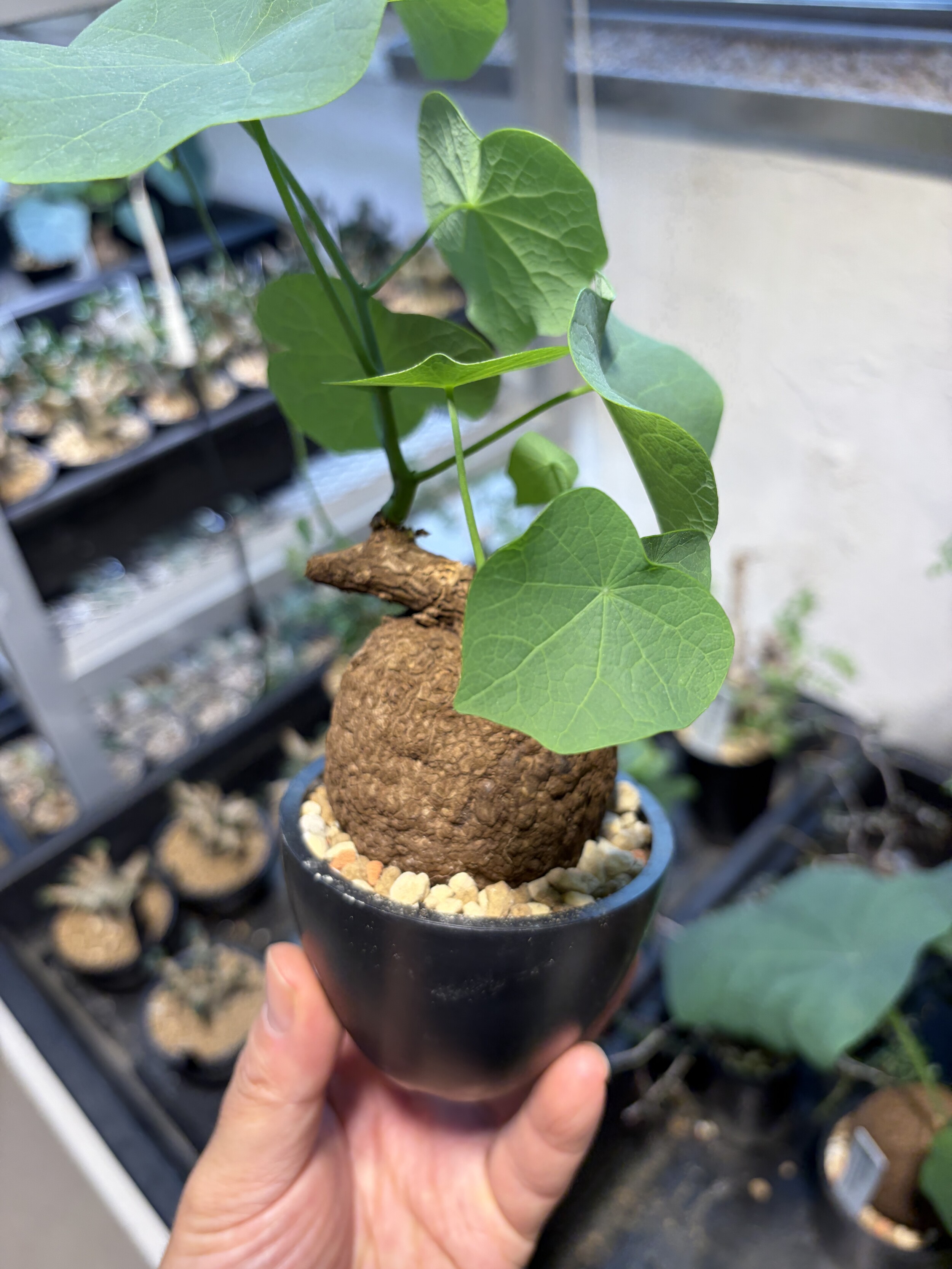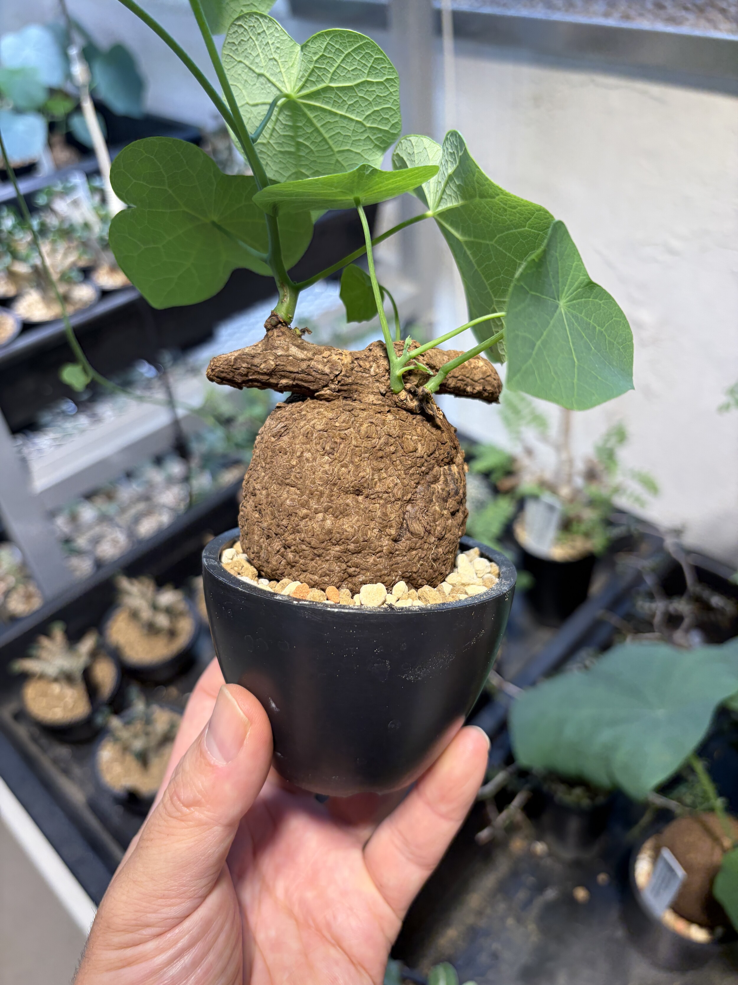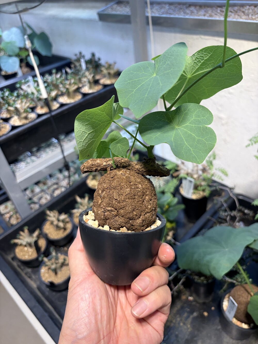 'Caudex' 식물들은 늦가을부터 자연스럽게 잎이 떨어집니다. (환경에 따라 잎이 지지 않을 수 있습니다.) 잎이 떨어지기 시작하면 서서히 물을 줄여나가며 휴면기인 겨울 동안에는 2-3주 1회 가볍게 분무 해주시면 됩니다.