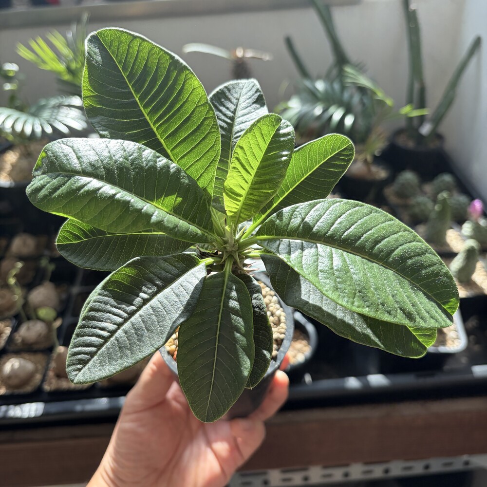 'Caudex' 식물들은 늦가을부터 자연스럽게 잎이 떨어집니다. (환경에 따라 잎이 지지 않을 수 있습니다.) 잎이 떨어지기 시작하면 서서히 물을 줄여나가며 휴면기인 겨울 동안에는 2-3주 1회 가볍게 분무 해주시면 됩니다.