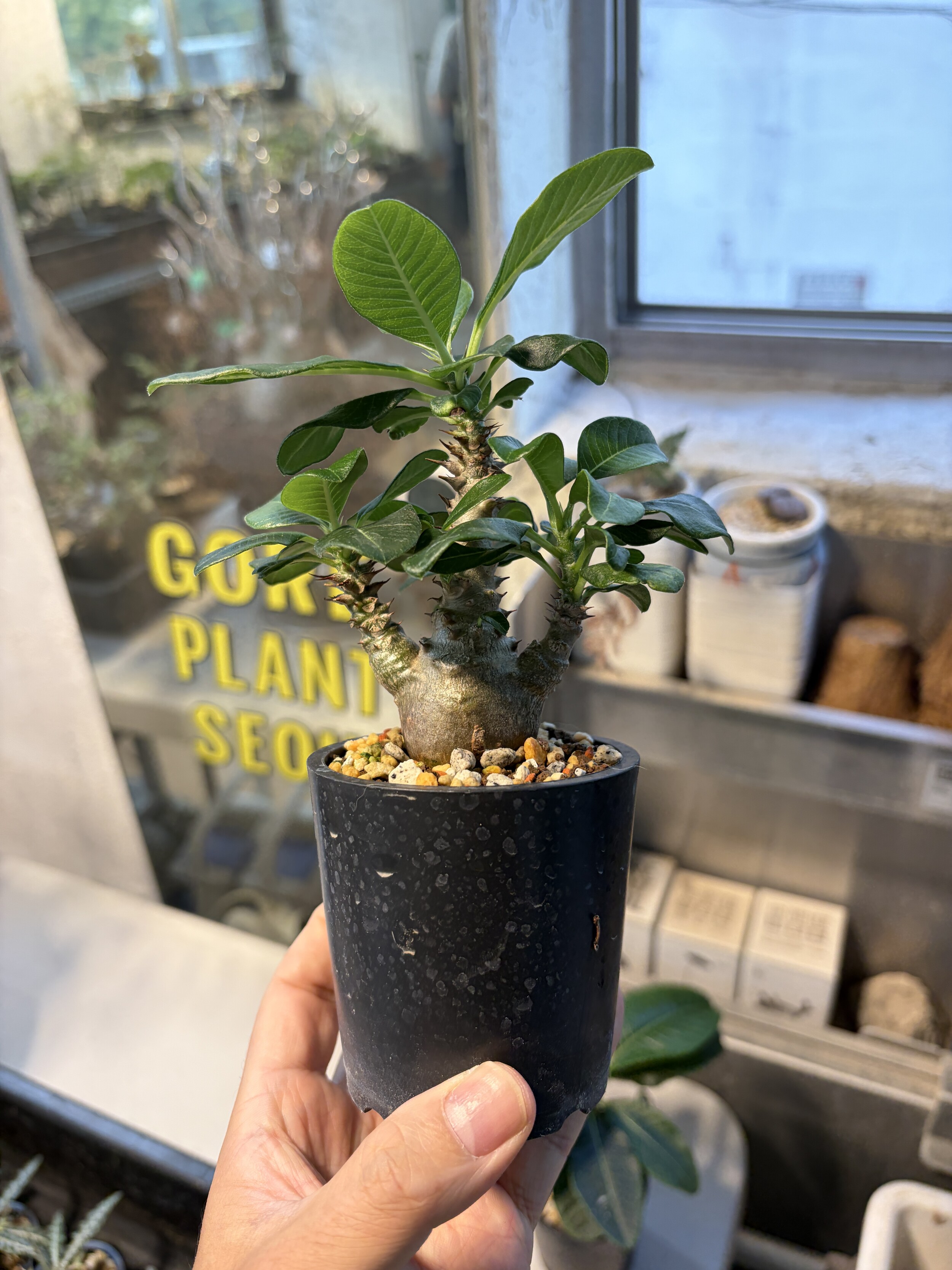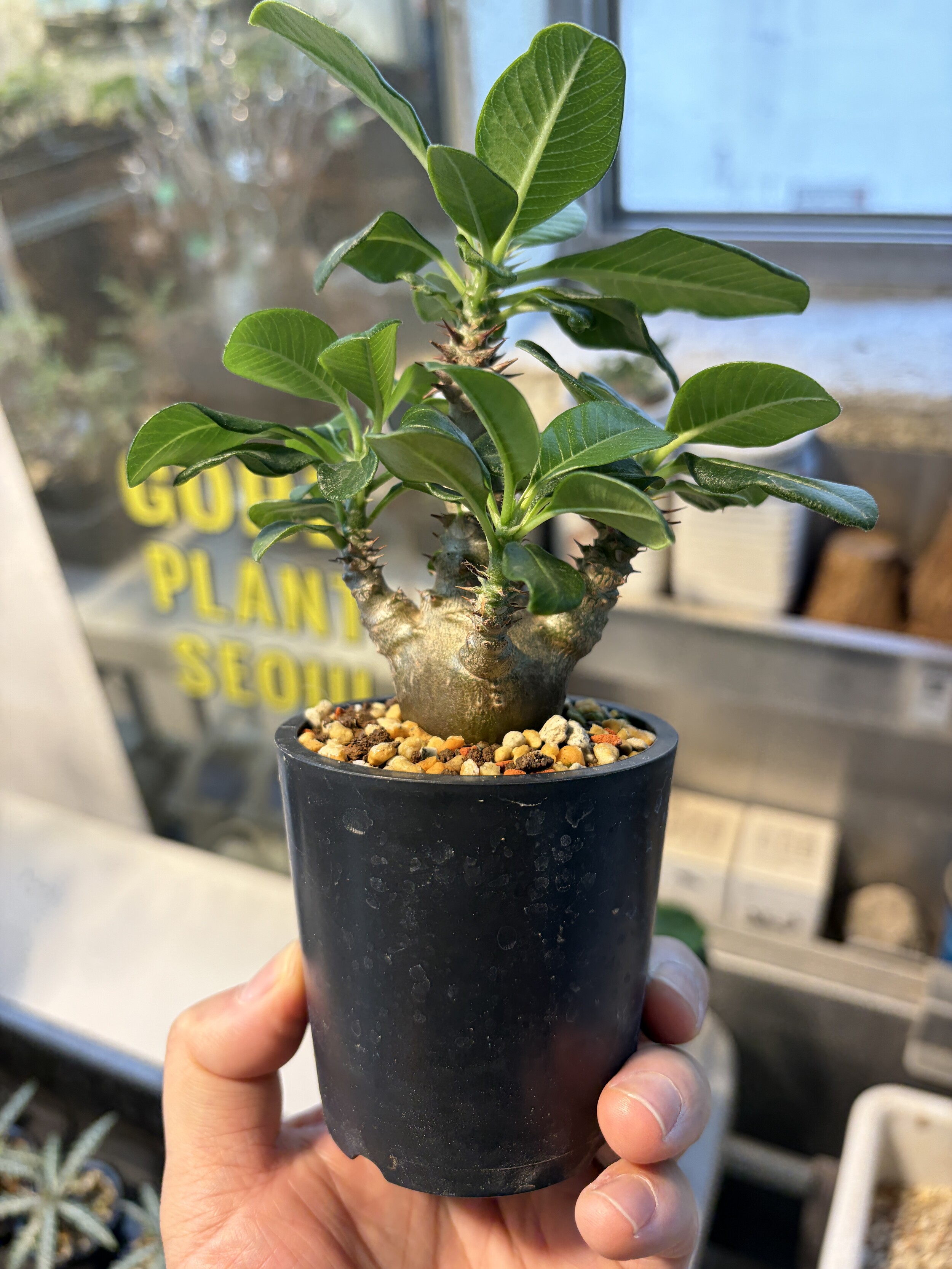 'Caudex' 식물들은 늦가을부터 자연스럽게 잎이 떨어집니다. (환경에 따라 잎이 지지 않을 수 있습니다.) 잎이 떨어지기 시작하면 서서히 물을 줄여나가며 휴면기인 겨울 동안에는 2-3주 1회 가볍게 분무 해주시면 됩니다.