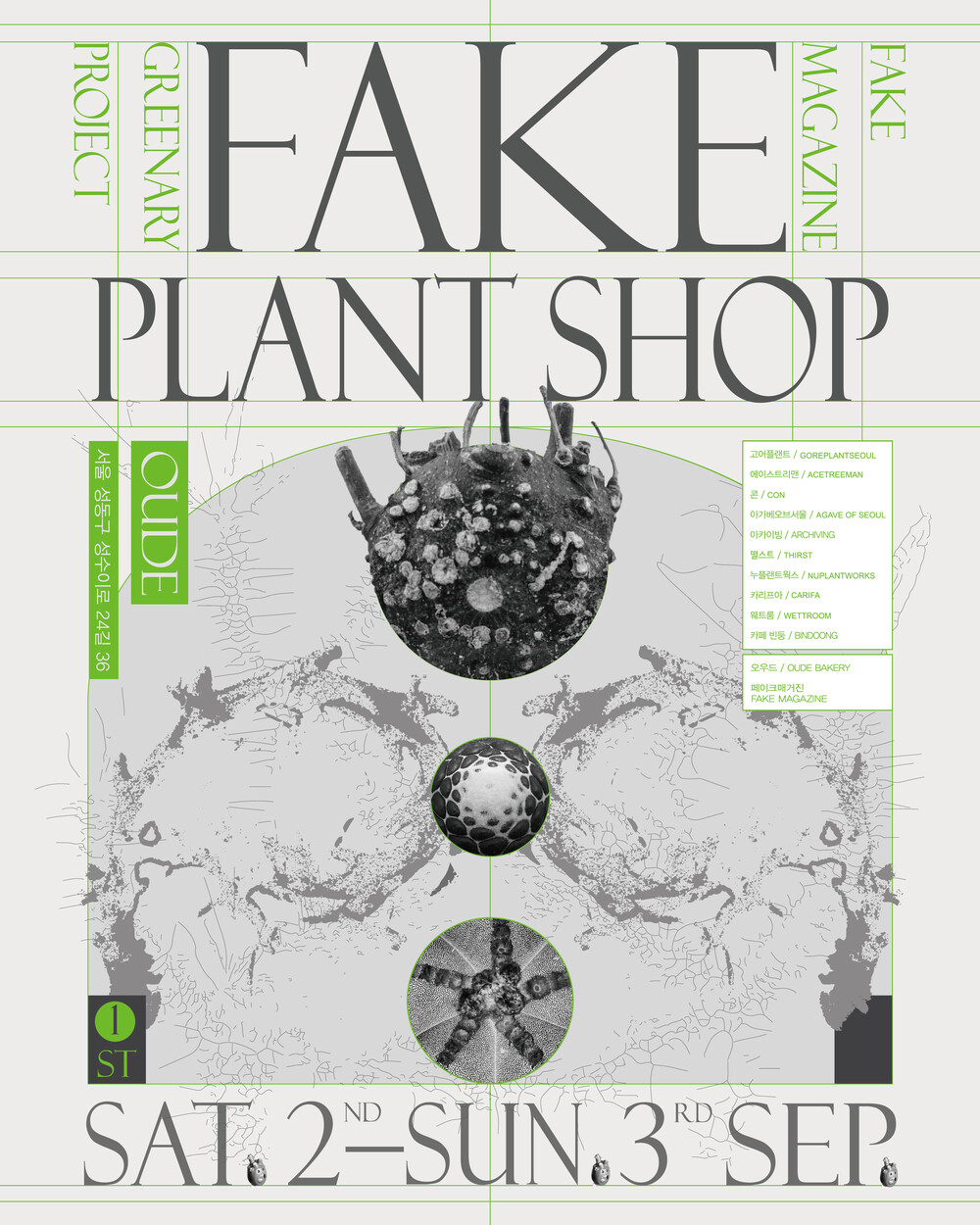 (@fakemagazine_official)과 오우드(@oude_seoul), <#fakeplantshop> 세 가지 모두 태그