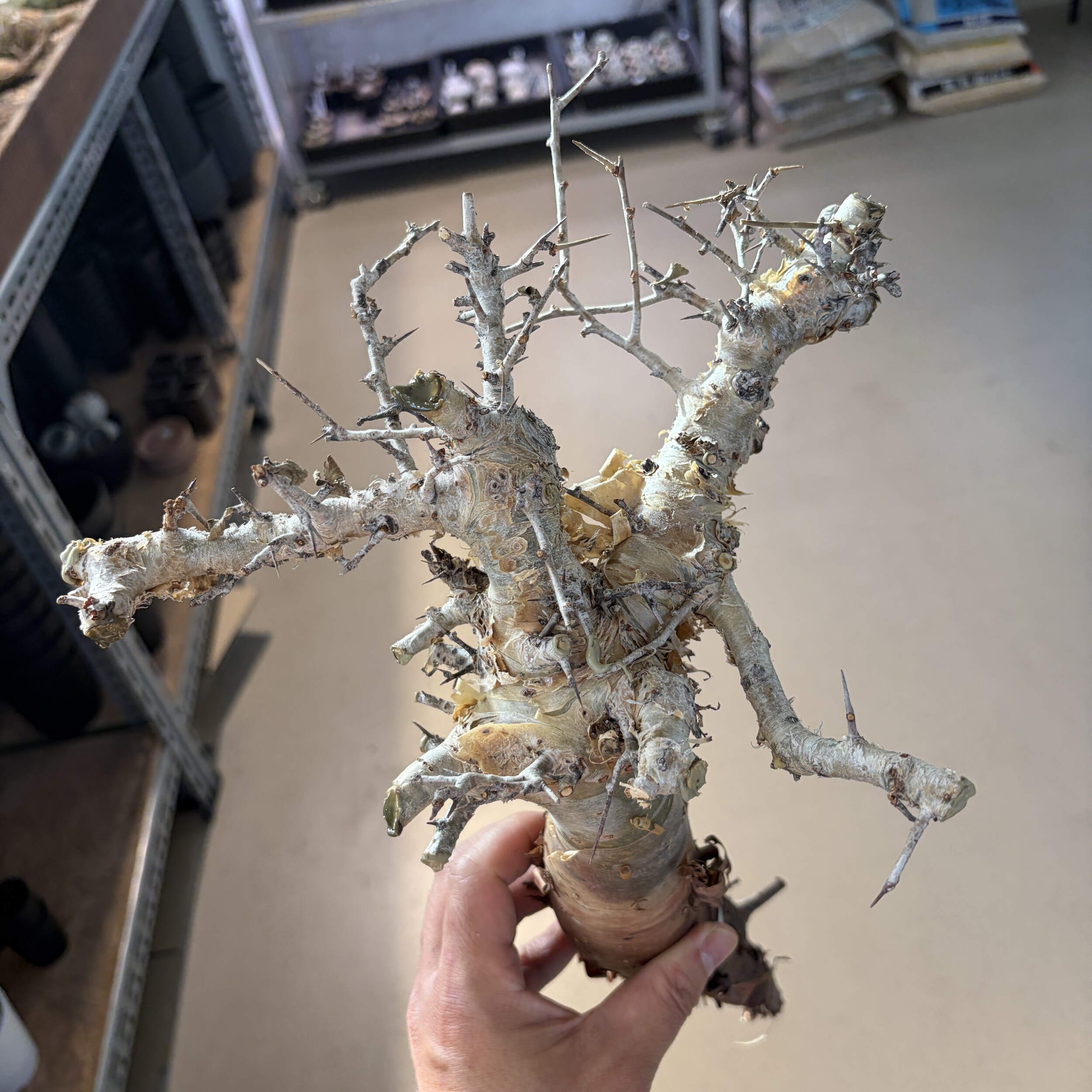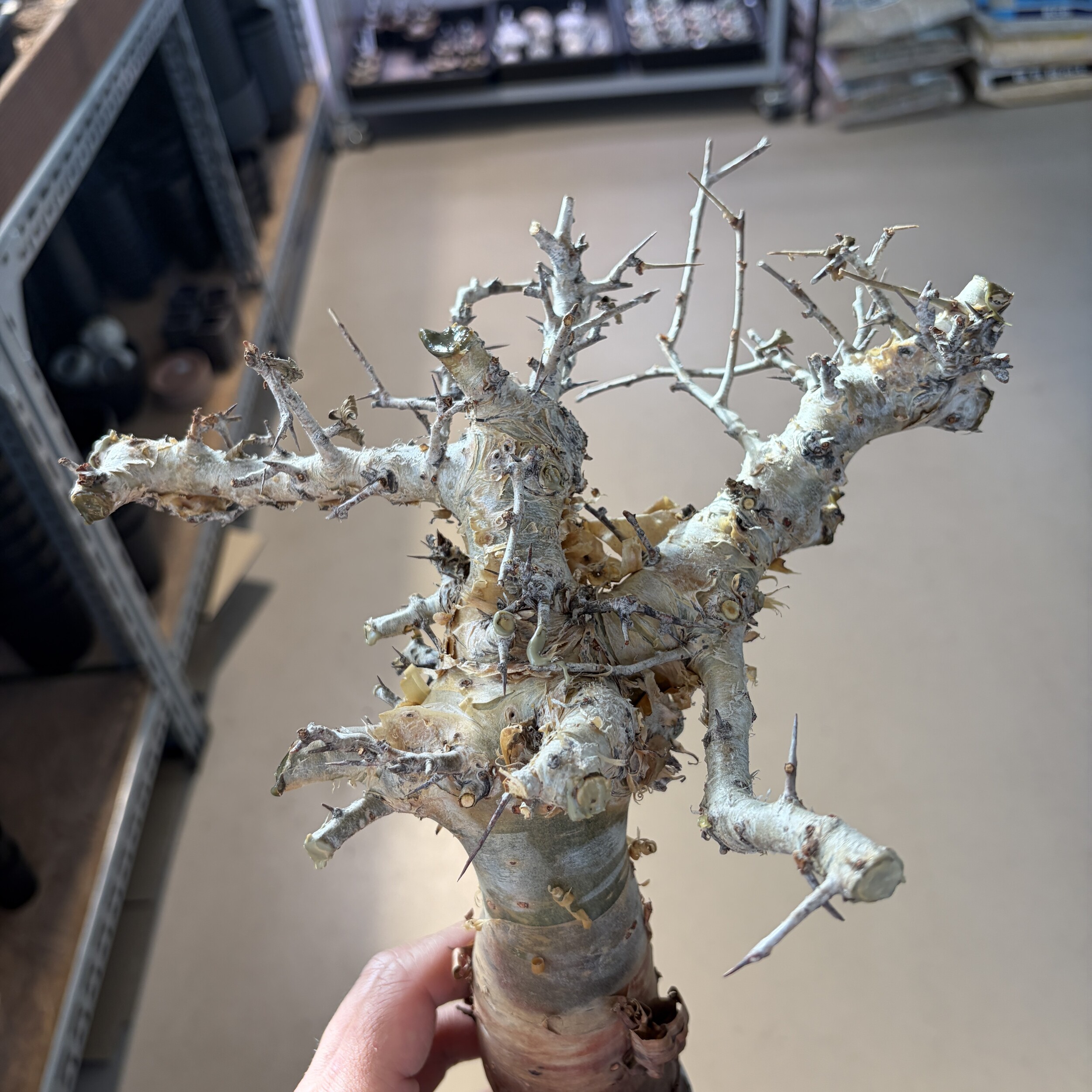 'Caudex' 식물들은 늦가을부터 자연스럽게 잎이 떨어집니다. (환경에 따라 잎이 지지 않을 수 있습니다.) 잎이 떨어지기 시작하면 서서히 물을 줄여나가며 휴면기인 겨울 동안에는 2-3주 1회 가볍게 분무 해주시면 됩니다.