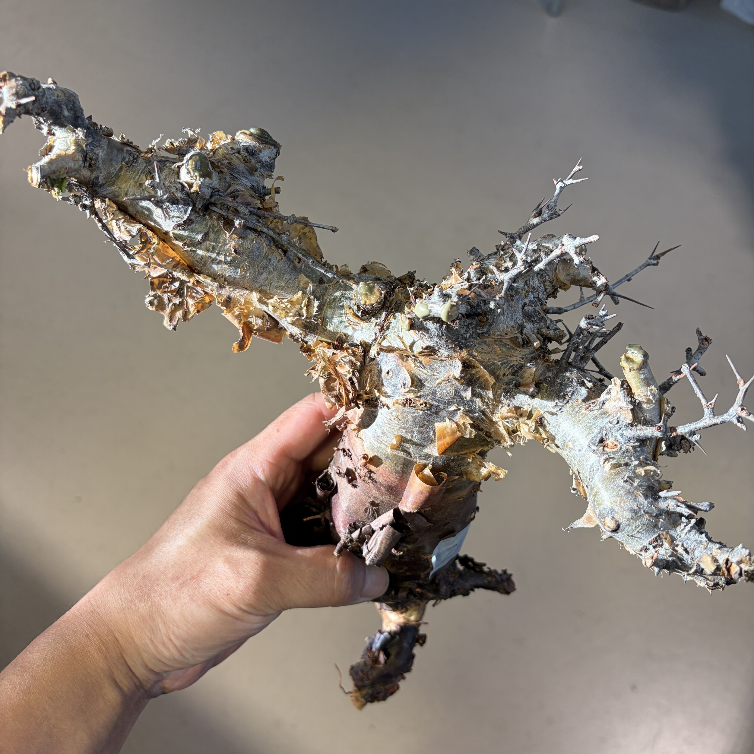 'Caudex' 식물들은 늦가을부터 자연스럽게 잎이 떨어집니다. (환경에 따라 잎이 지지 않을 수 있습니다.) 잎이 떨어지기 시작하면 서서히 물을 줄여나가며 휴면기인 겨울 동안에는 2-3주 1회 가볍게 분무 해주시면 됩니다.