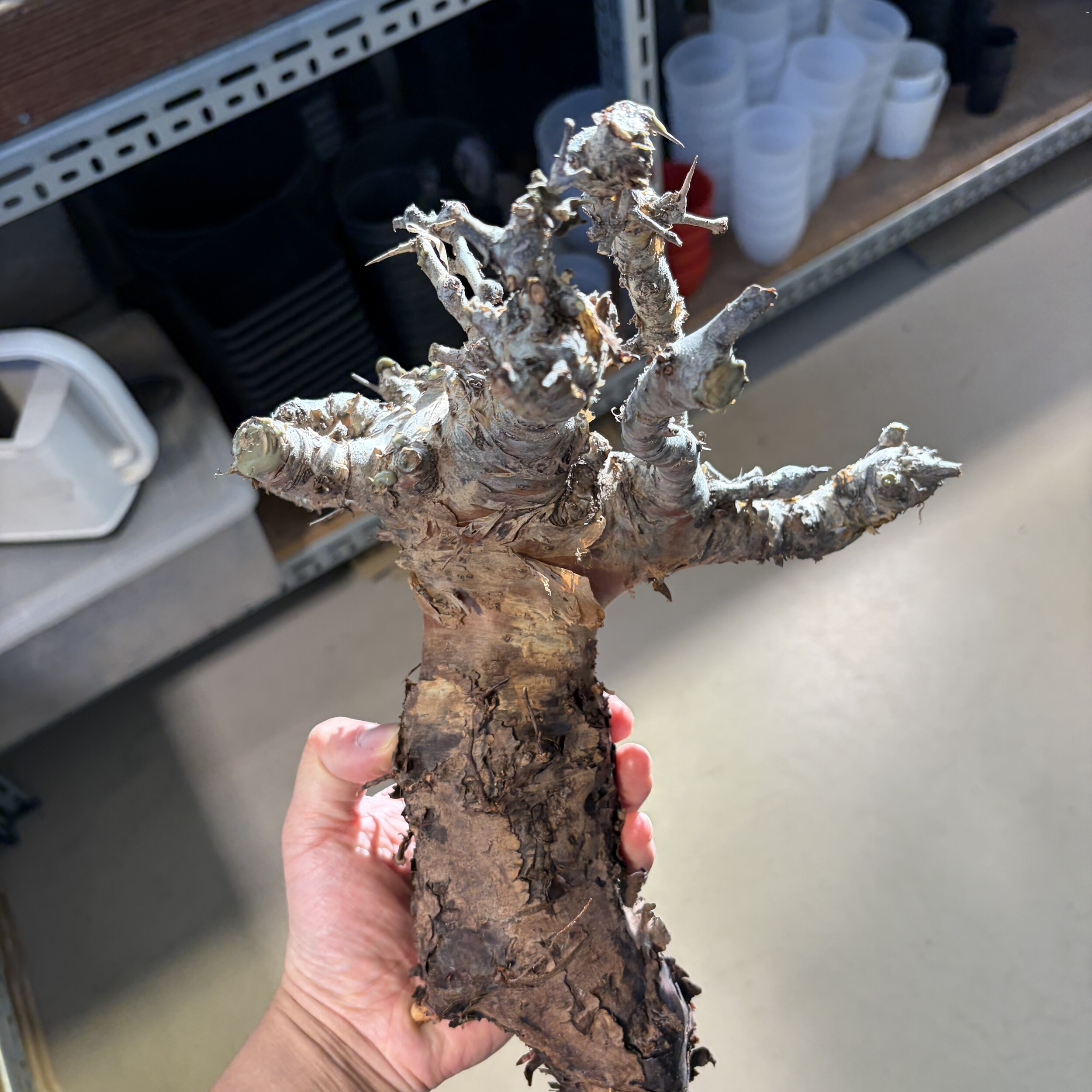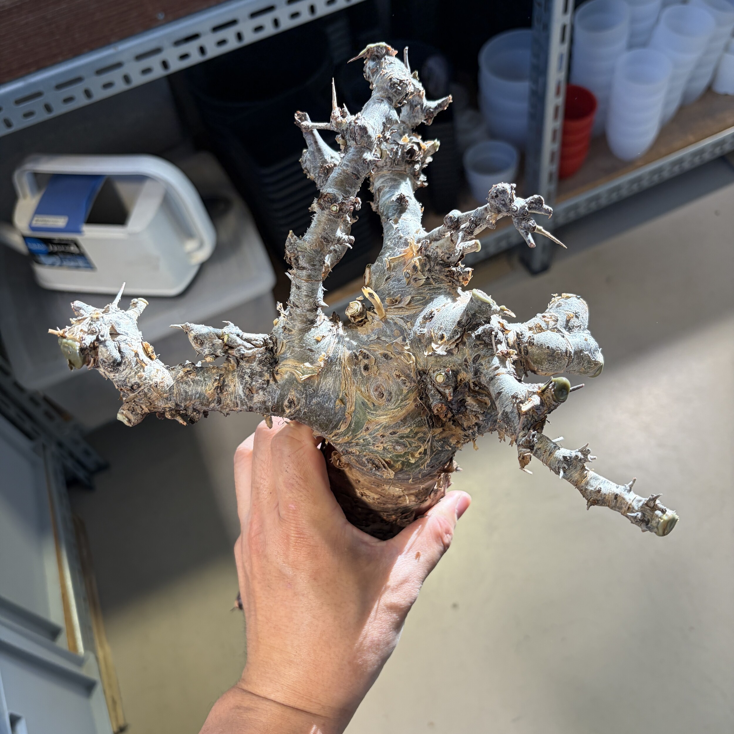'Caudex' 식물들은 늦가을부터 자연스럽게 잎이 떨어집니다. (환경에 따라 잎이 지지 않을 수 있습니다.) 잎이 떨어지기 시작하면 서서히 물을 줄여나가며 휴면기인 겨울 동안에는 2-3주 1회 가볍게 분무 해주시면 됩니다.