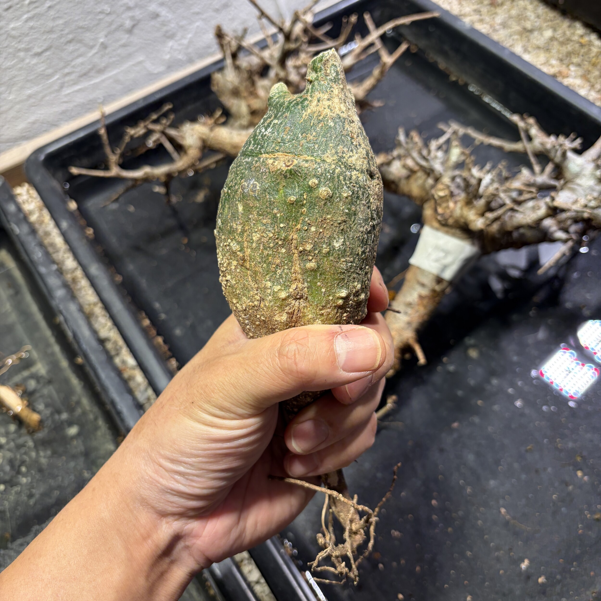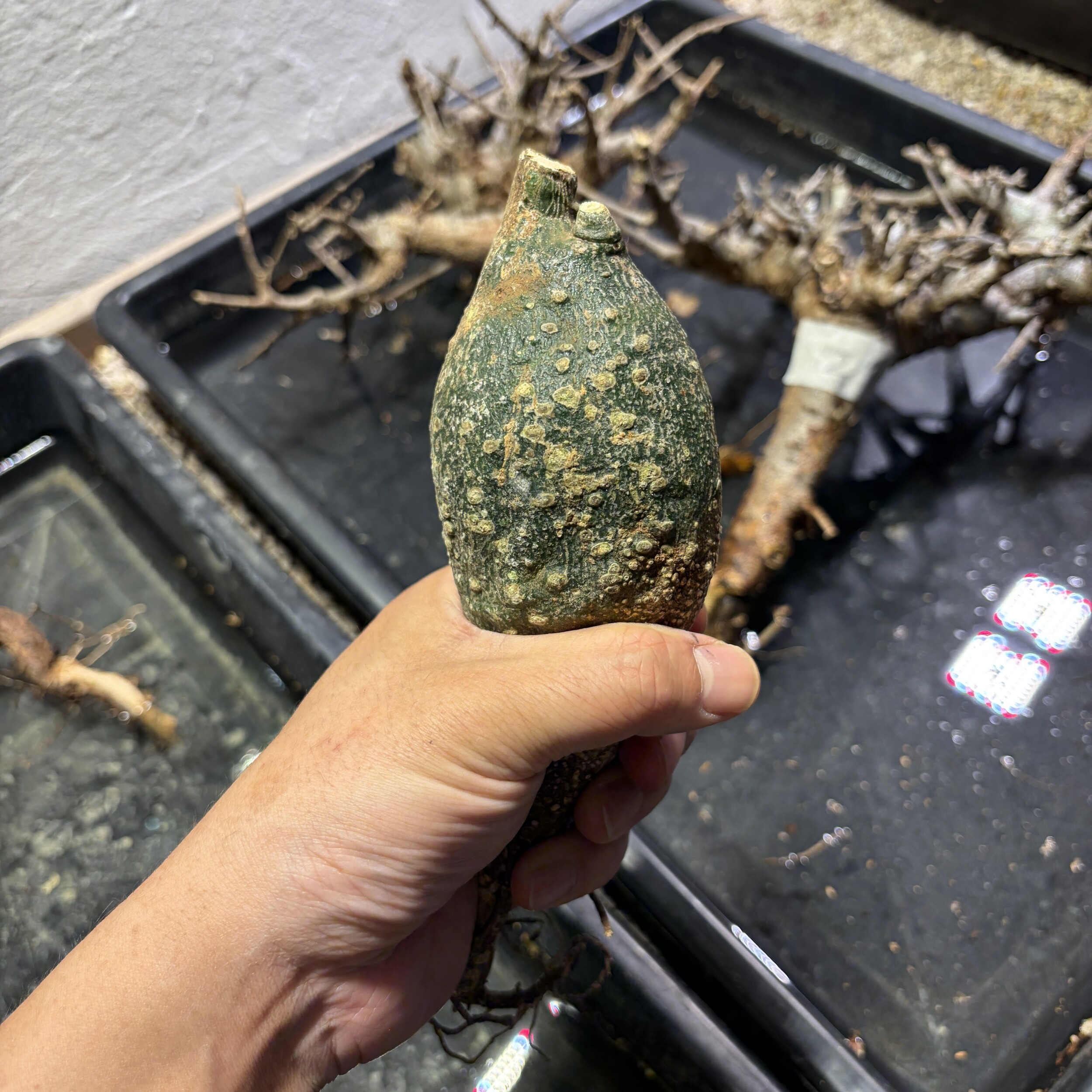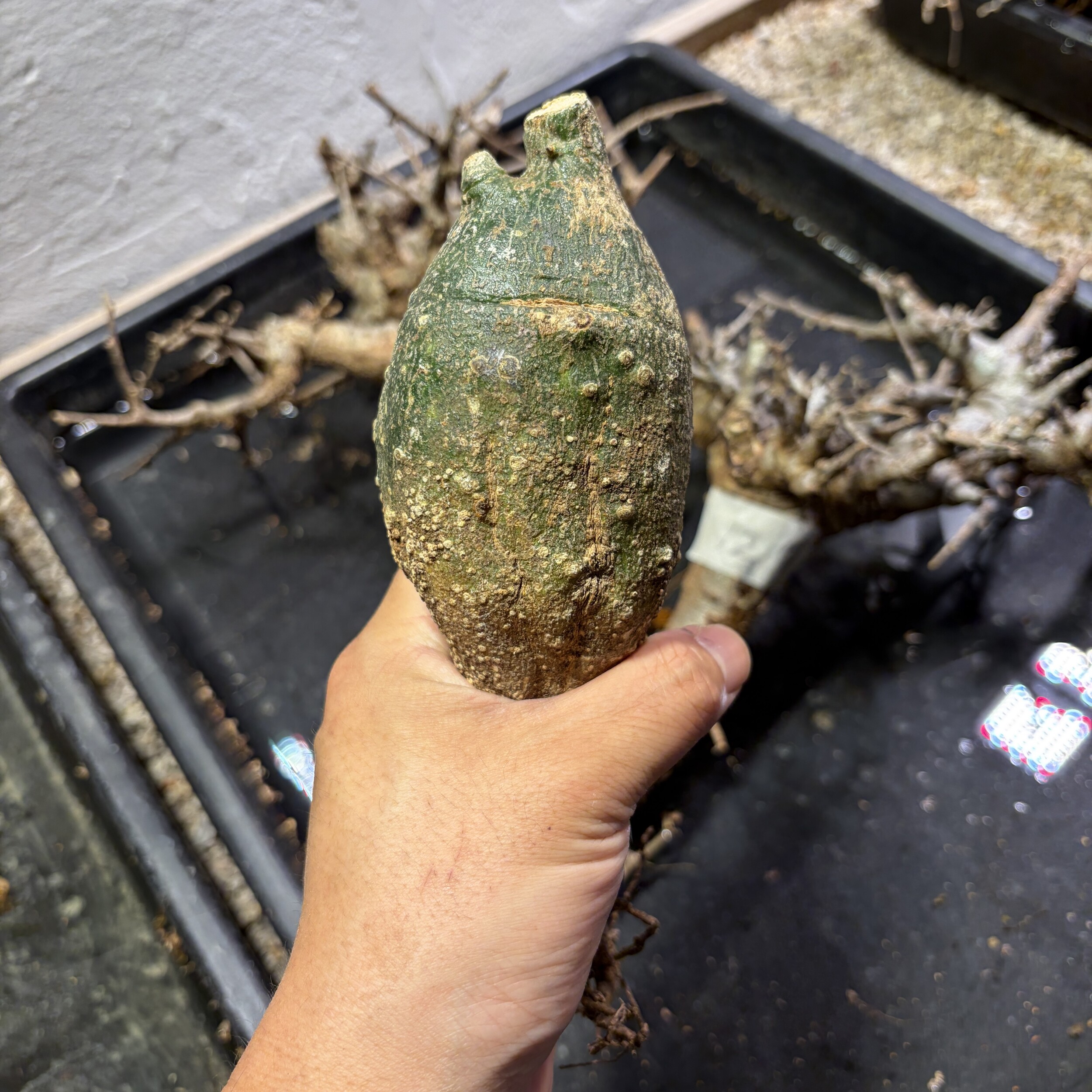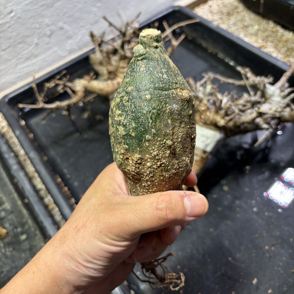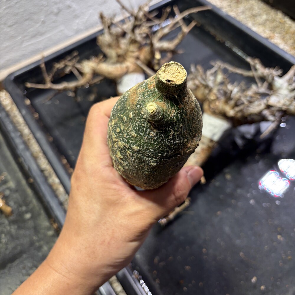 'Caudex' 식물들은 늦가을부터 자연스럽게 잎이 떨어집니다. (환경에 따라 잎이 지지 않을 수 있습니다.) 잎이 떨어지기 시작하면 서서히 물을 줄여나가며 휴면기인 겨울 동안에는 2-3주 1회 가볍게 분무 해주시면 됩니다.
