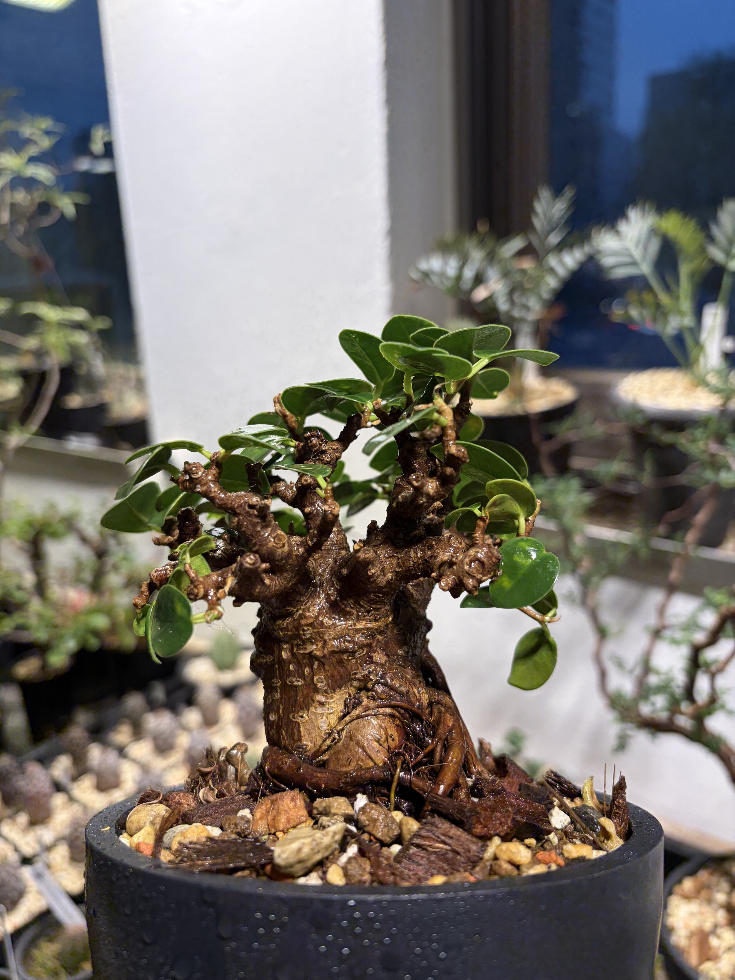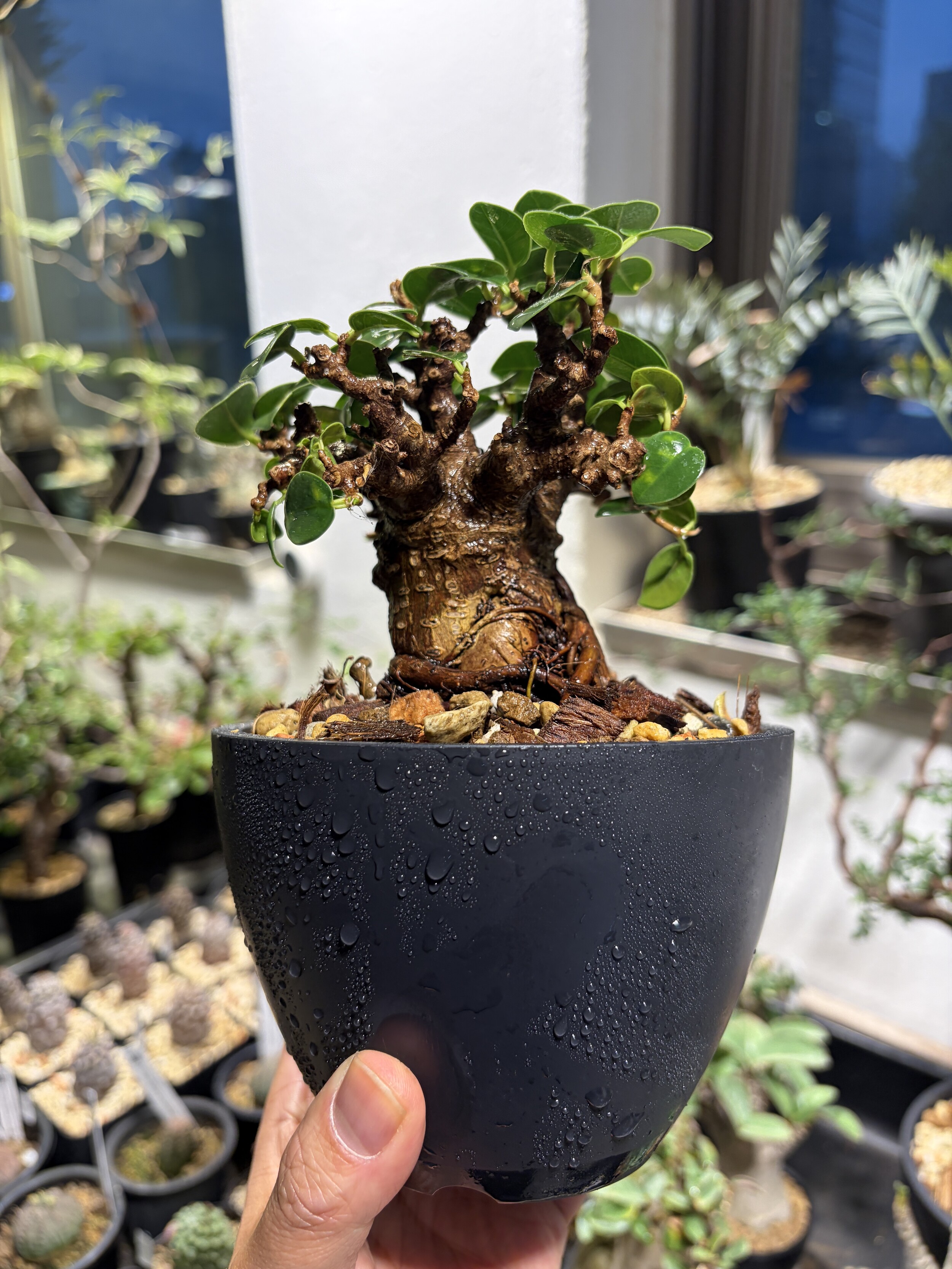 'Caudex' 식물들은 늦가을부터 자연스럽게 잎이 떨어집니다. (환경에 따라 잎이 지지 않을 수 있습니다.) 잎이 떨어지기 시작하면 서서히 물을 줄여나가며 휴면기인 겨울 동안에는 2-3주 1회 가볍게 분무 해주시면 됩니다.