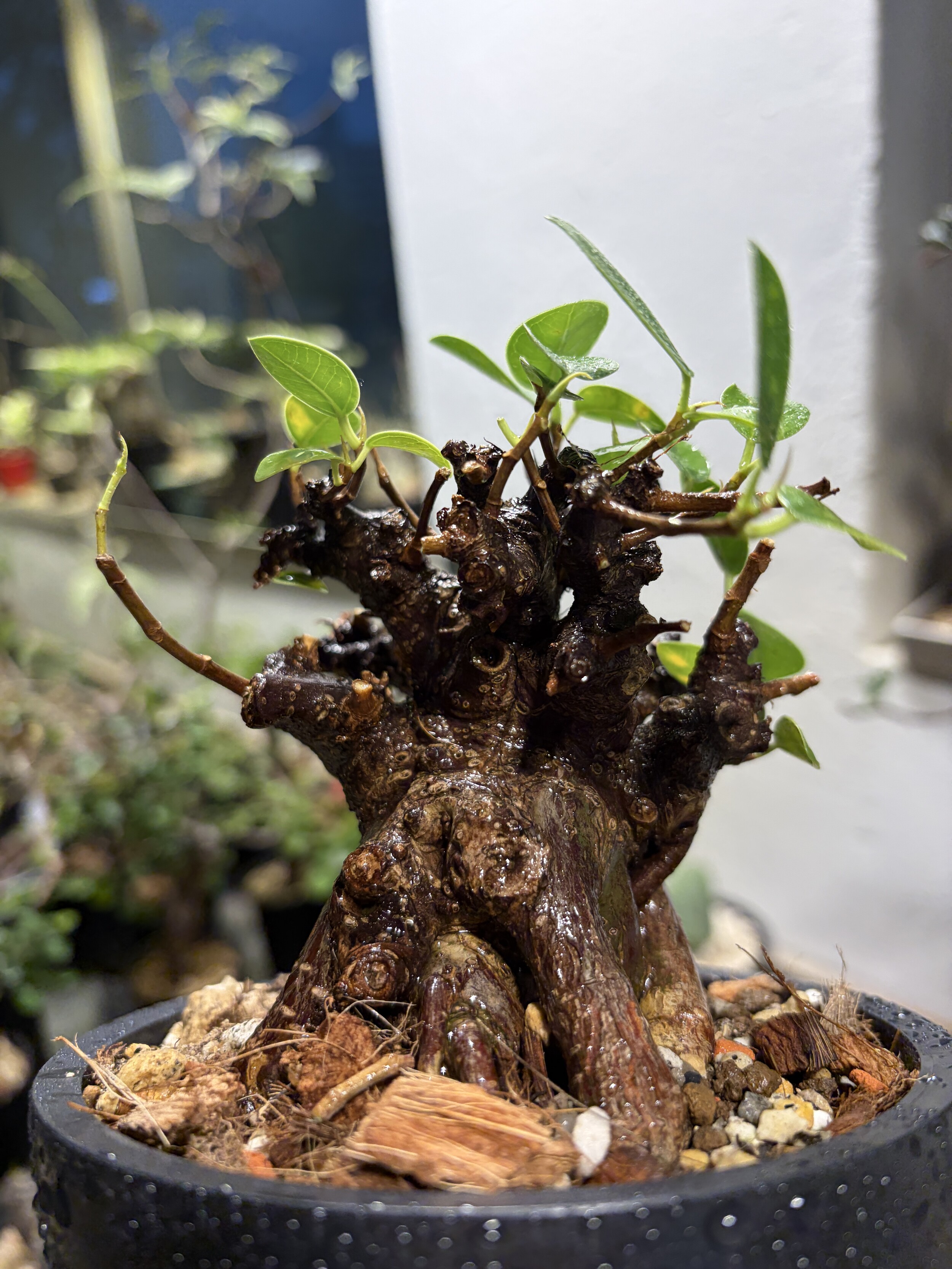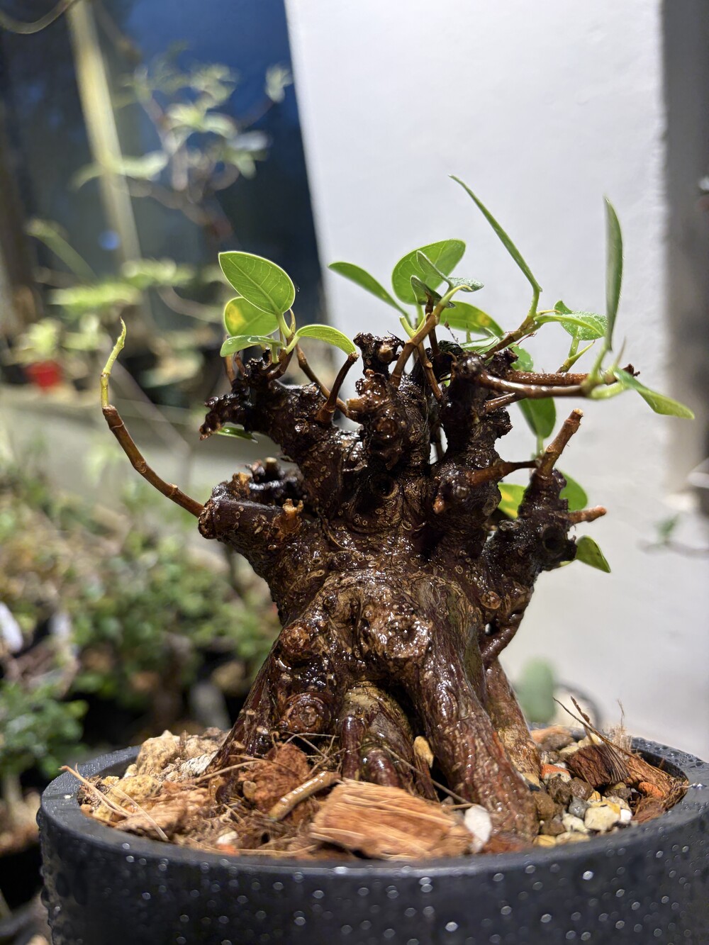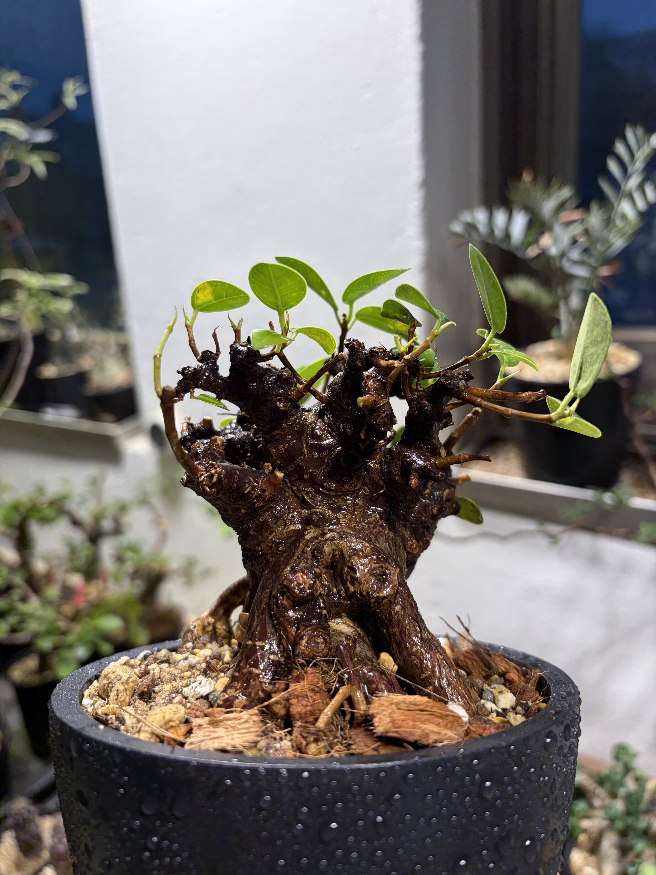 'Caudex' 식물들은 늦가을부터 자연스럽게 잎이 떨어집니다. (환경에 따라 잎이 지지 않을 수 있습니다.) 잎이 떨어지기 시작하면 서서히 물을 줄여나가며 휴면기인 겨울 동안에는 2-3주 1회 가볍게 분무 해주시면 됩니다.
