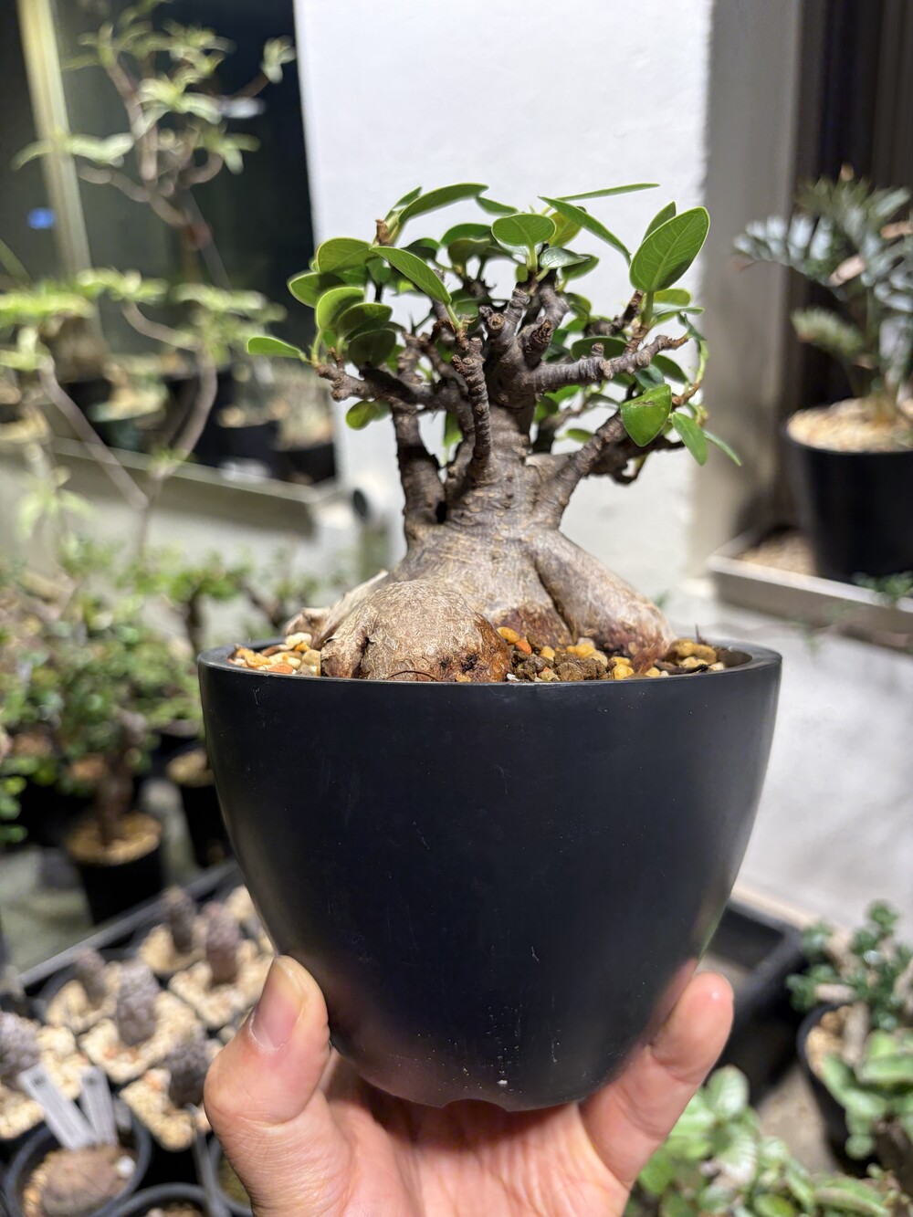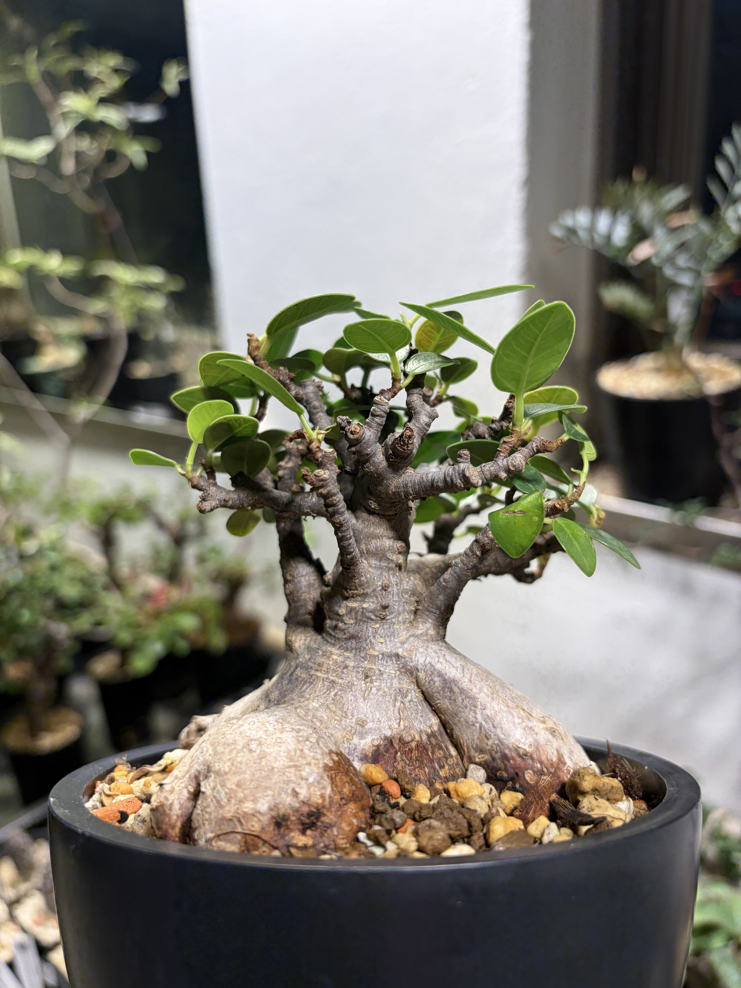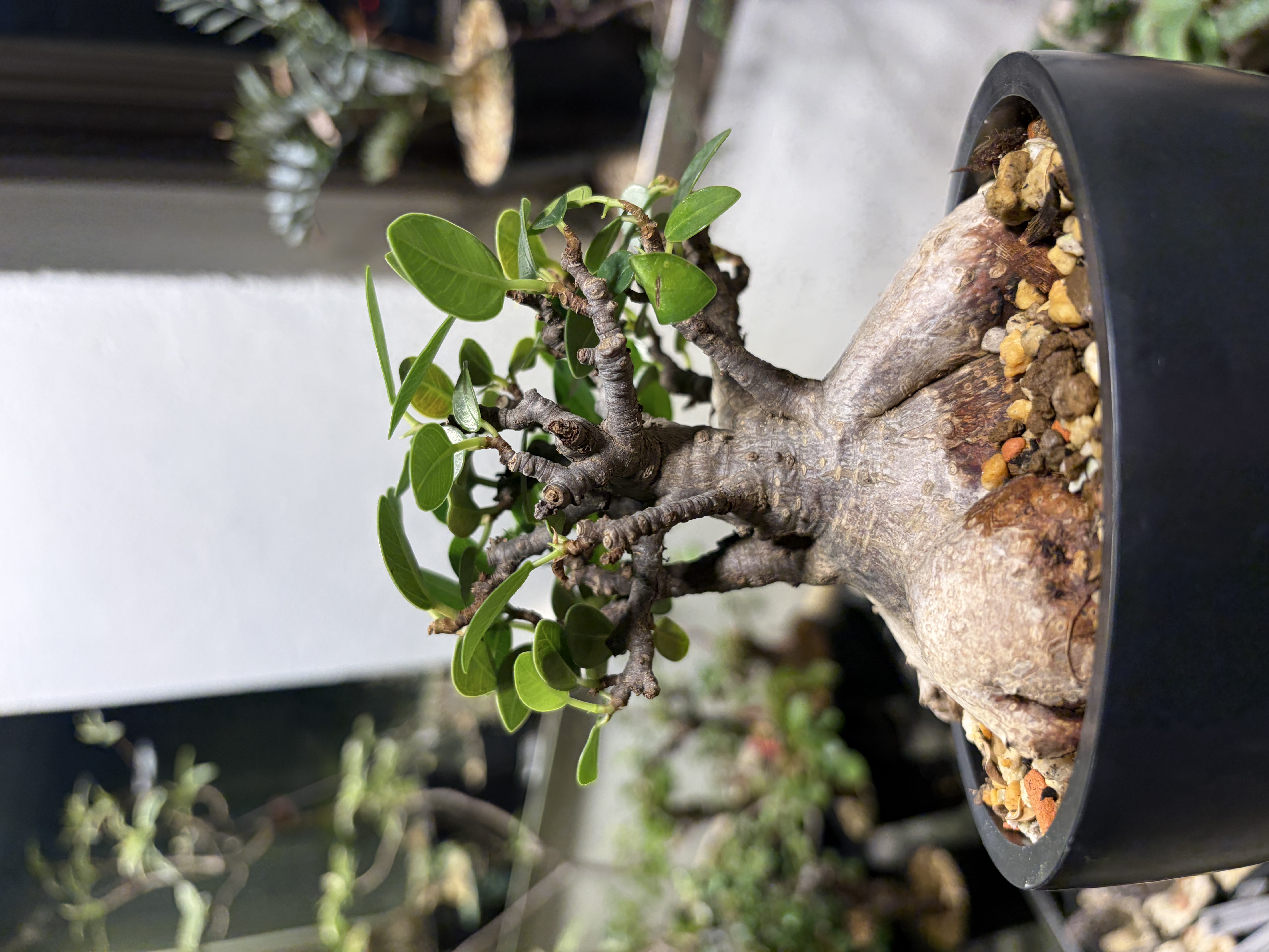 'Caudex' 식물들은 늦가을부터 자연스럽게 잎이 떨어집니다. (환경에 따라 잎이 지지 않을 수 있습니다.) 잎이 떨어지기 시작하면 서서히 물을 줄여나가며 휴면기인 겨울 동안에는 2-3주 1회 가볍게 분무 해주시면 됩니다.