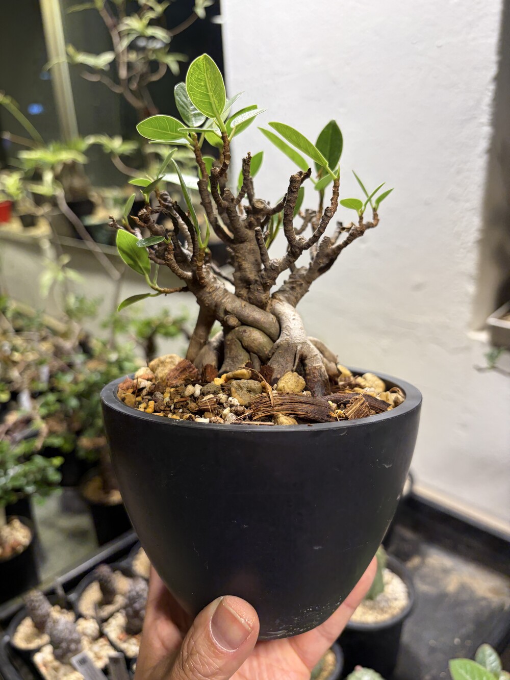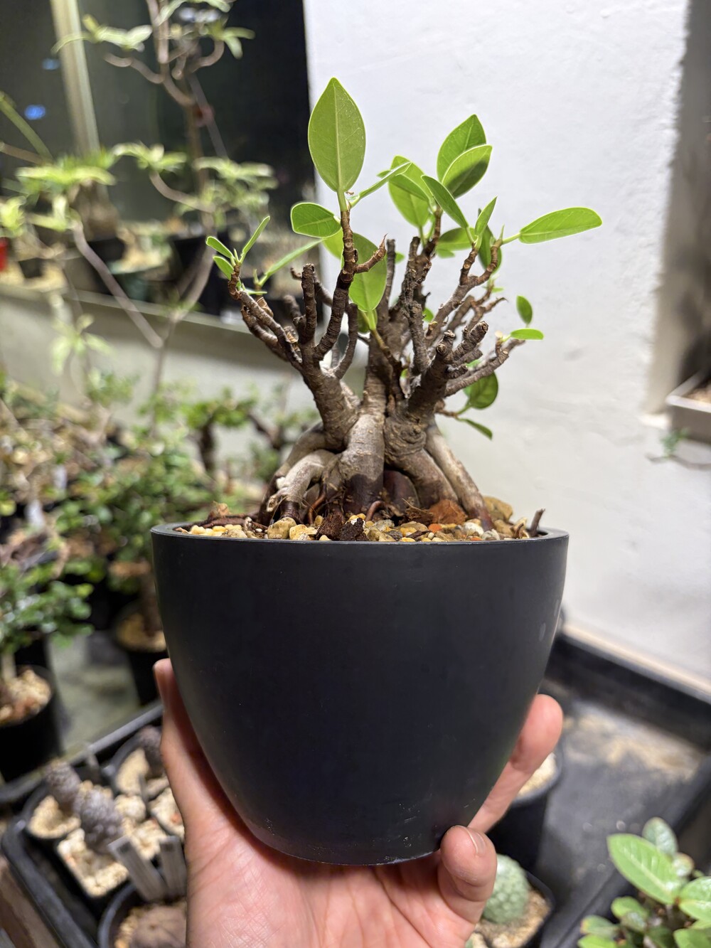 'Caudex' 식물들은 늦가을부터 자연스럽게 잎이 떨어집니다. (환경에 따라 잎이 지지 않을 수 있습니다.) 잎이 떨어지기 시작하면 서서히 물을 줄여나가며 휴면기인 겨울 동안에는 2-3주 1회 가볍게 분무 해주시면 됩니다.