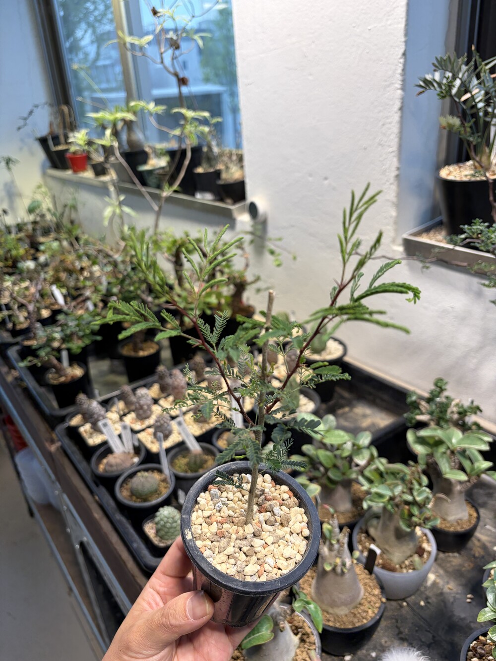 'Caudex' 식물들은 늦가을부터 자연스럽게 잎이 떨어집니다. (환경에 따라 잎이 지지 않을 수 있습니다.) 잎이 떨어지기 시작하면 서서히 물을 줄여나가며 휴면기인 겨울 동안에는 2-3주 1회 가볍게 분무 해주시면 됩니다.
