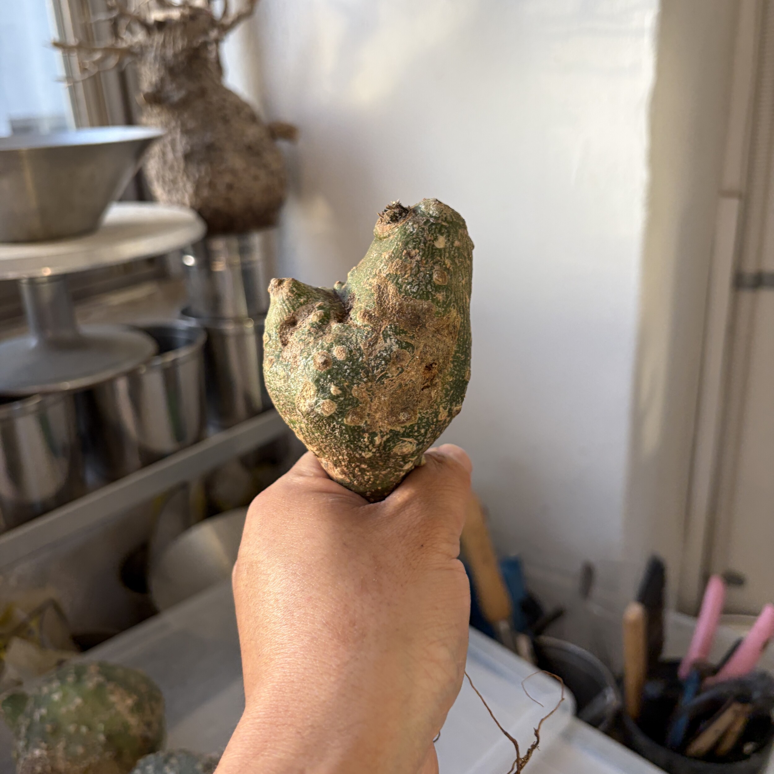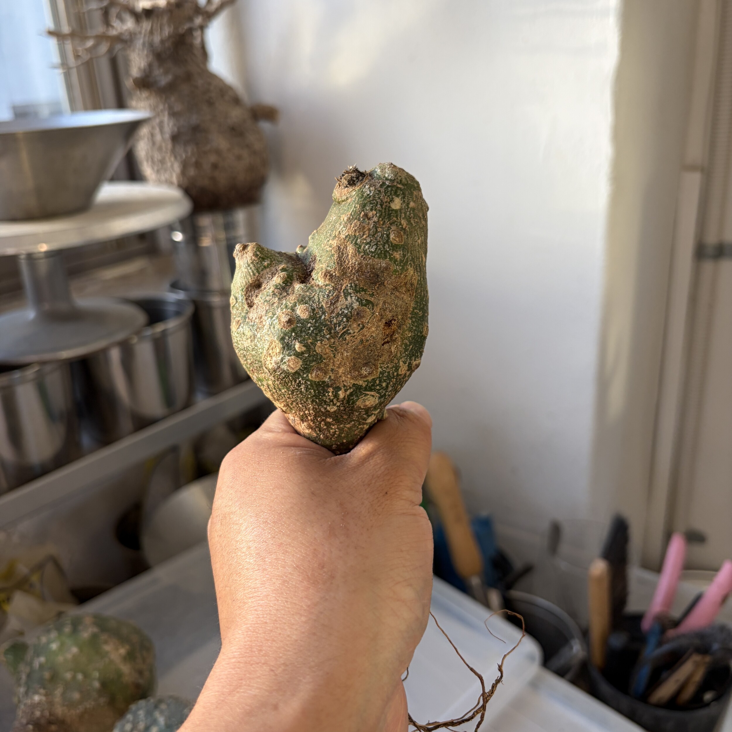 'Caudex' 식물들은 늦가을부터 자연스럽게 잎이 떨어집니다. (환경에 따라 잎이 지지 않을 수 있습니다.) 잎이 떨어지기 시작하면 서서히 물을 줄여나가며 휴면기인 겨울 동안에는 2-3주 1회 가볍게 분무 해주시면 됩니다.