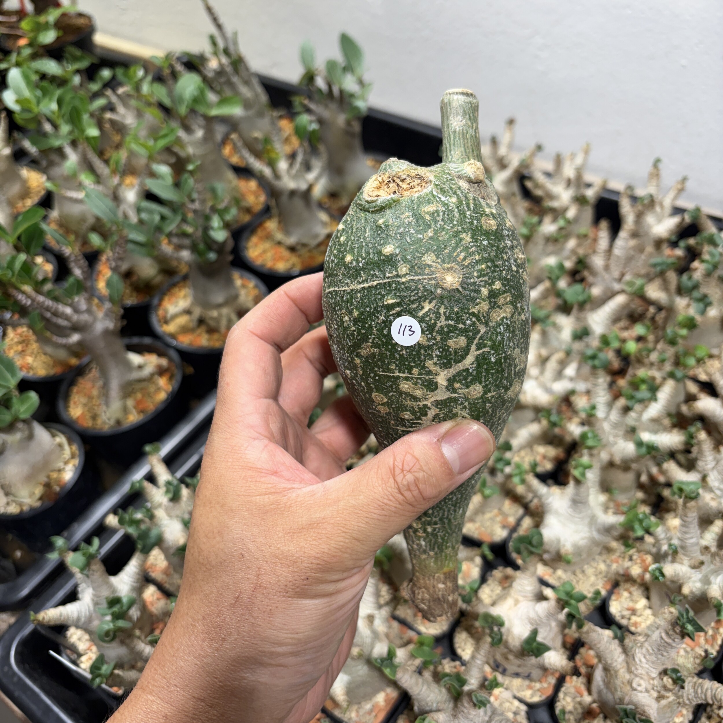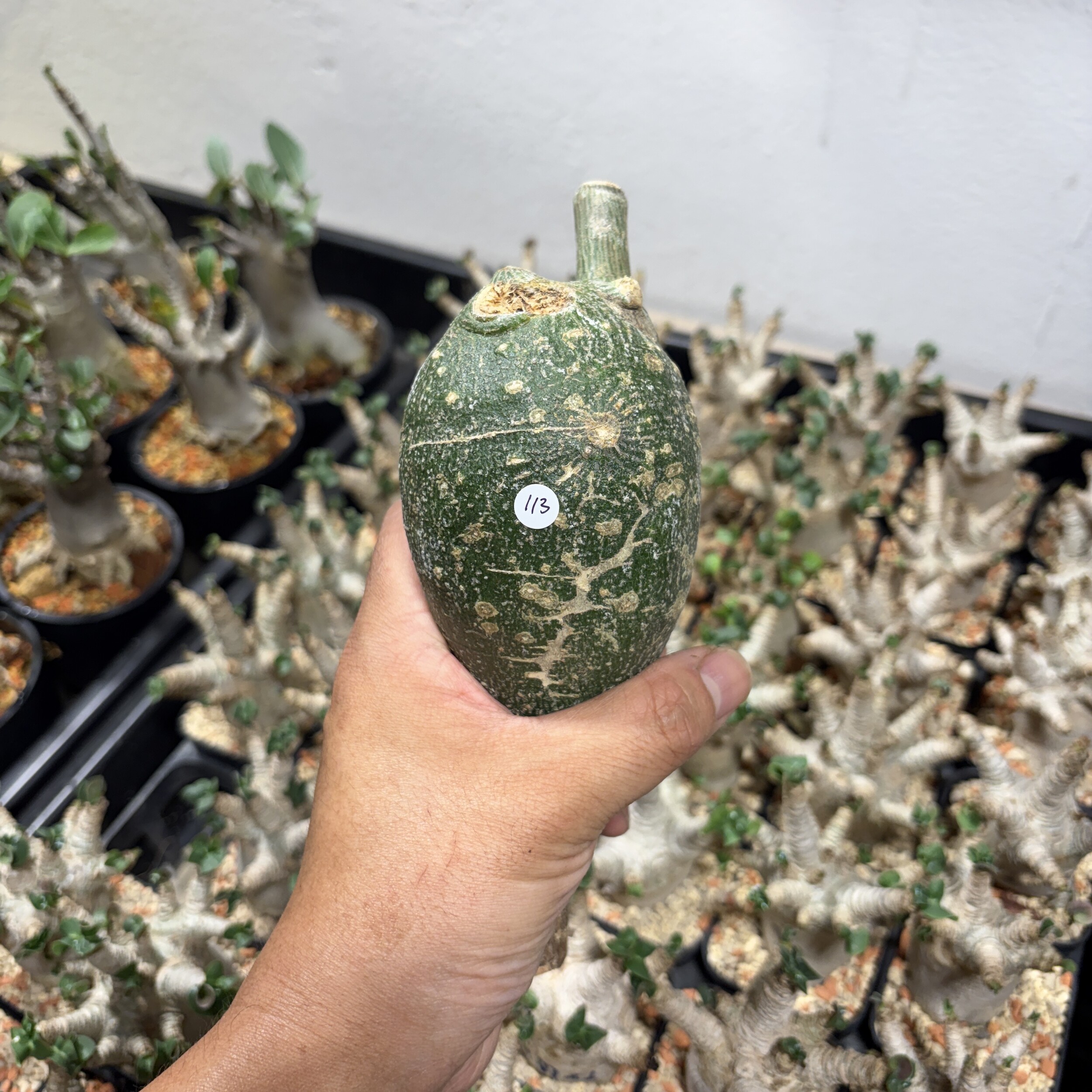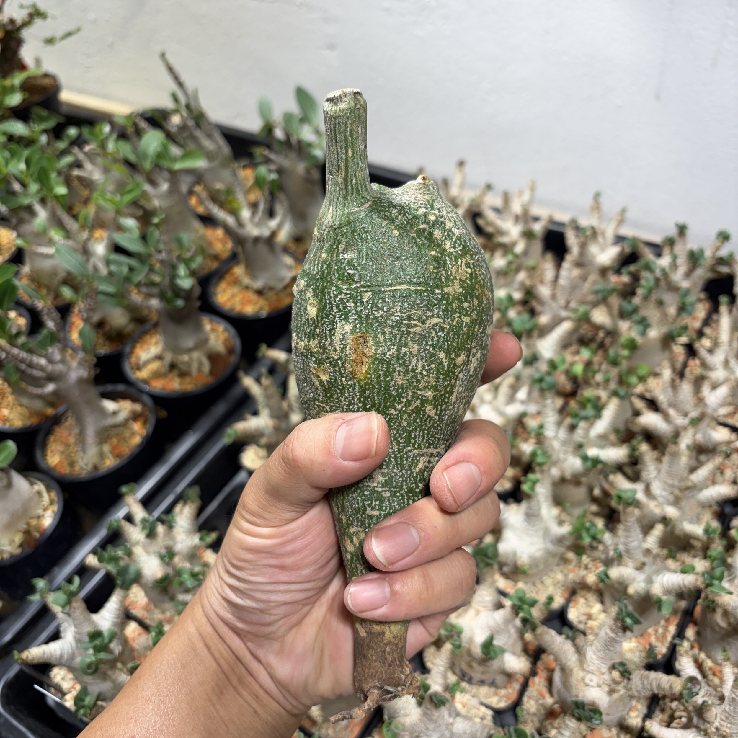 'Caudex' 식물들은 늦가을부터 자연스럽게 잎이 떨어집니다. (환경에 따라 잎이 지지 않을 수 있습니다.) 잎이 떨어지기 시작하면 서서히 물을 줄여나가며 휴면기인 겨울 동안에는 2-3주 1회 가볍게 분무 해주시면 됩니다.