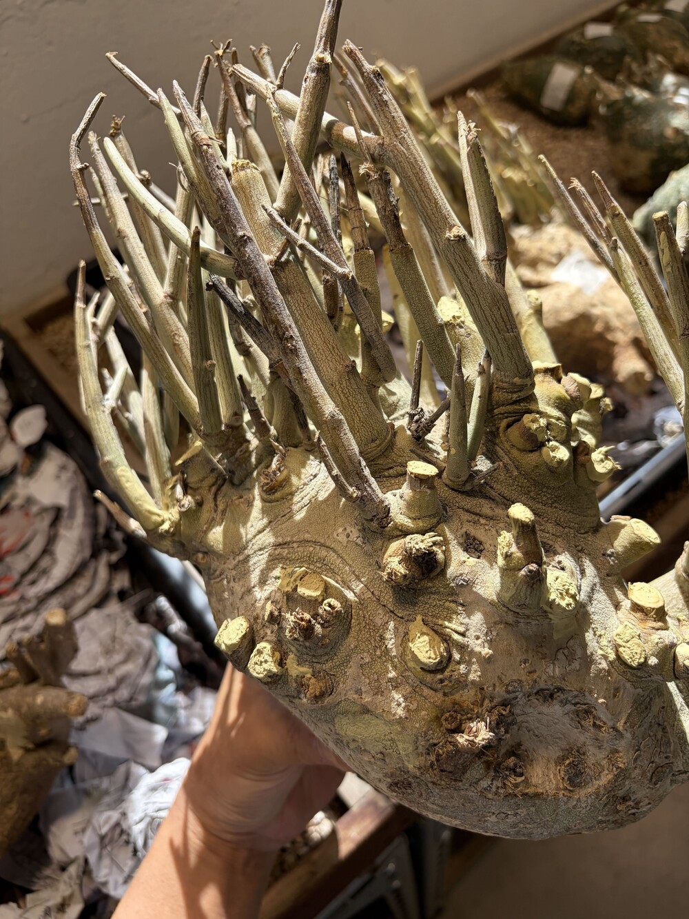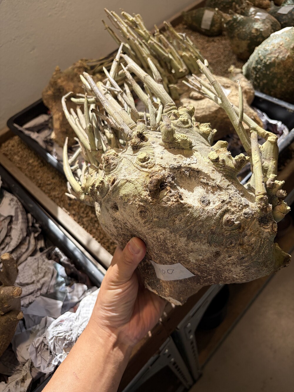 'Caudex' 식물들은 늦가을부터 자연스럽게 잎이 떨어집니다. (환경에 따라 잎이 지지 않을 수 있습니다.) 잎이 떨어지기 시작하면 서서히 물을 줄여나가며 휴면기인 겨울 동안에는 2-3주 1회 가볍게 분무 해주시면 됩니다.