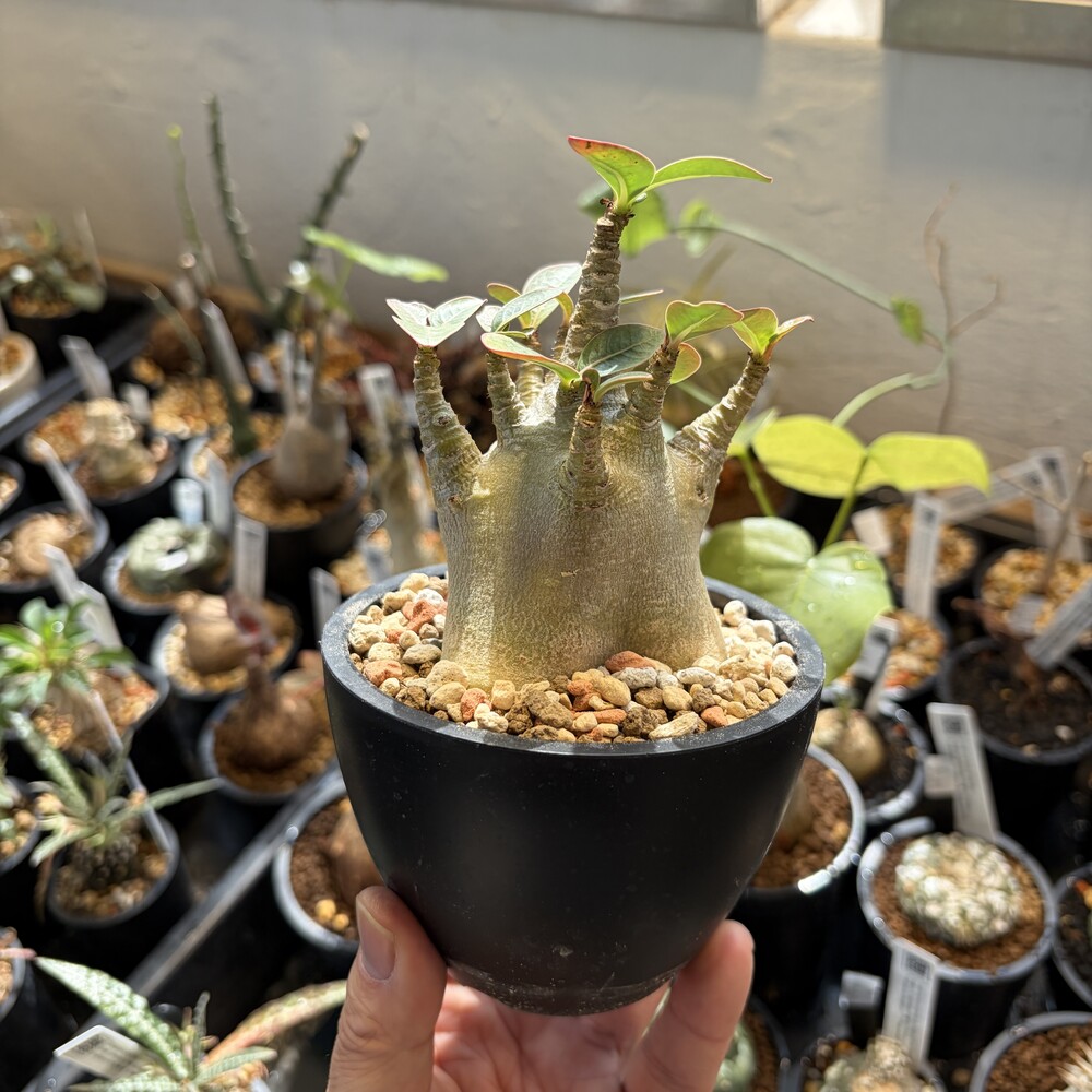 아프리카 예멘 소코트라 섬에서 유래한 식물로 독특한 보틀 트리 형태와 우아한 꽃으로 세계적으로 오랫동안 사랑받아온 대표 코덱스 식물입니다. 바오밥과 닮은 외형이 특징입니다.
