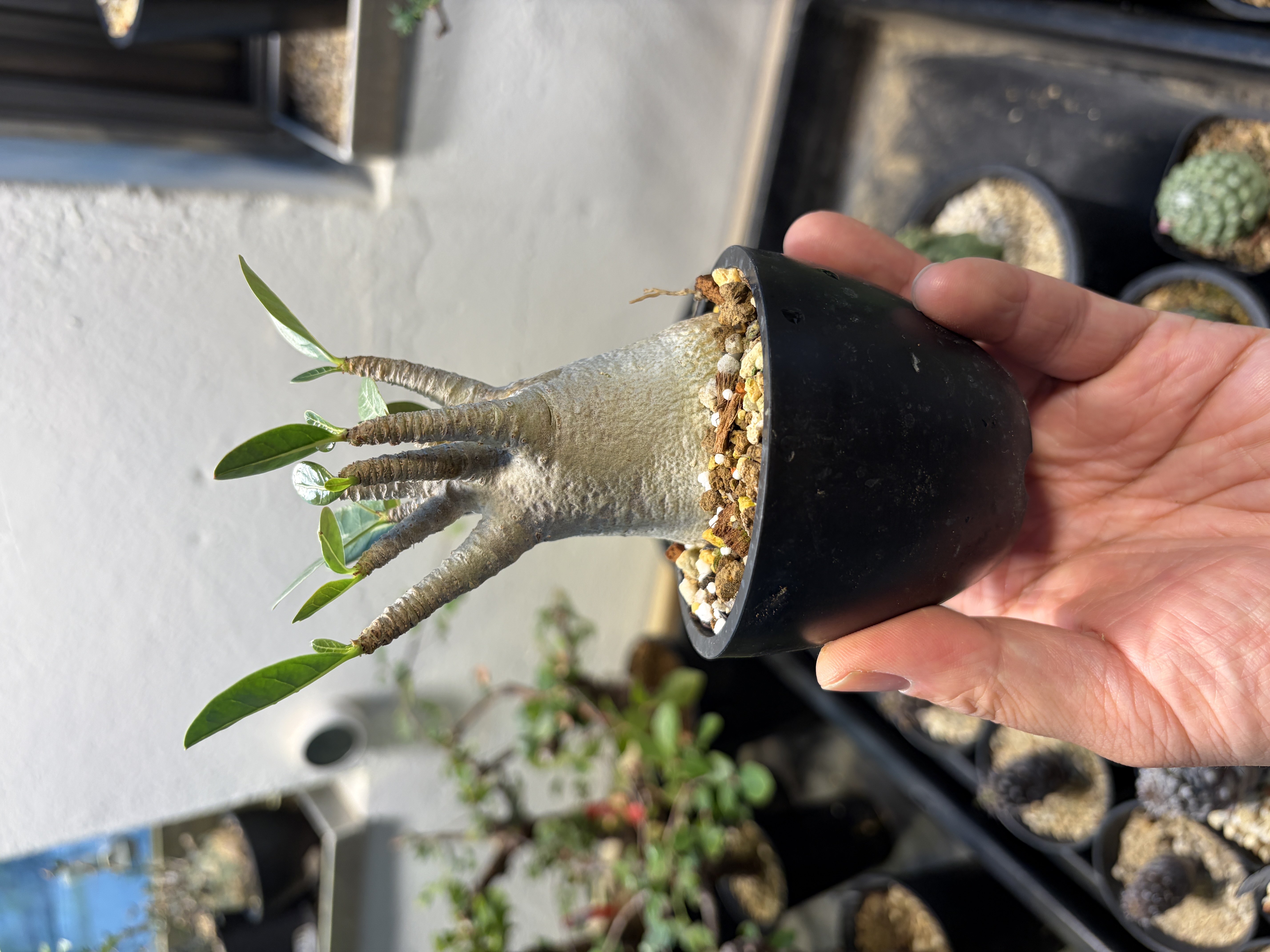 아프리카 예멘 소코트라 섬에서 유래한 식물로 독특한 보틀 트리 형태와 우아한 꽃으로 세계적으로 오랫동안 사랑받아온 대표 코덱스 식물입니다. 바오밥과 닮은 외형이 특징입니다.