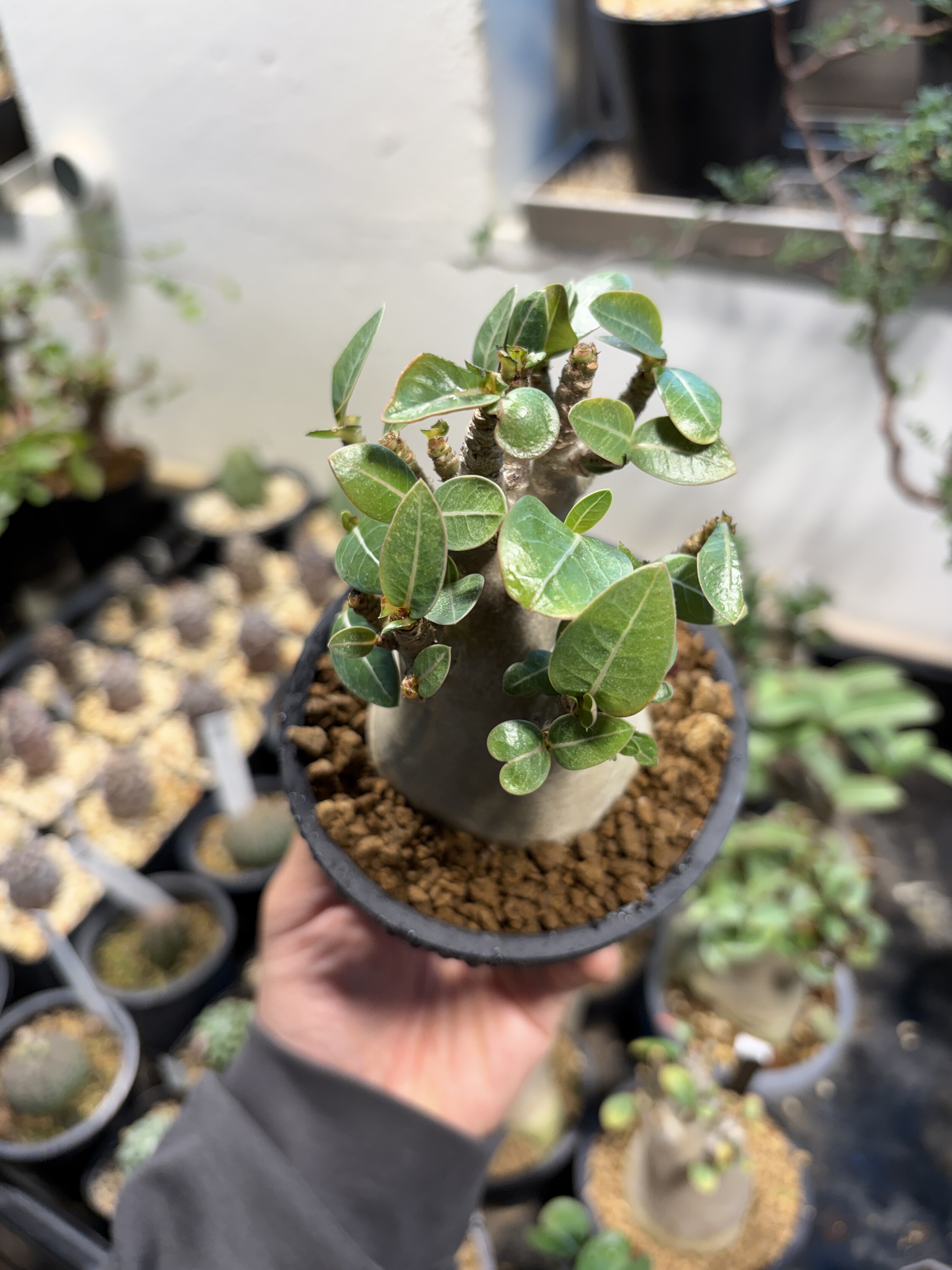 아프리카 예멘 소코트라 섬에서 유래한 식물로 독특한 보틀 트리 형태와 우아한 꽃으로 세계적으로 오랫동안 사랑받아온 대표 코덱스 식물입니다. 바오밥과 닮은 외형이 특징입니다.