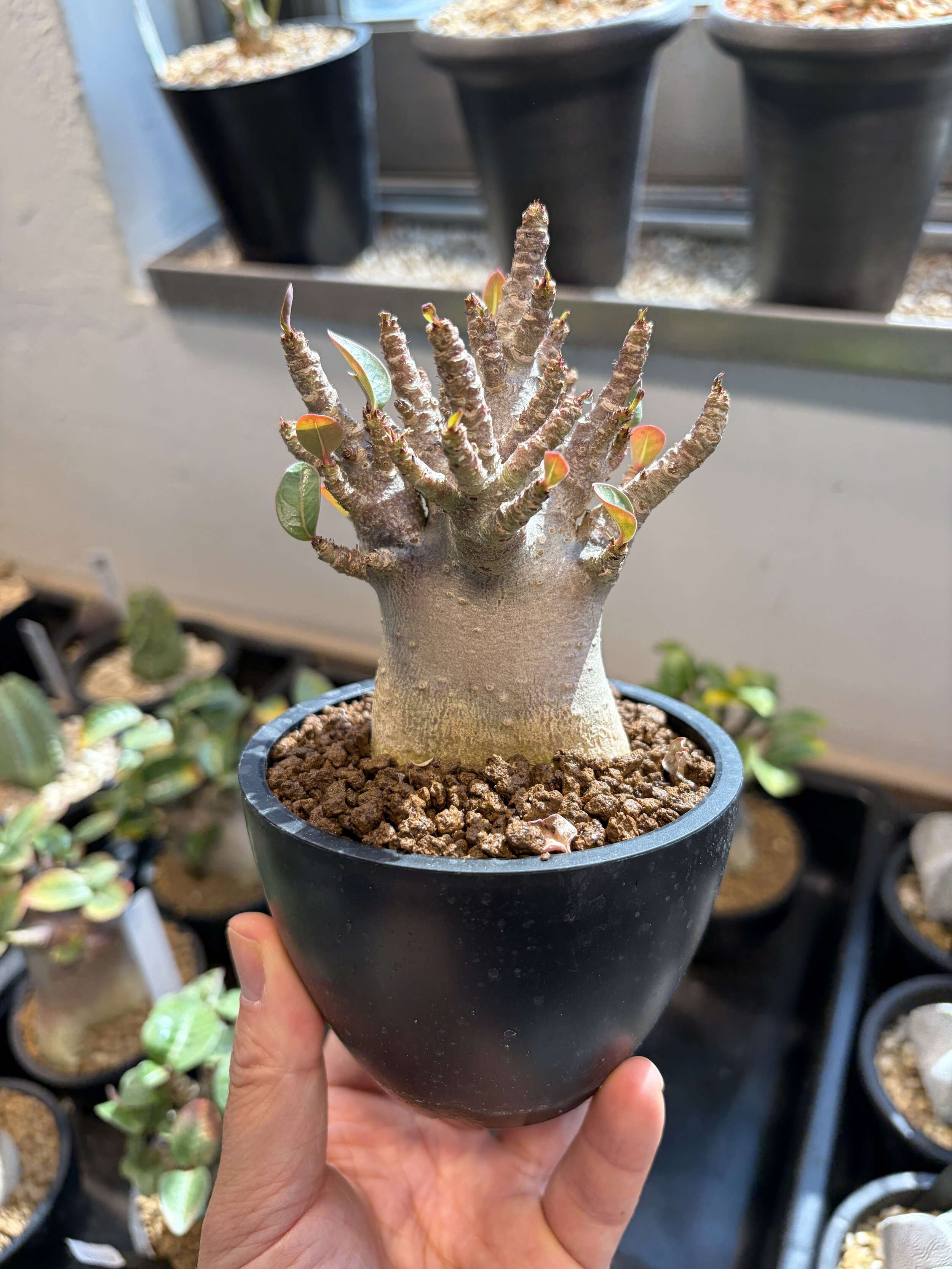 아프리카 예멘 소코트라 섬에서 유래한 식물로 독특한 보틀 트리 형태와 우아한 꽃으로 세계적으로 오랫동안 사랑받아온 대표 코덱스 식물입니다. 바오밥과 닮은 외형이 특징입니다.