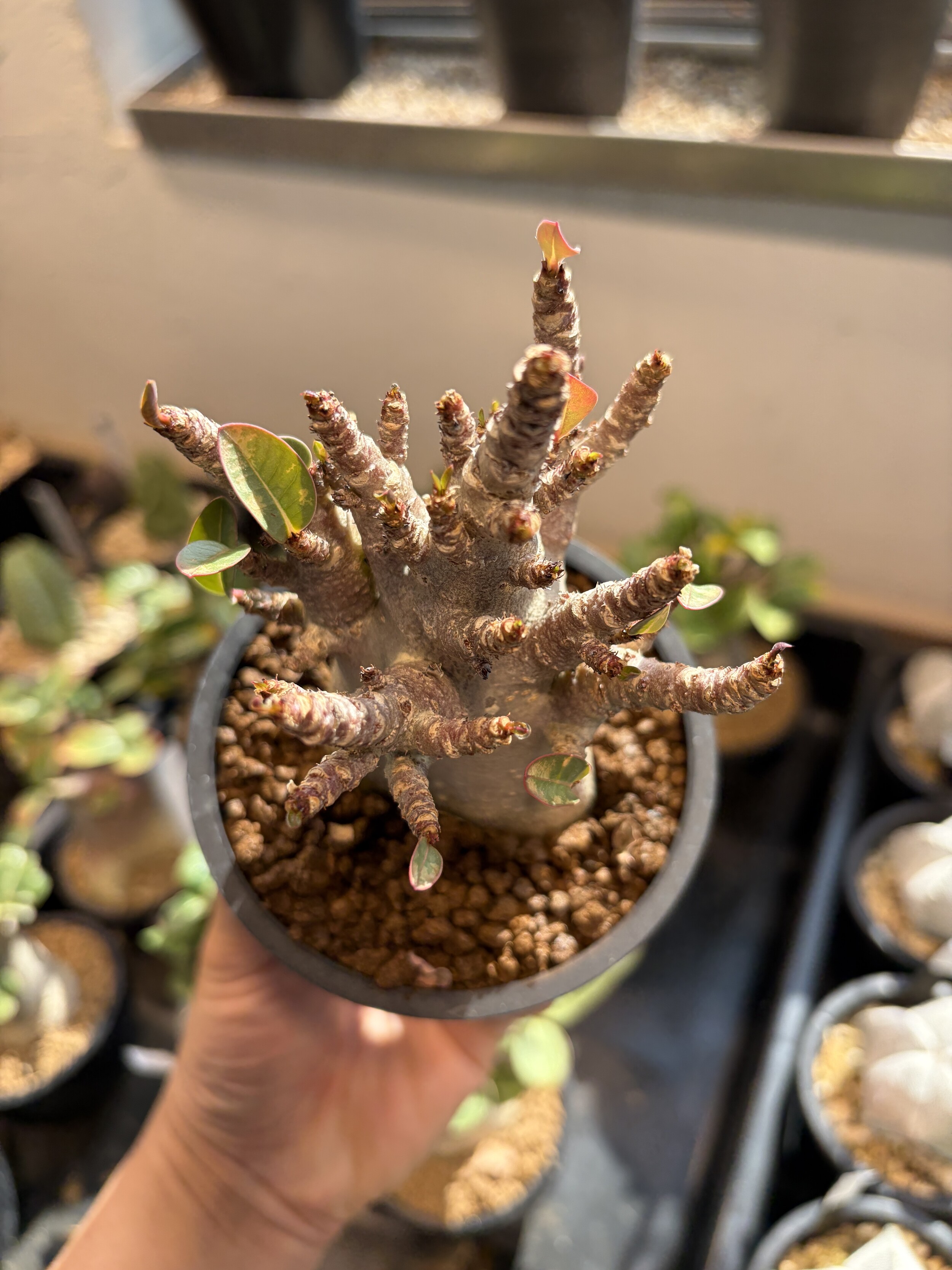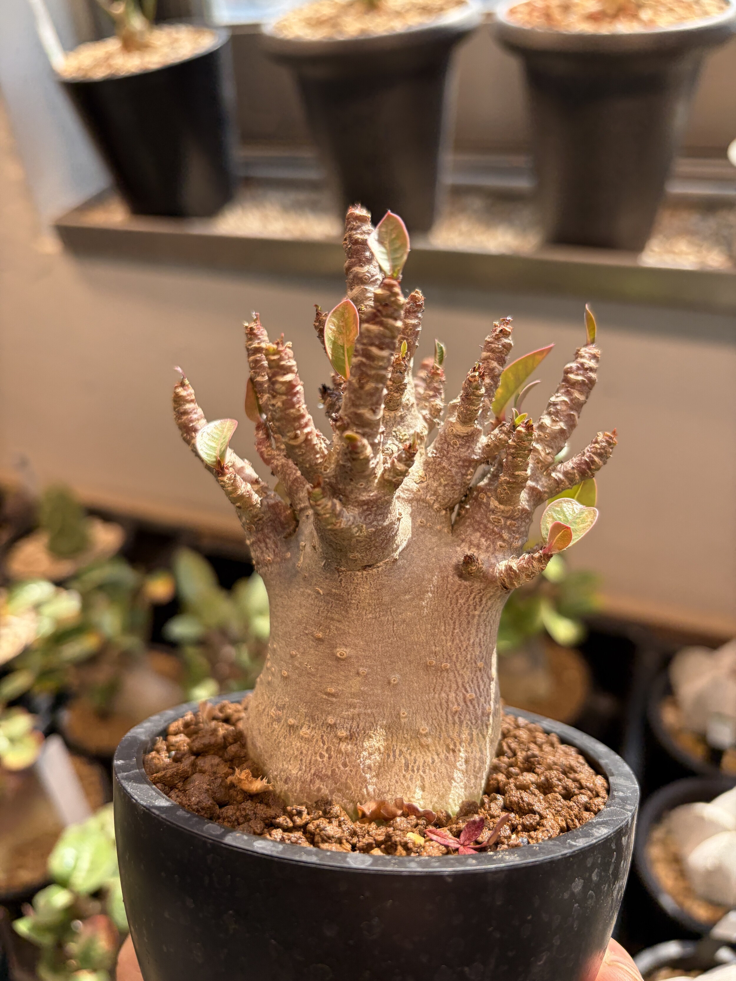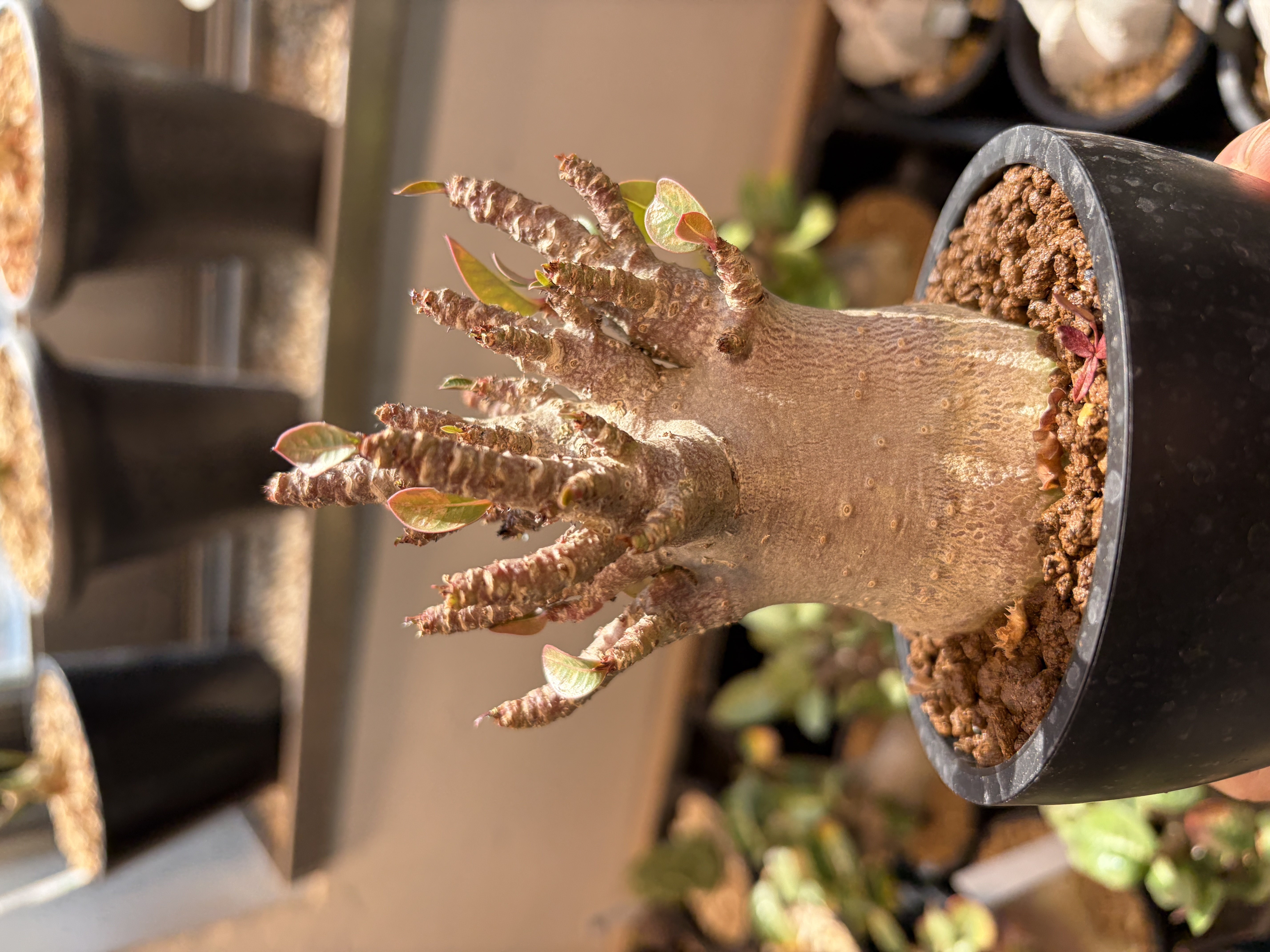 'Caudex' 식물들은 늦가을부터 자연스럽게 잎이 떨어집니다. (환경에 따라 잎이 지지 않을 수 있습니다.) 잎이 떨어지기 시작하면 서서히 물을 줄여나가며 휴면기인 겨울 동안에는 2-3주 1회 가볍게 분무 해주시면 됩니다.