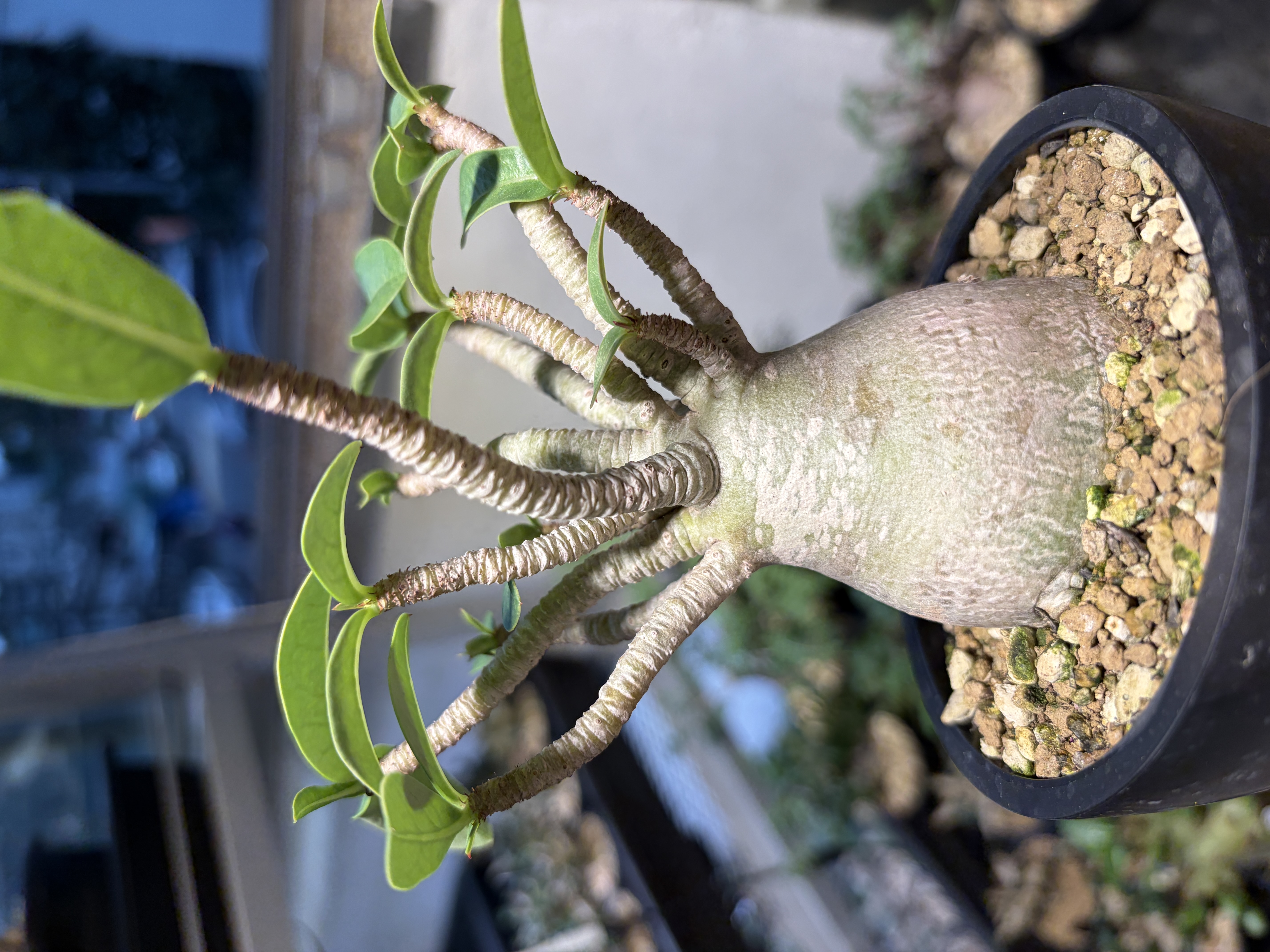 'Caudex' 식물들은 늦가을부터 자연스럽게 잎이 떨어집니다. (환경에 따라 잎이 지지 않을 수 있습니다.) 잎이 떨어지기 시작하면 서서히 물을 줄여나가며 휴면기인 겨울 동안에는 2-3주 1회 가볍게 분무 해주시면 됩니다.
