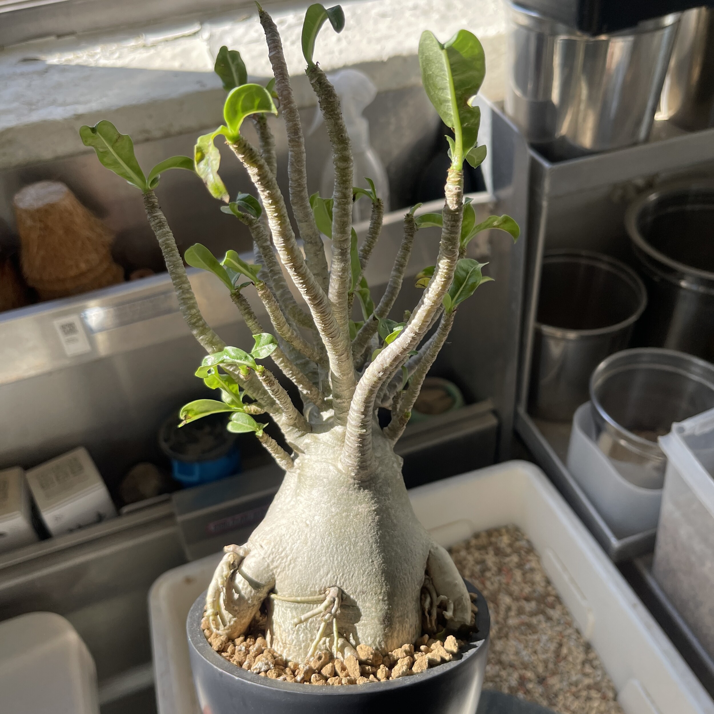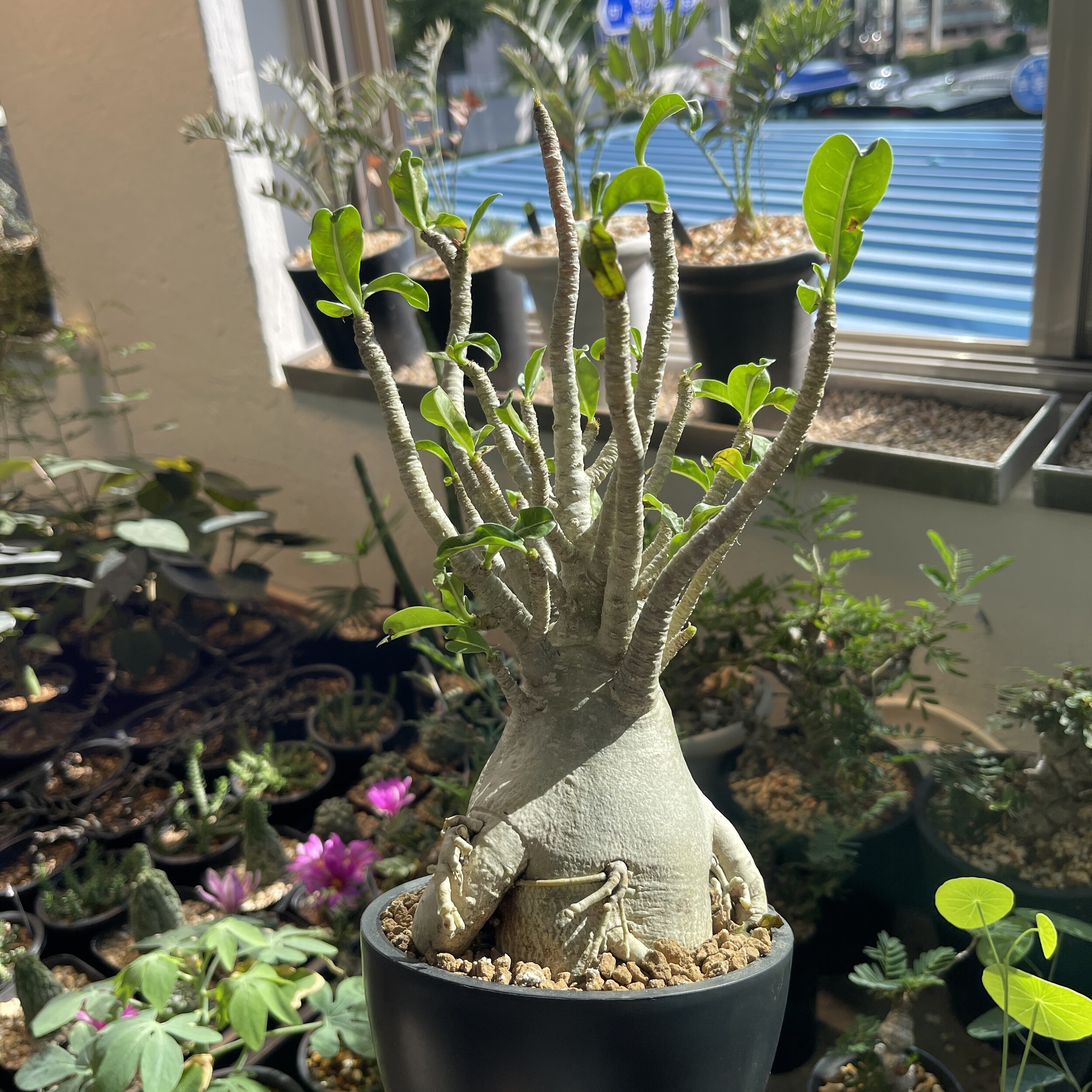 아프리카 예멘 소코트라 섬에서 유래한 식물로 독특한 보틀 트리 형태와 우아한 꽃으로 세계적으로 오랫동안 사랑받아온 대표 코덱스 식물입니다. 바오밥과 닮은 외형이 특징입니다.
