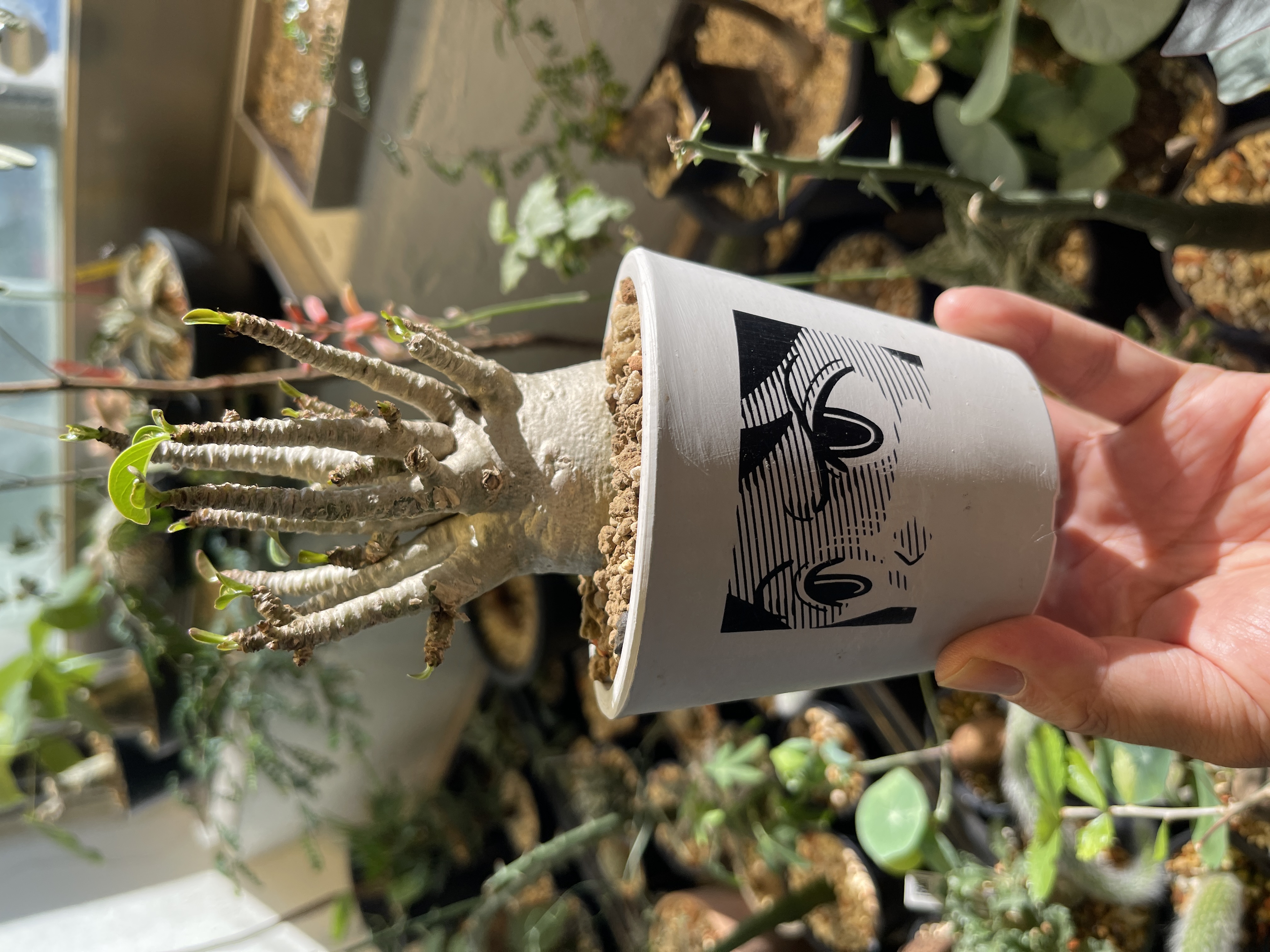 아프리카 예멘 소코트라 섬에서 유래한 식물로 독특한 보틀 트리 형태와 우아한 꽃으로 세계적으로 오랫동안 사랑받아온 대표 코덱스 식물입니다. 바오밥과 닮은 외형이 특징입니다.