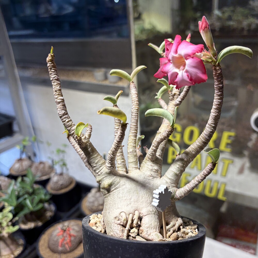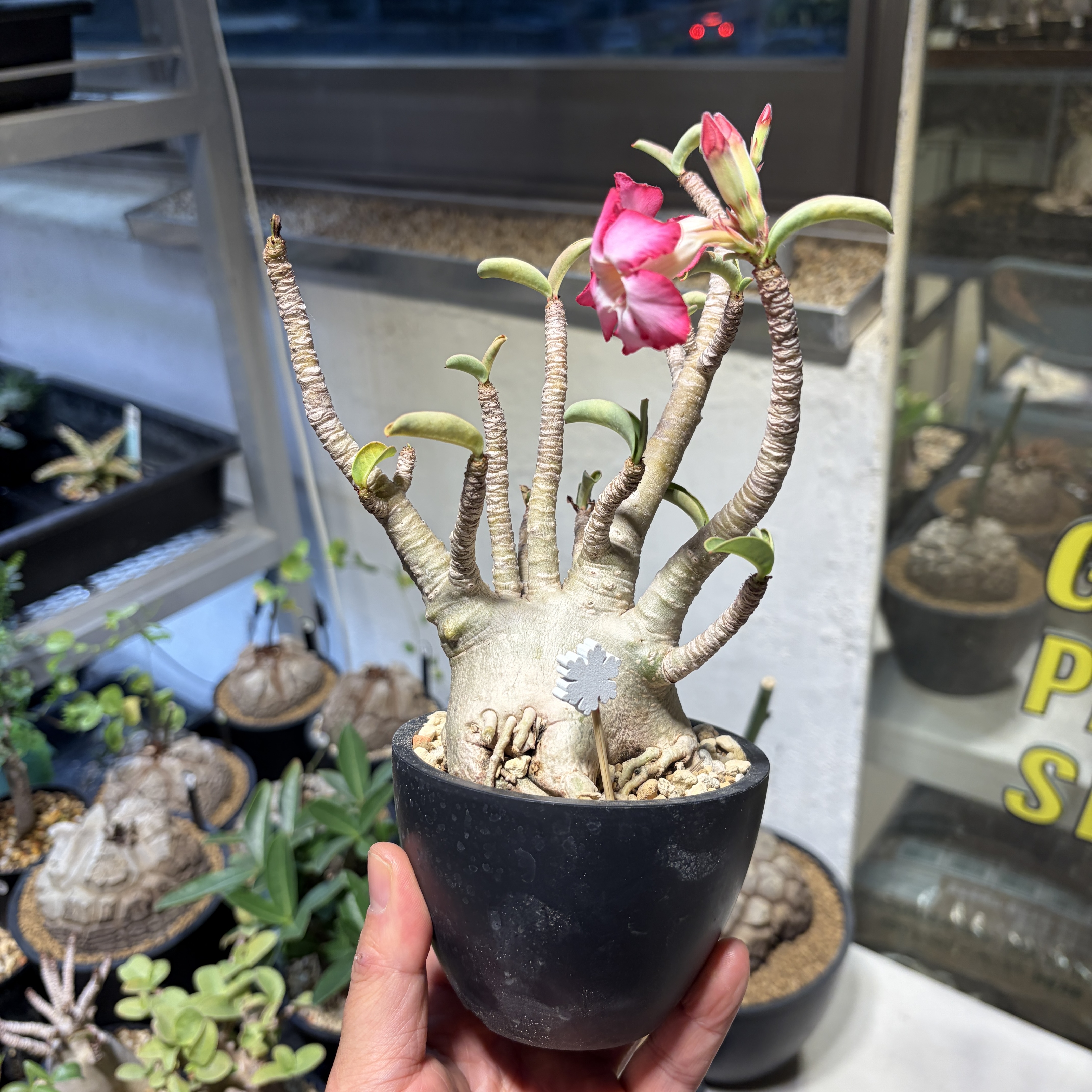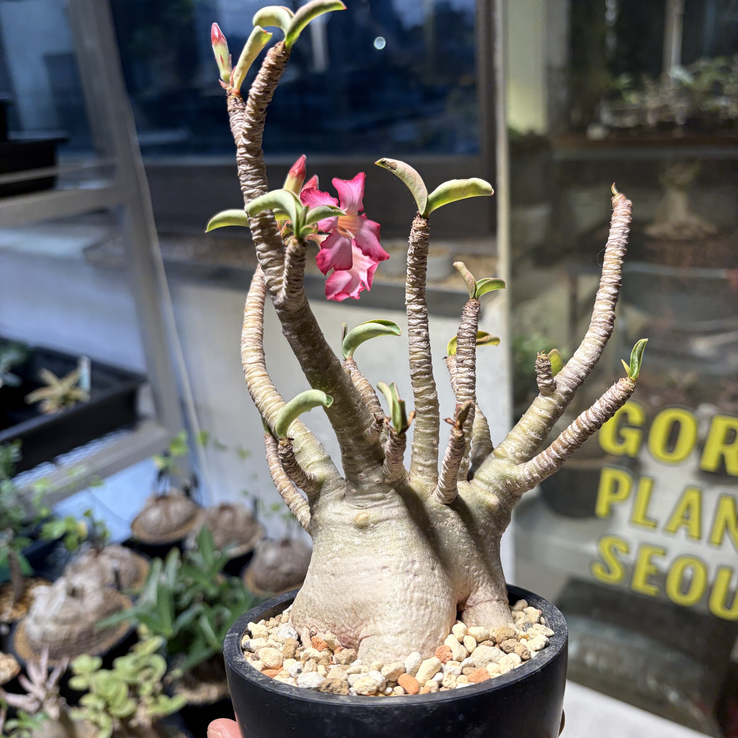 아프리카 예멘 소코트라 섬에서 유래한 식물로 독특한 보틀 트리 형태와 우아한 꽃으로 세계적으로 오랫동안 사랑받아온 대표 코덱스 식물입니다. 바오밥과 닮은 외형이 특징입니다.