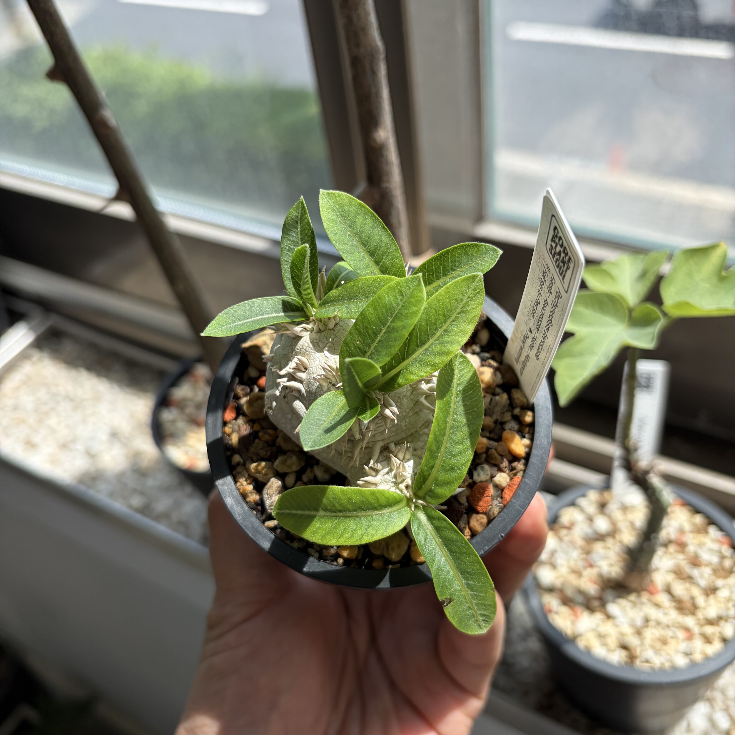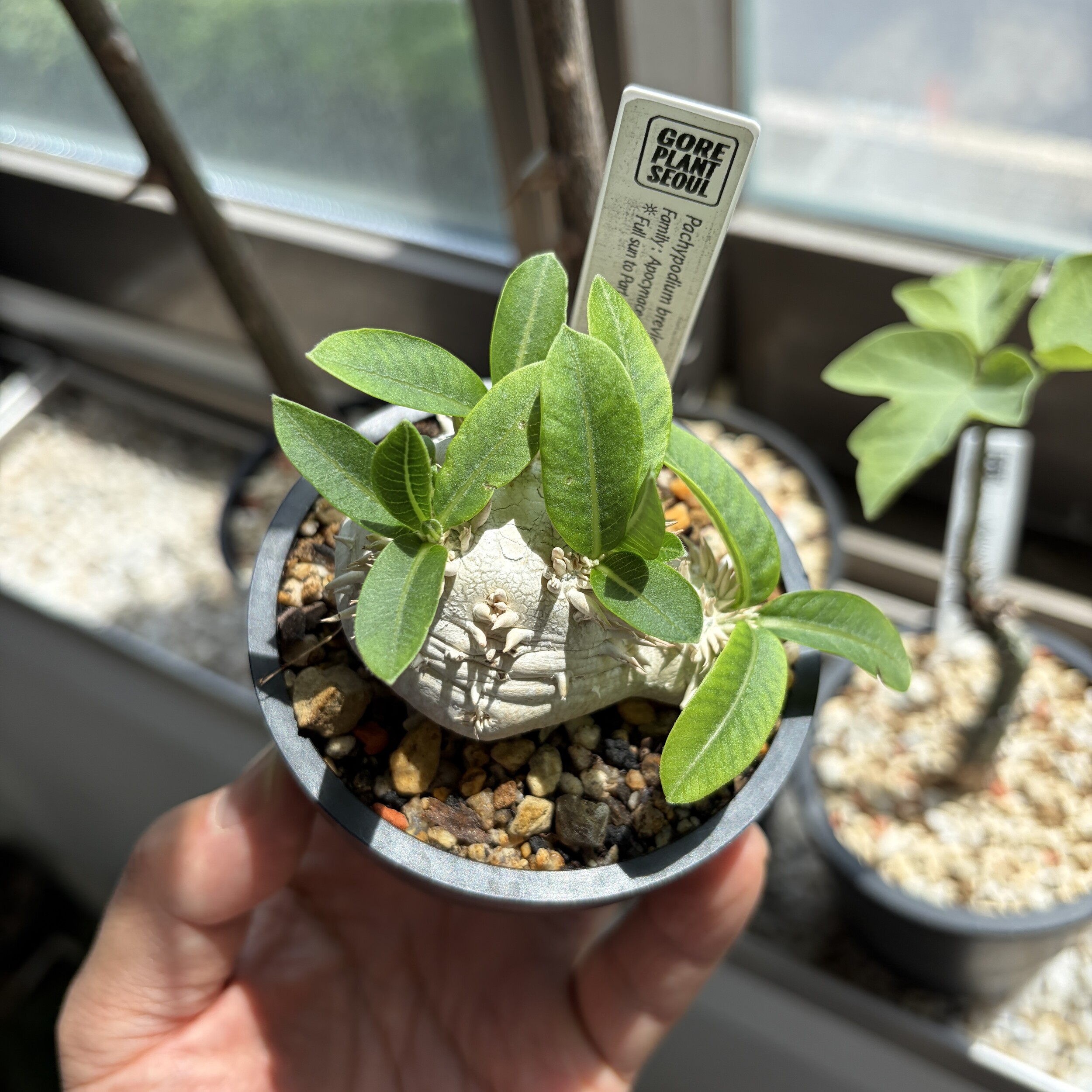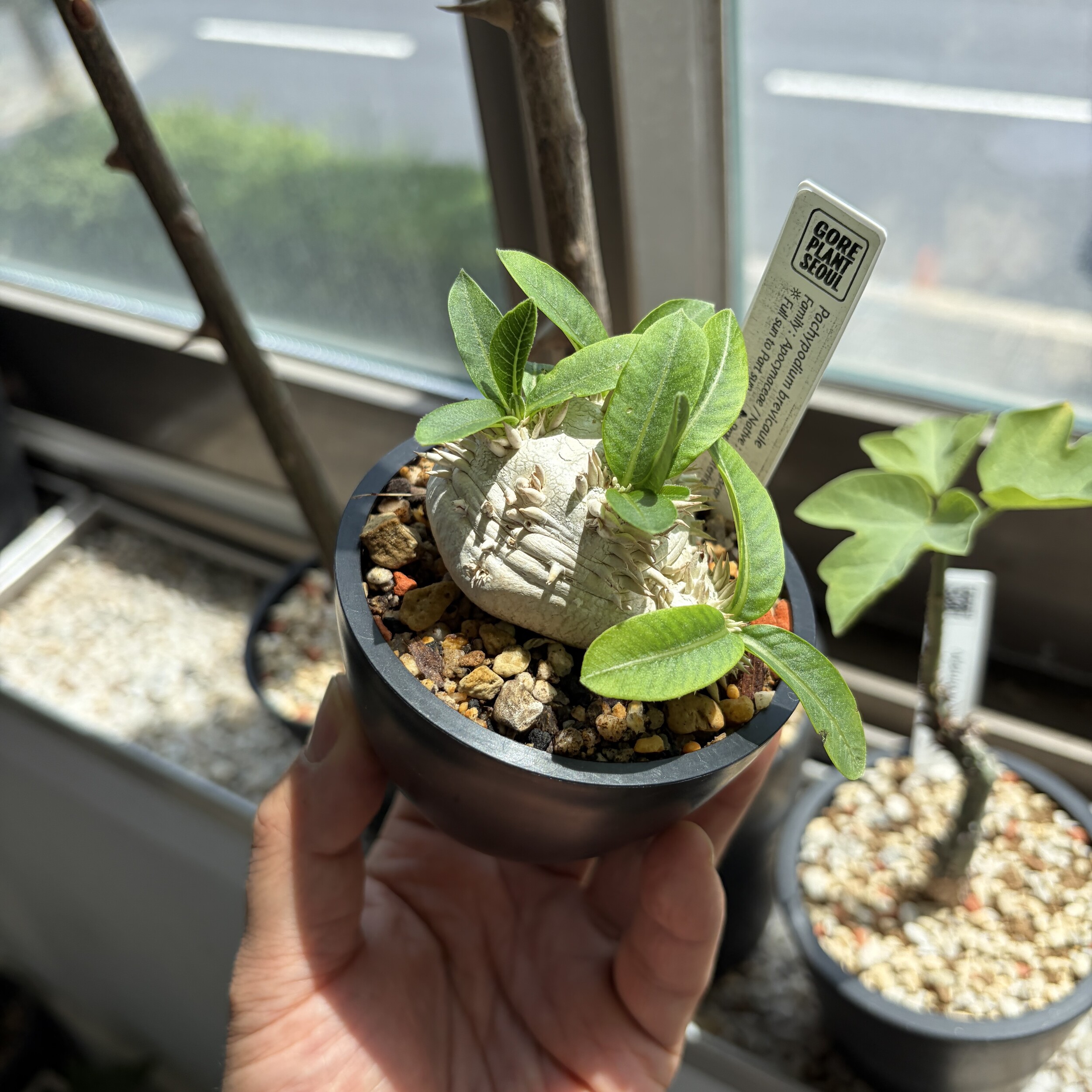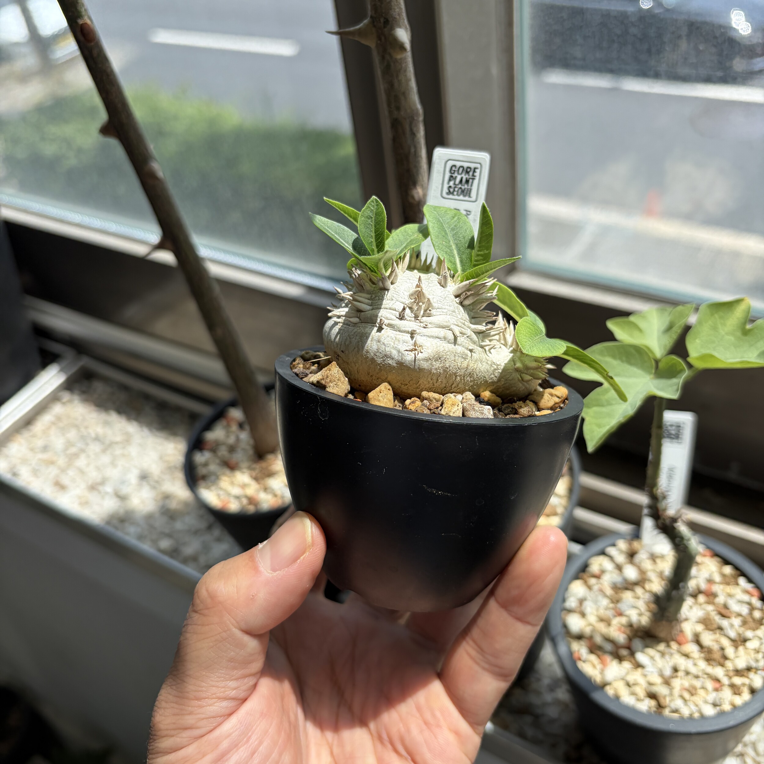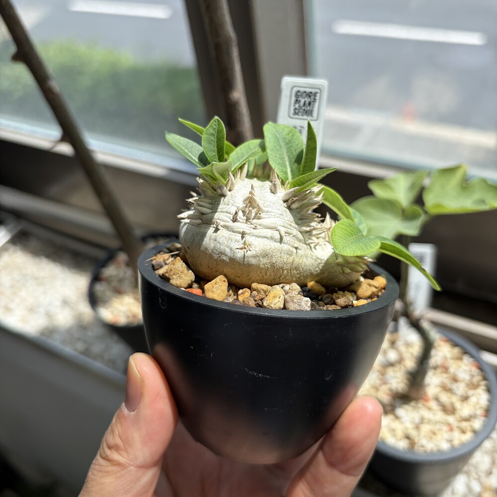 'Caudex' 식물들은 늦가을부터 자연스럽게 잎이 떨어집니다. (환경에 따라 잎이 지지 않을 수 있습니다.) 잎이 떨어지기 시작하면 서서히 물을 줄여나가며 휴면기인 겨울 동안에는 2-3주 1회 가볍게 분무 해주시면 됩니다.