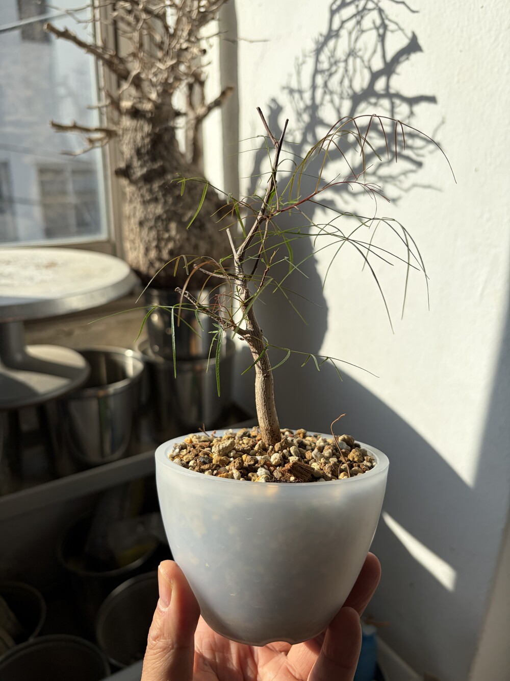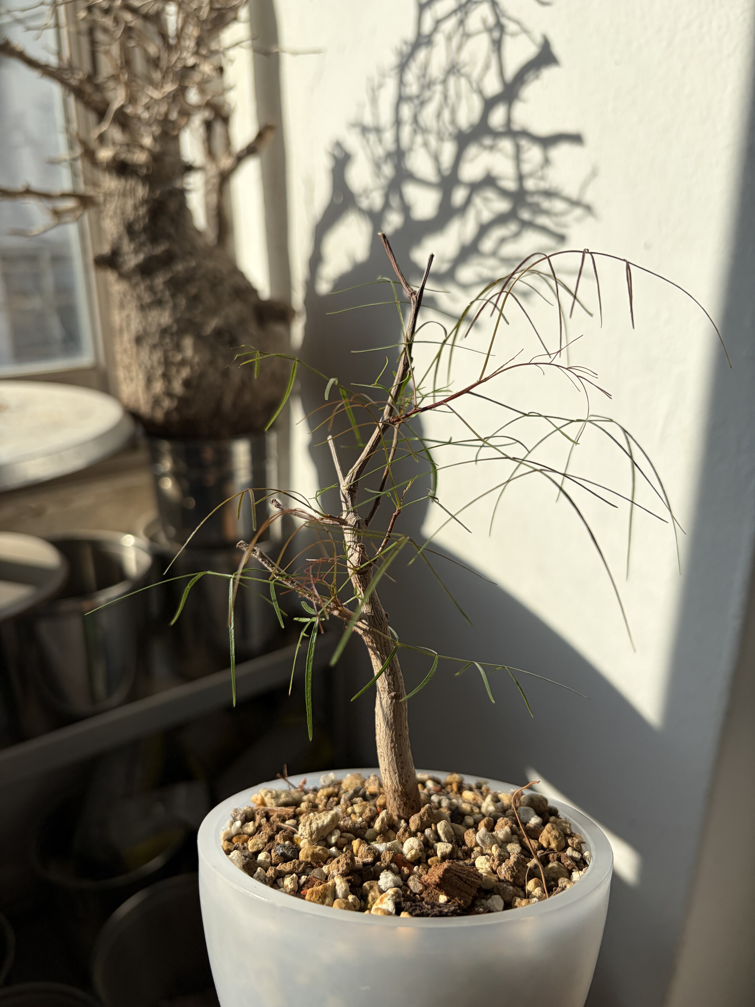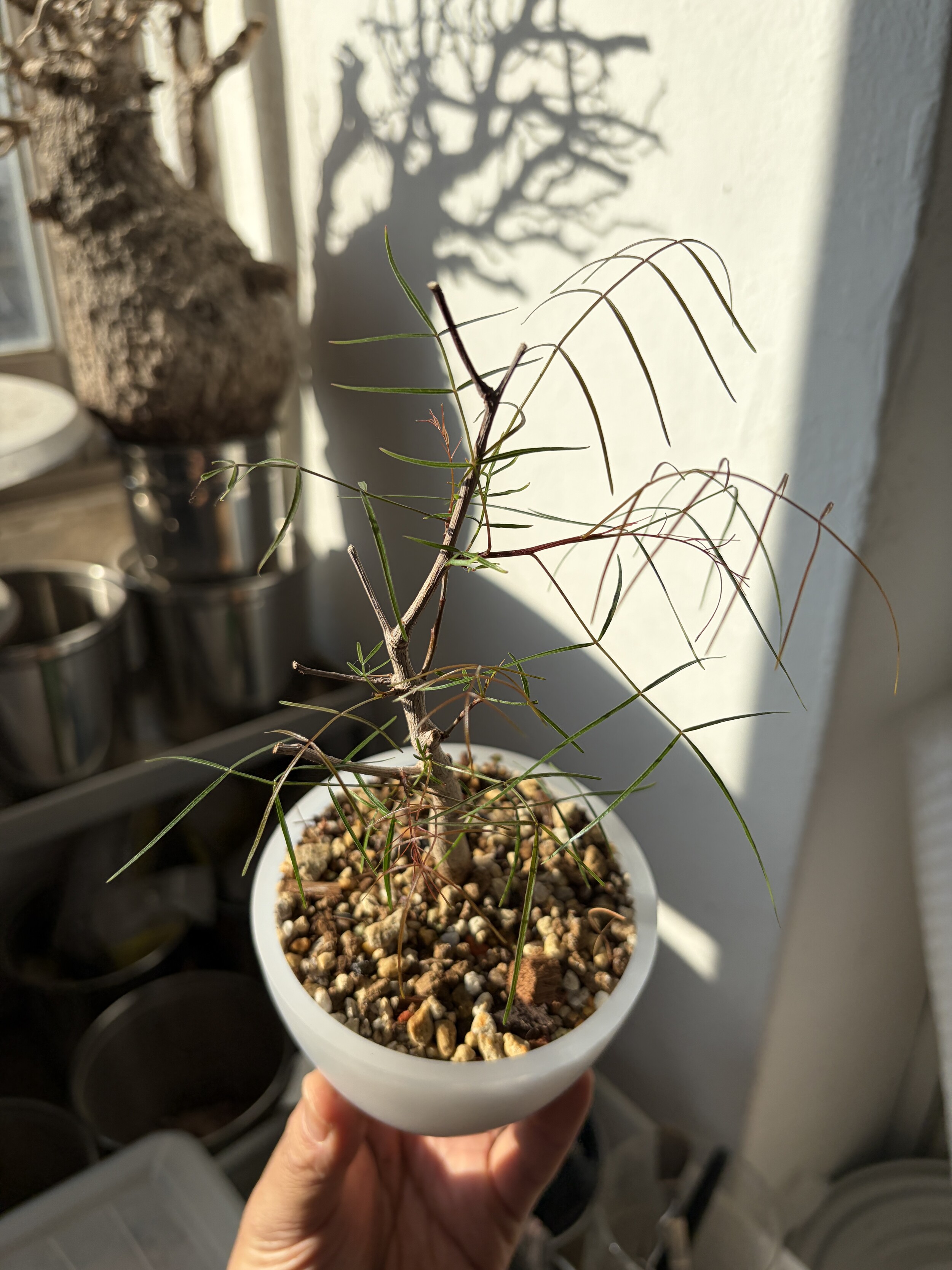 'Caudex' 식물들은 늦가을부터 자연스럽게 잎이 떨어집니다. (환경에 따라 잎이 지지 않을 수 있습니다.) 잎이 떨어지기 시작하면 서서히 물을 줄여나가며 휴면기인 겨울 동안에는 2-3주 1회 가볍게 분무 해주시면 됩니다.
