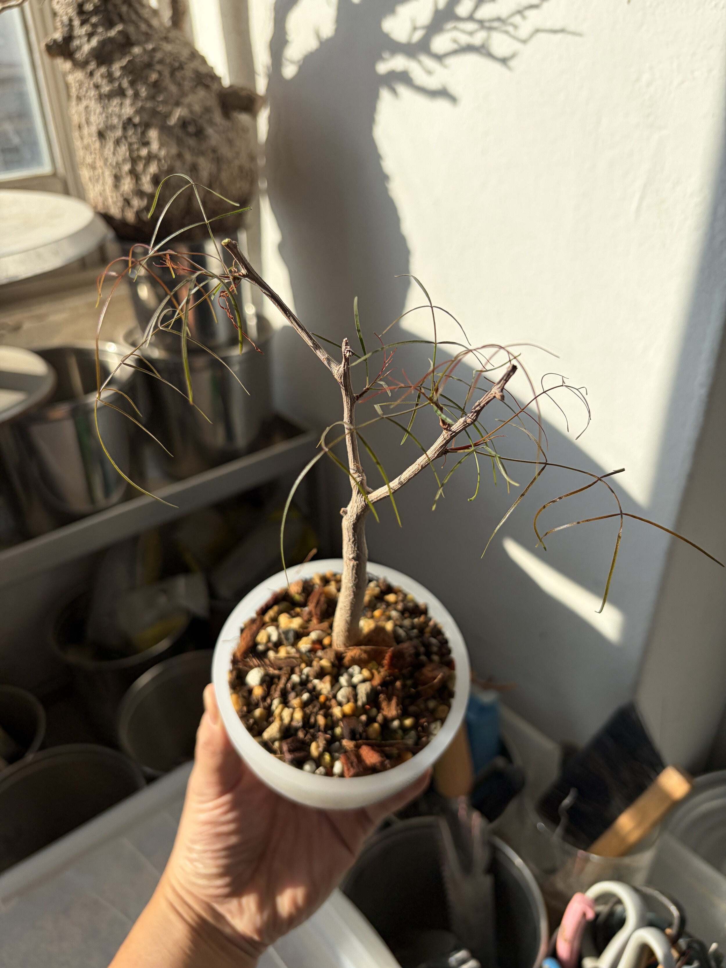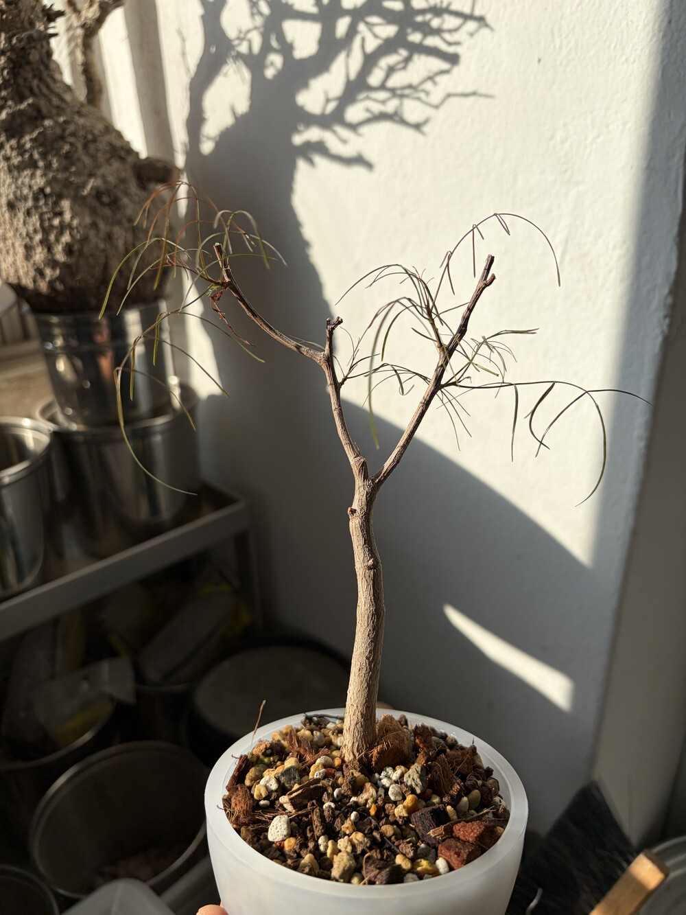 'Caudex' 식물들은 늦가을부터 자연스럽게 잎이 떨어집니다. (환경에 따라 잎이 지지 않을 수 있습니다.) 잎이 떨어지기 시작하면 서서히 물을 줄여나가며 휴면기인 겨울 동안에는 2-3주 1회 가볍게 분무 해주시면 됩니다.