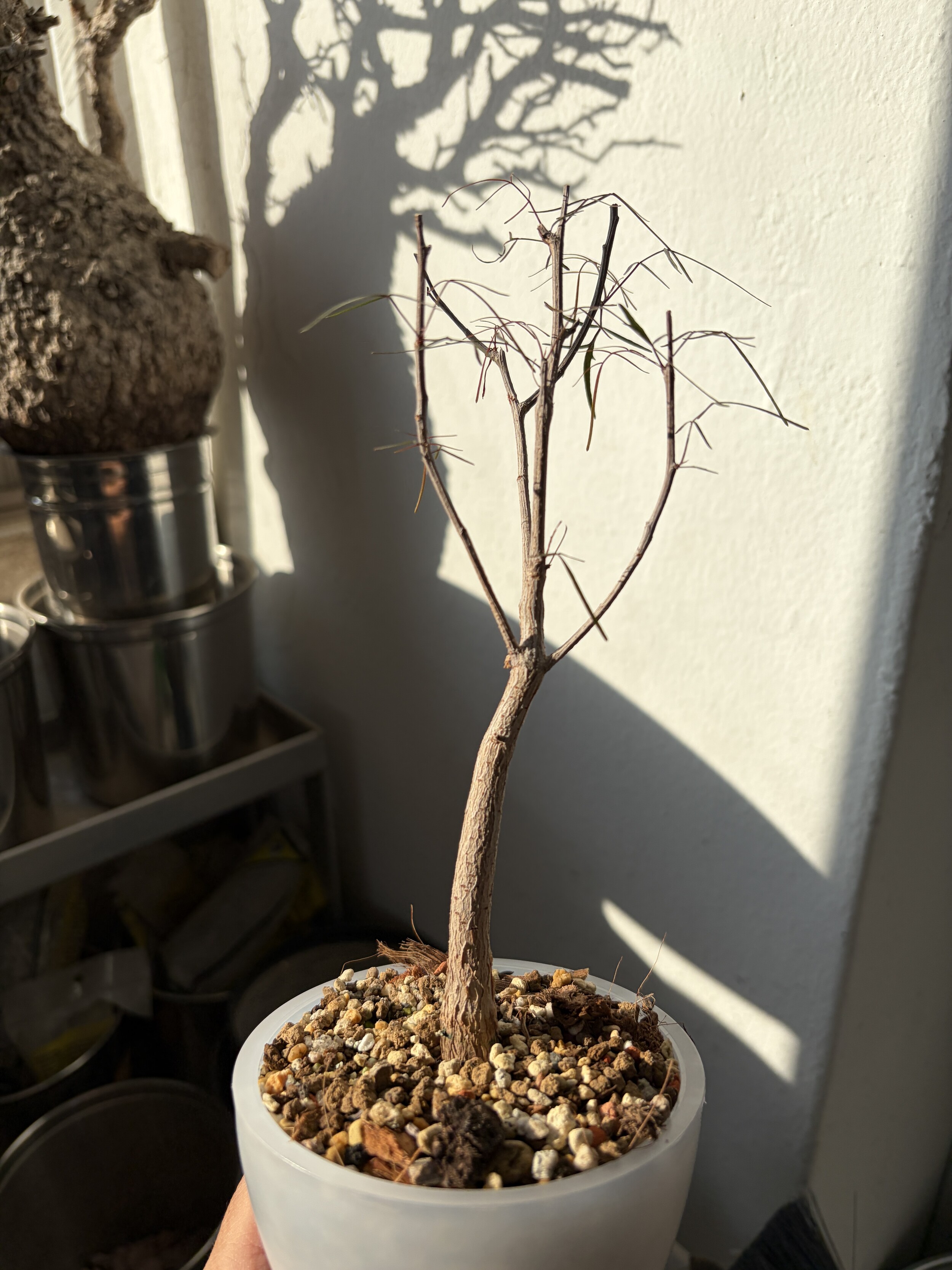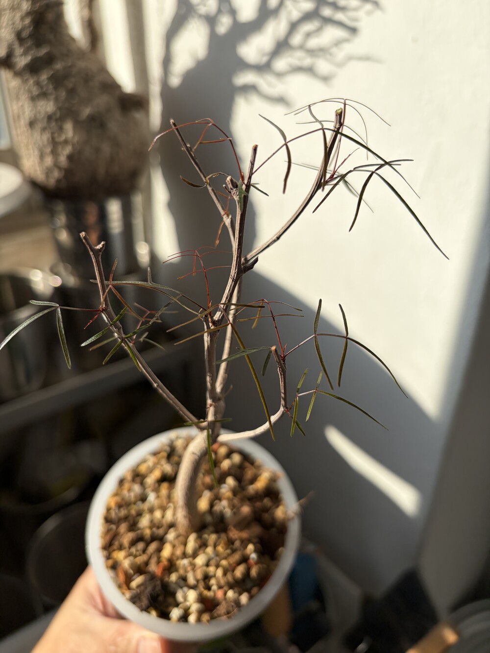 'Caudex' 식물들은 늦가을부터 자연스럽게 잎이 떨어집니다. (환경에 따라 잎이 지지 않을 수 있습니다.) 잎이 떨어지기 시작하면 서서히 물을 줄여나가며 휴면기인 겨울 동안에는 2-3주 1회 가볍게 분무 해주시면 됩니다.