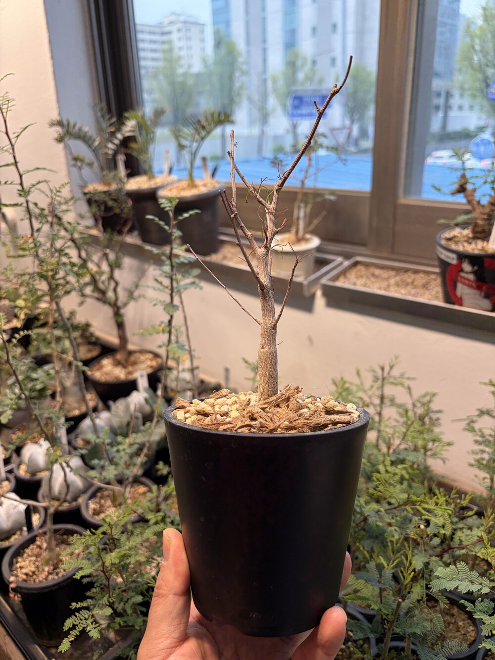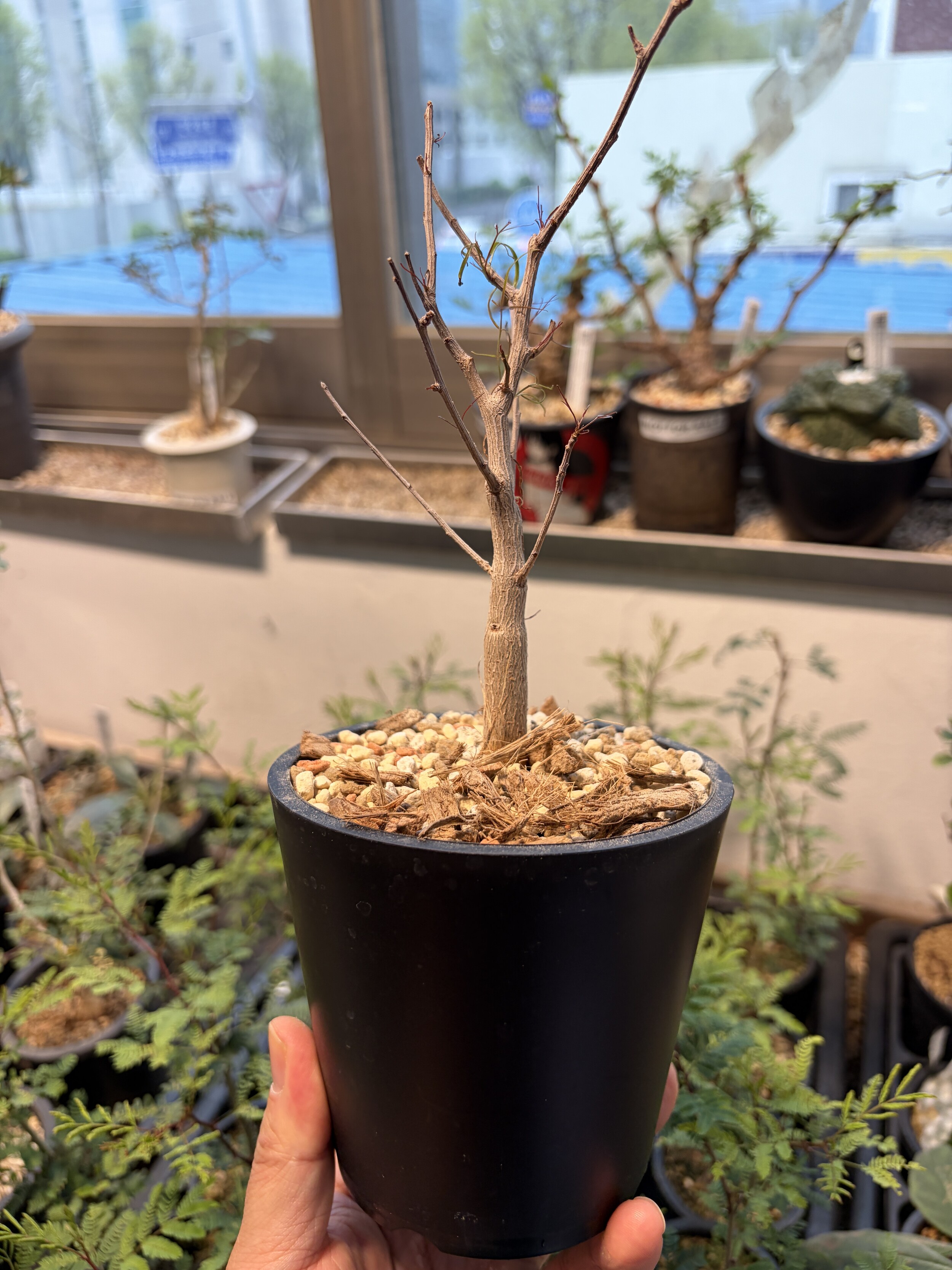 'Caudex' 식물들은 늦가을부터 자연스럽게 잎이 떨어집니다. (환경에 따라 잎이 지지 않을 수 있습니다.) 잎이 떨어지기 시작하면 서서히 물을 줄여나가며 휴면기인 겨울 동안에는 2-3주 1회 가볍게 분무 해주시면 됩니다.
