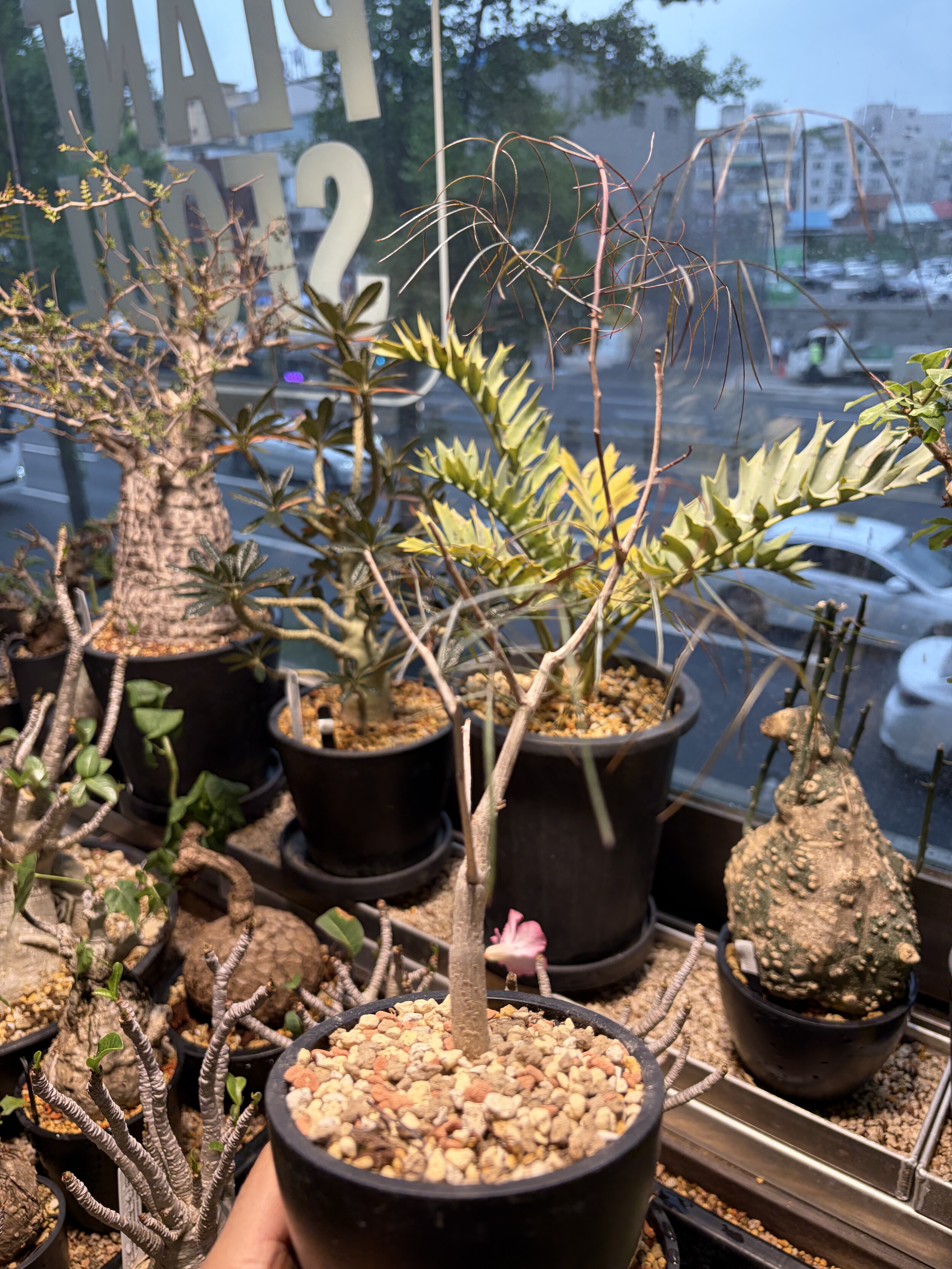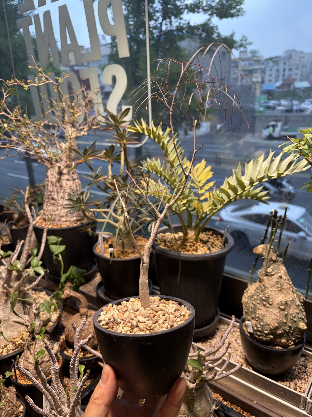 'Caudex' 식물들은 늦가을부터 자연스럽게 잎이 떨어집니다. (환경에 따라 잎이 지지 않을 수 있습니다.) 잎이 떨어지기 시작하면 서서히 물을 줄여나가며 휴면기인 겨울 동안에는 2-3주 1회 가볍게 분무 해주시면 됩니다.