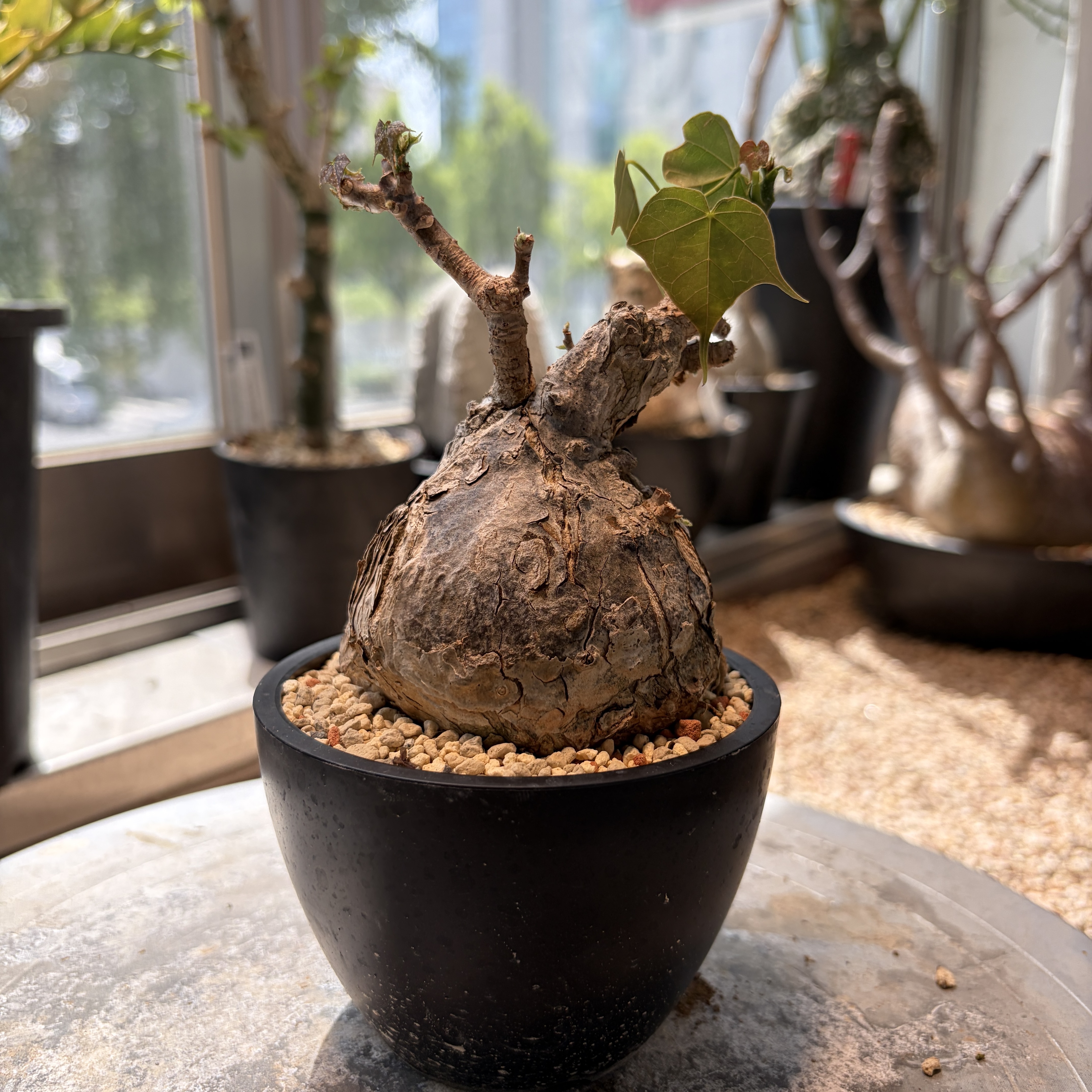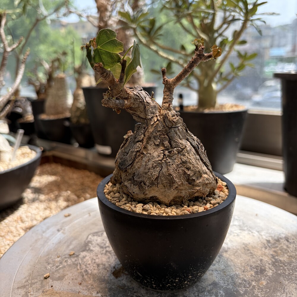 'Caudex' 식물들은 늦가을부터 자연스럽게 잎이 떨어집니다. (환경에 따라 잎이 지지 않을 수 있습니다.) 잎이 떨어지기 시작하면 서서히 물을 줄여나가며 휴면기인 겨울 동안에는 2-3주 1회 가볍게 분무 해주시면 됩니다.