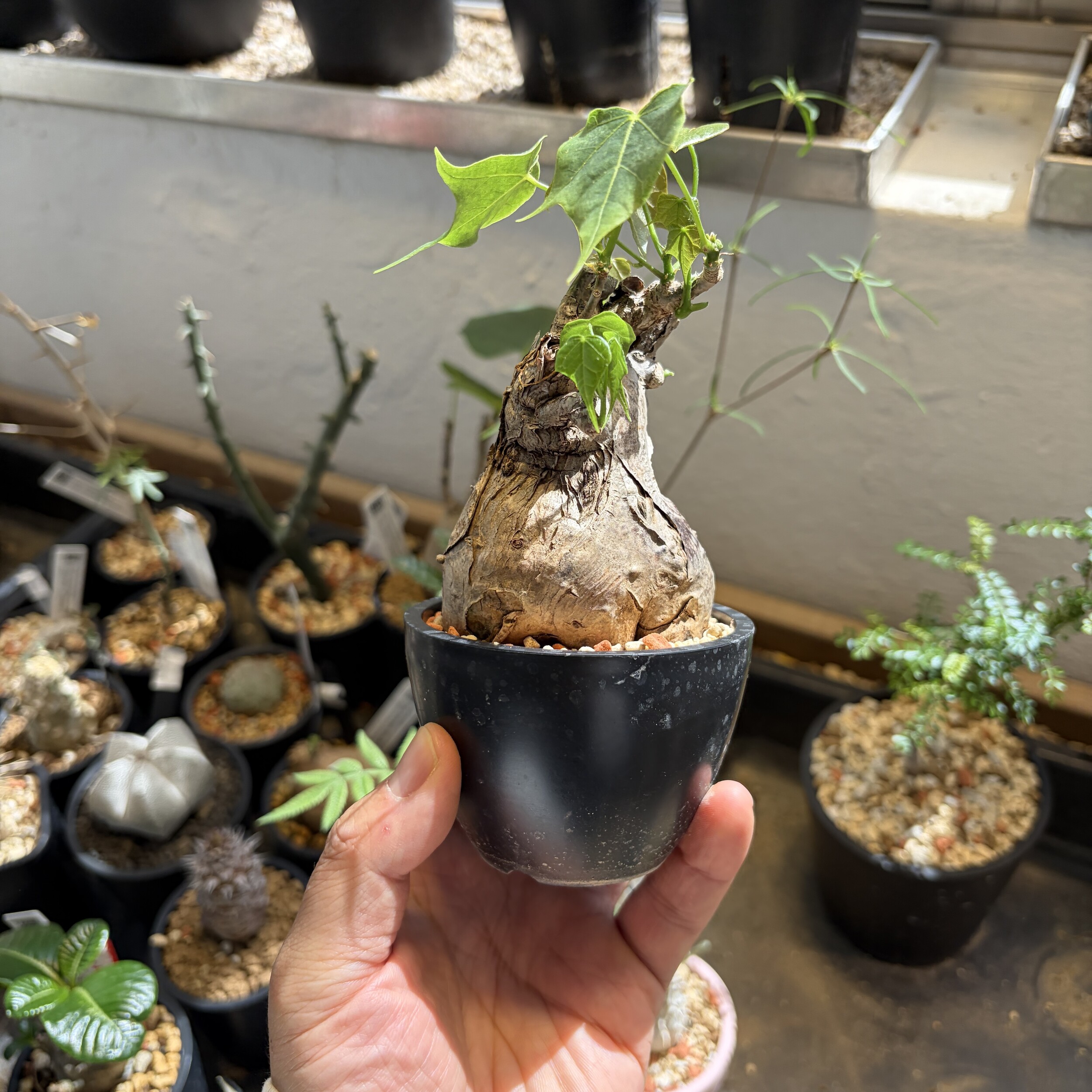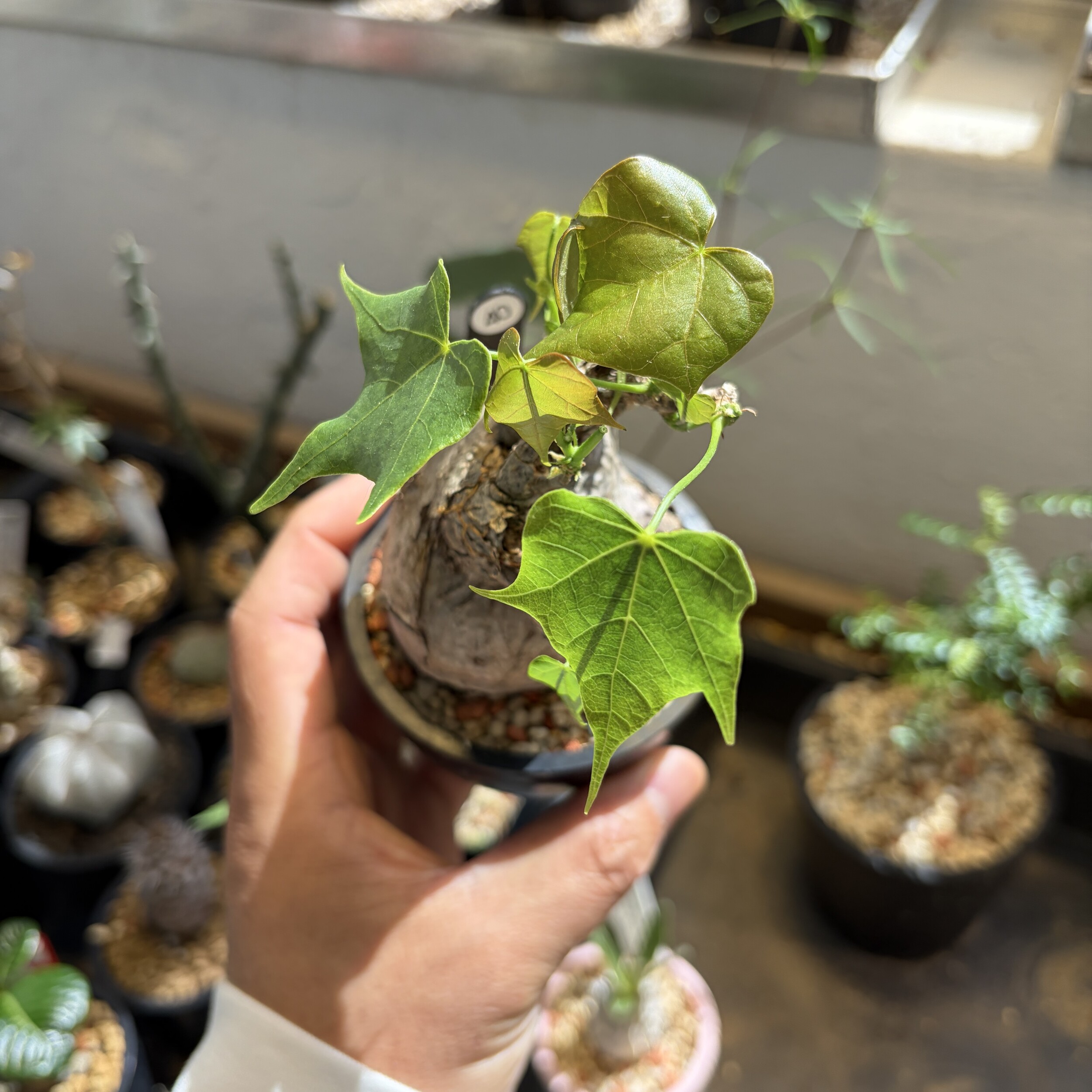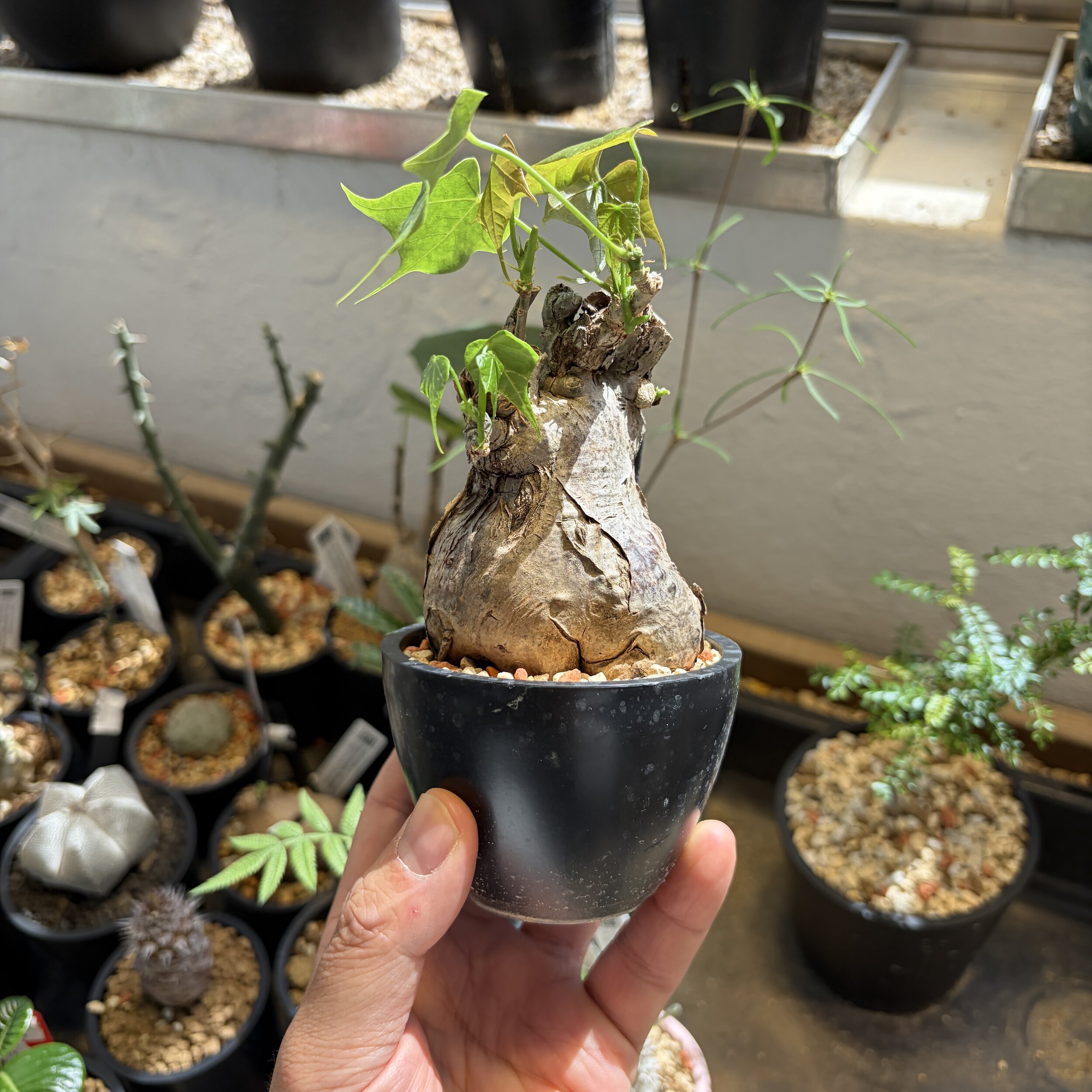 'Caudex' 식물들은 늦가을부터 자연스럽게 잎이 떨어집니다. (환경에 따라 잎이 지지 않을 수 있습니다.) 잎이 떨어지기 시작하면 서서히 물을 줄여나가며 휴면기인 겨울 동안에는 2-3주 1회 가볍게 분무 해주시면 됩니다.