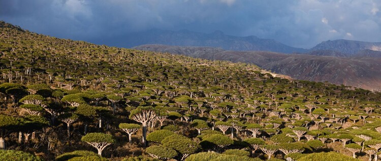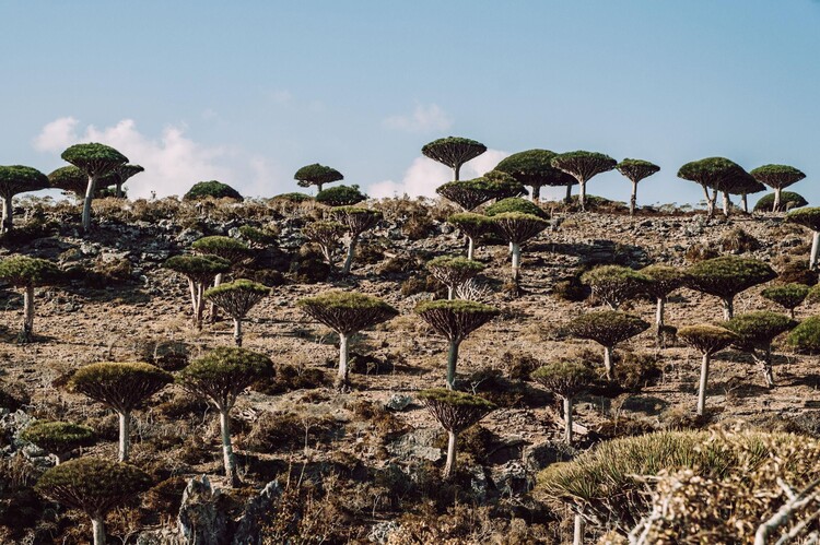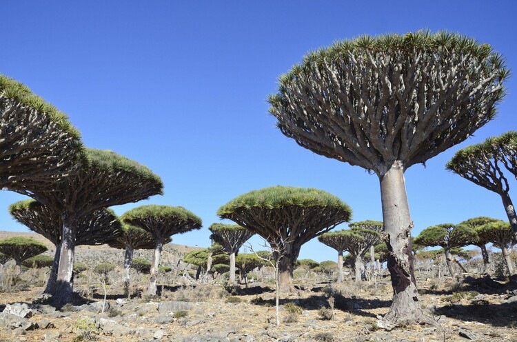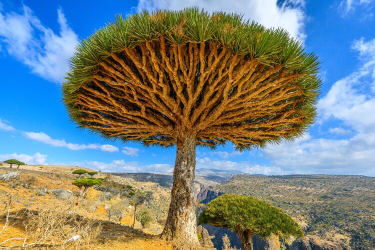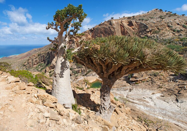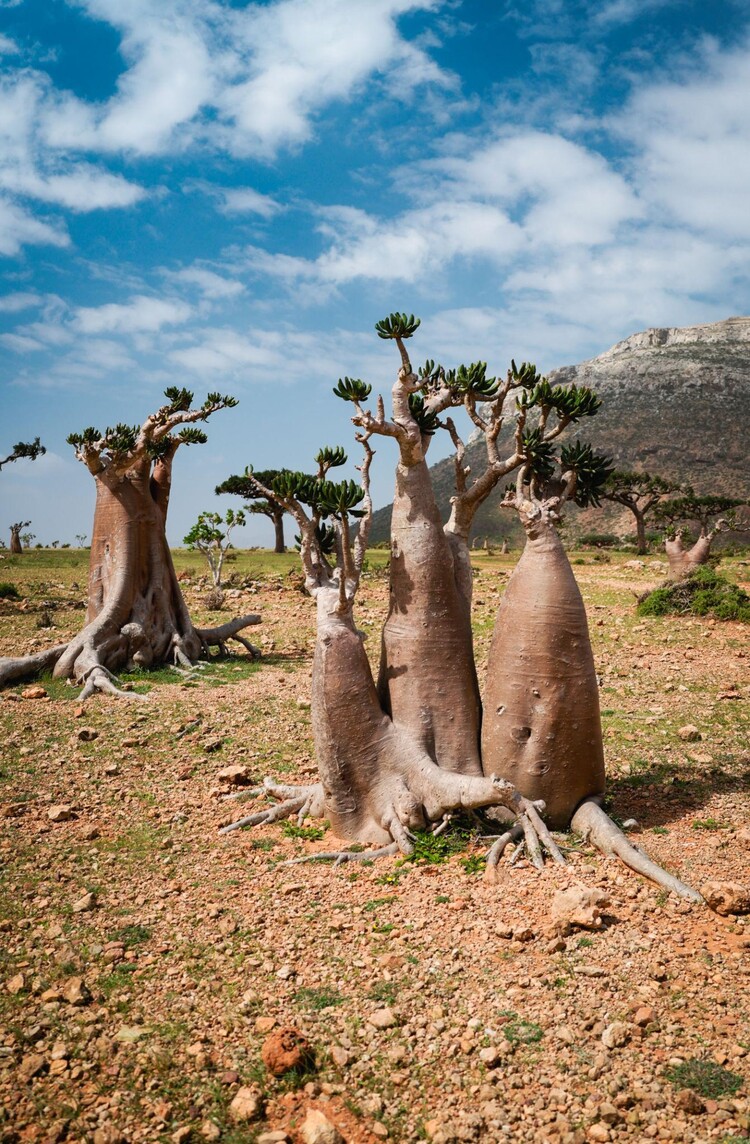 Dendrosicyos socotrana 함께 있는 모습이 인상적입니다.