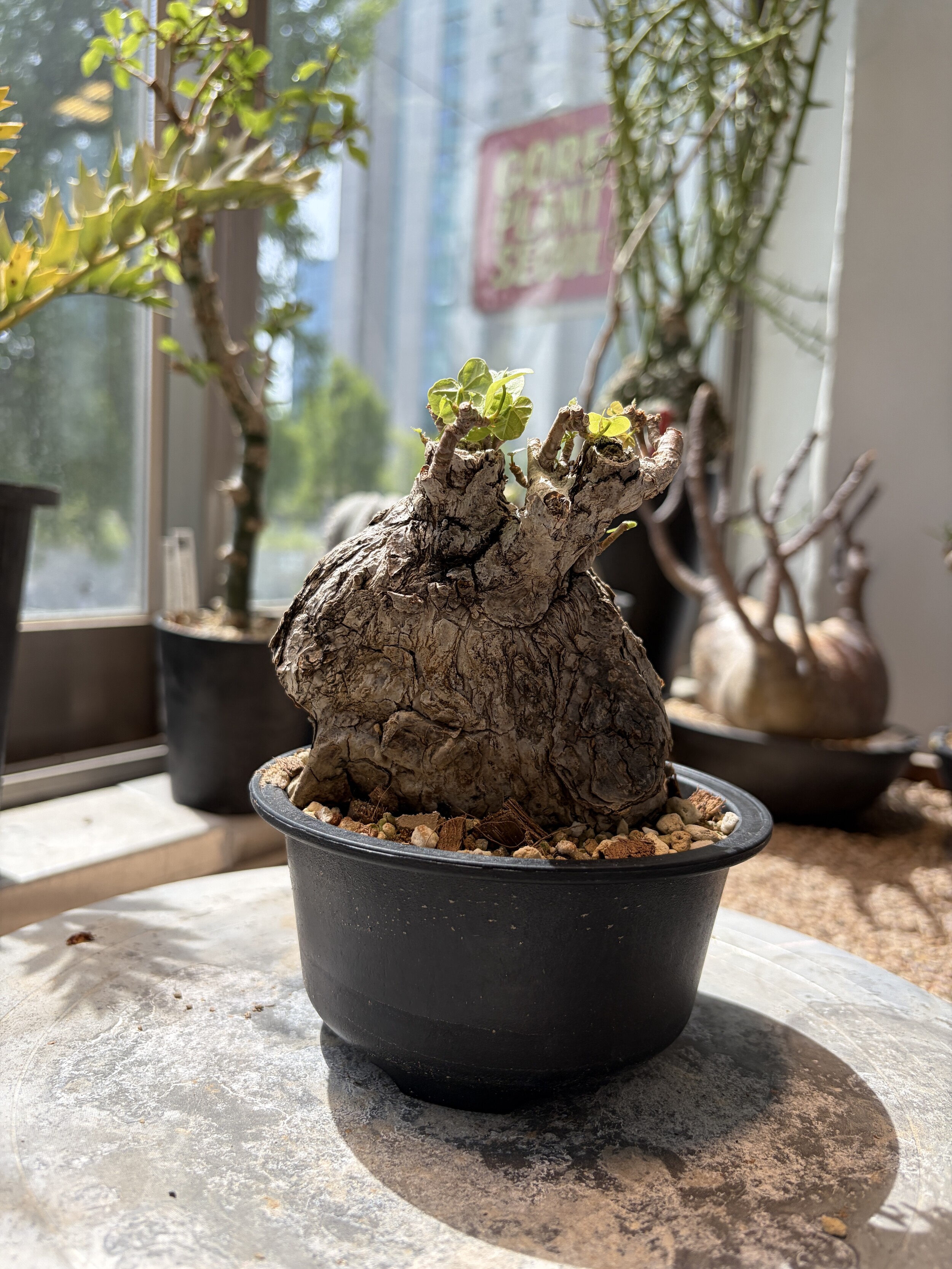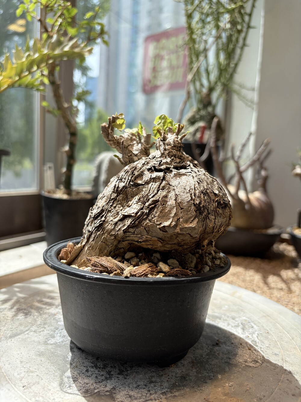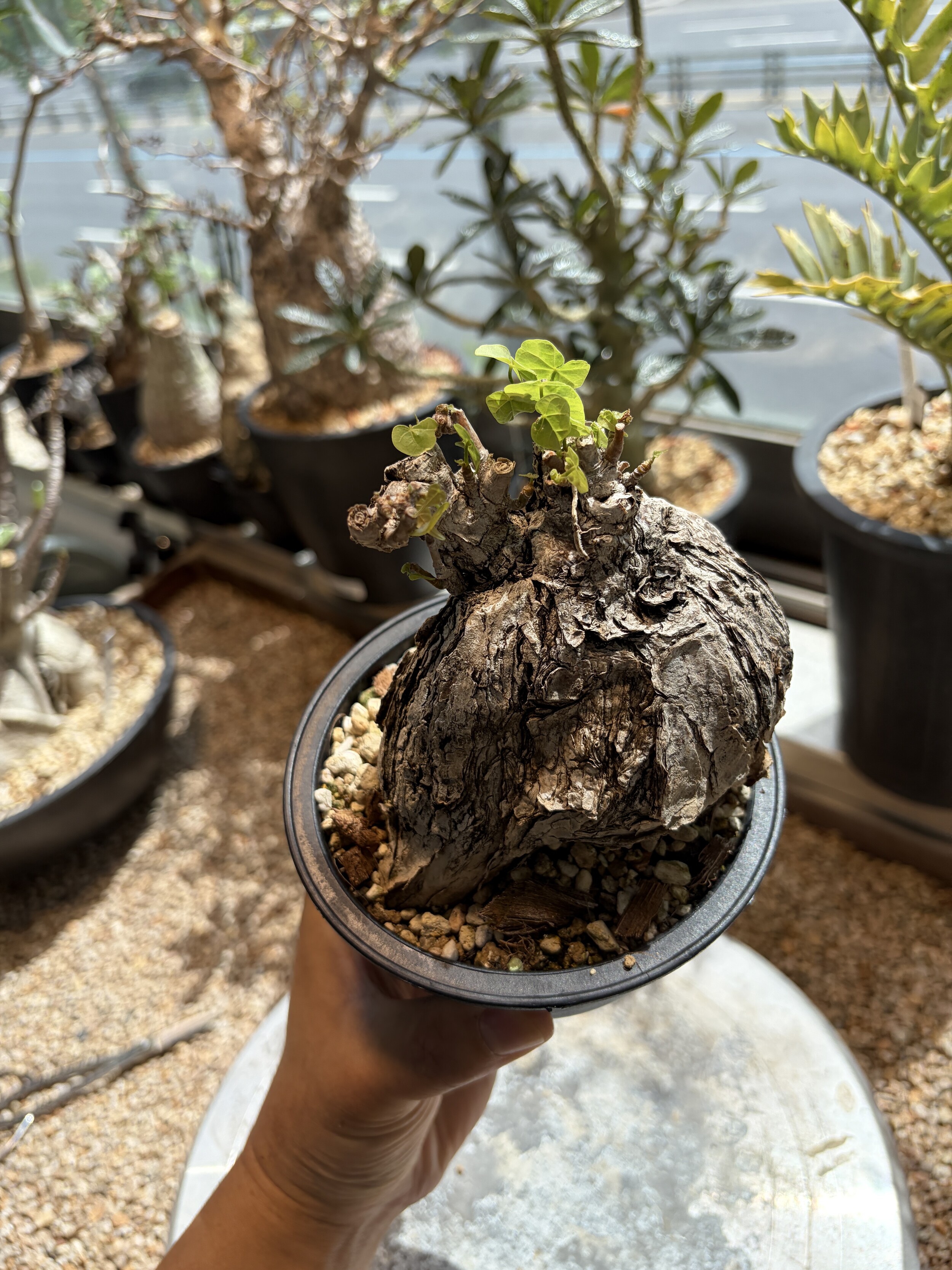 'Caudex' 식물들은 늦가을부터 자연스럽게 잎이 떨어집니다. (환경에 따라 잎이 지지 않을 수 있습니다.) 잎이 떨어지기 시작하면 서서히 물을 줄여나가며 휴면기인 겨울 동안에는 2-3주 1회 가볍게 분무 해주시면 됩니다.