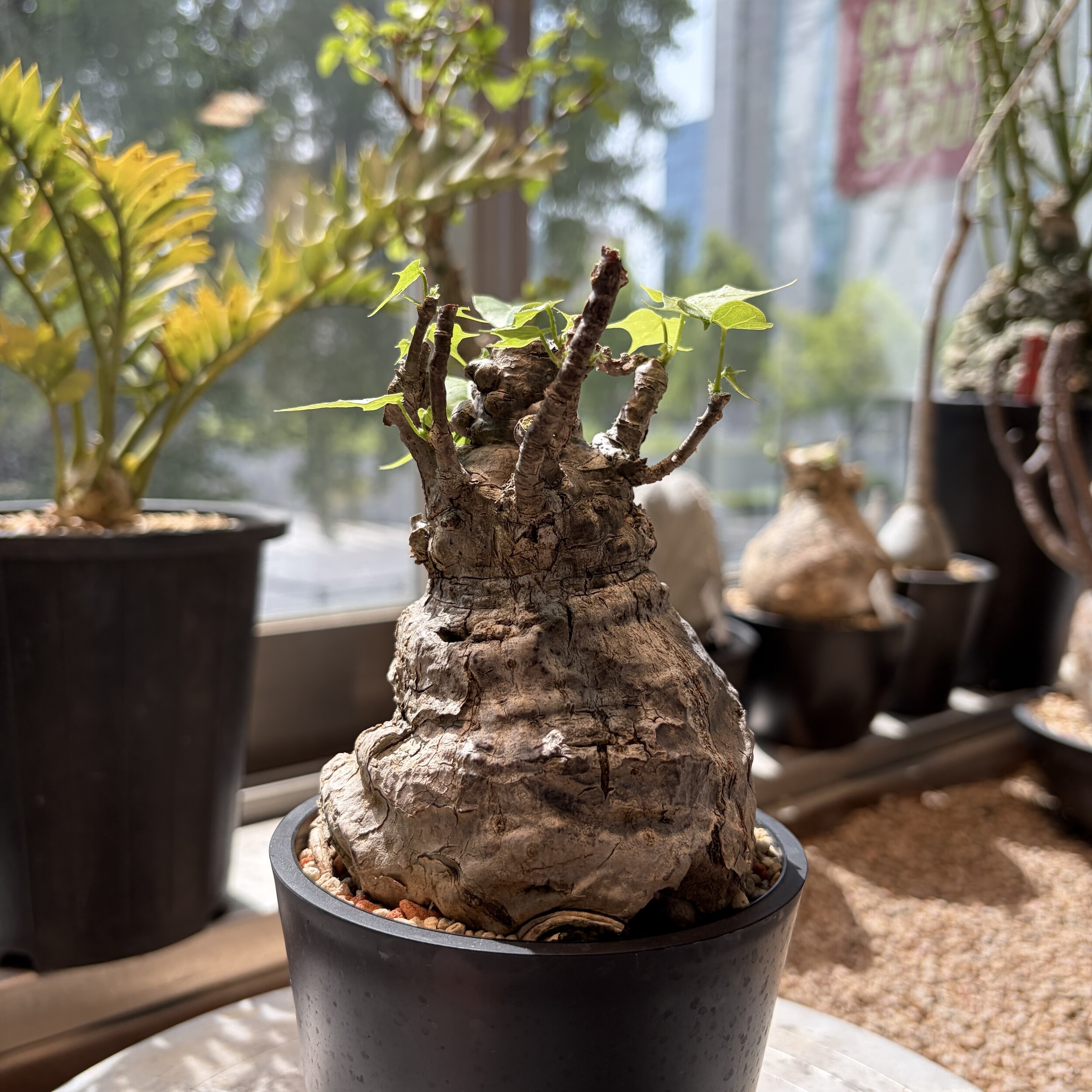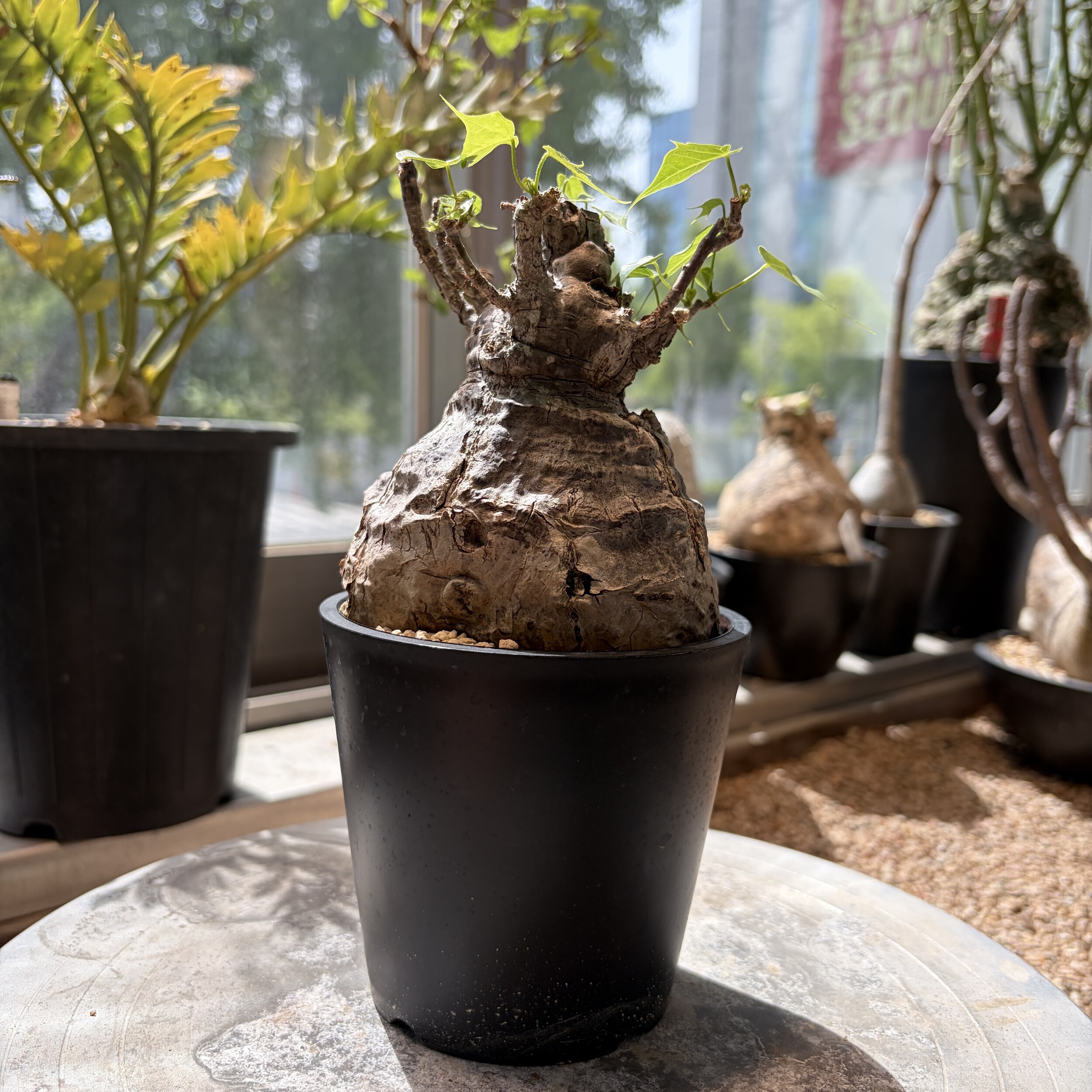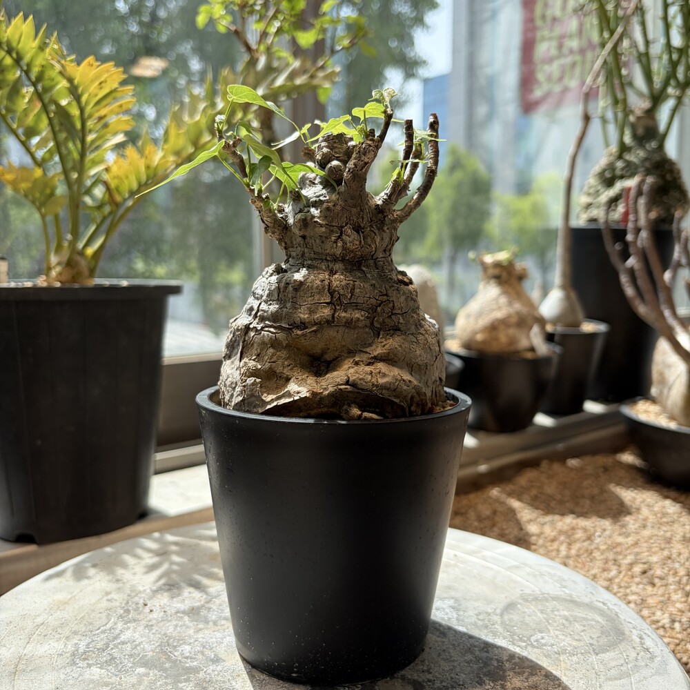 'Caudex' 식물들은 늦가을부터 자연스럽게 잎이 떨어집니다. (환경에 따라 잎이 지지 않을 수 있습니다.) 잎이 떨어지기 시작하면 서서히 물을 줄여나가며 휴면기인 겨울 동안에는 2-3주 1회 가볍게 분무 해주시면 됩니다.