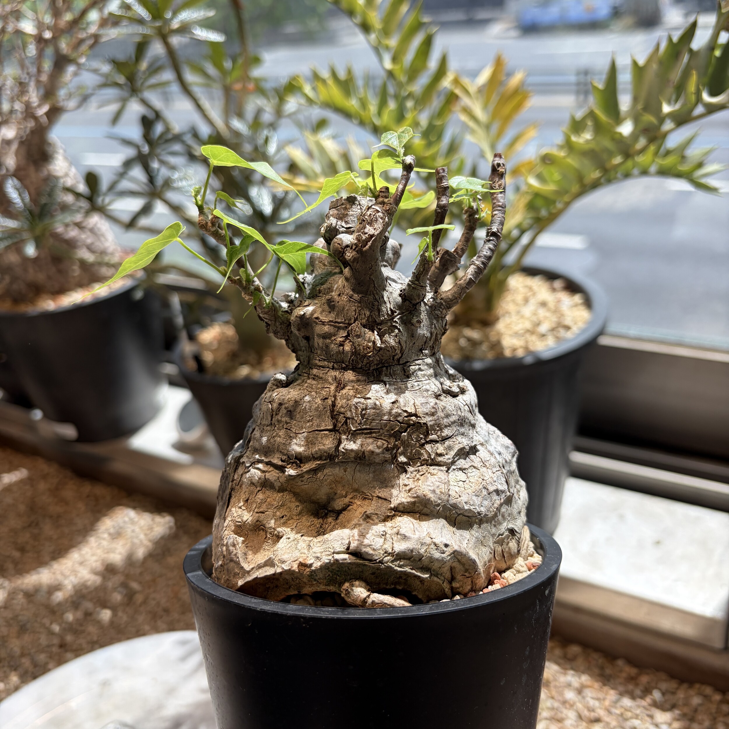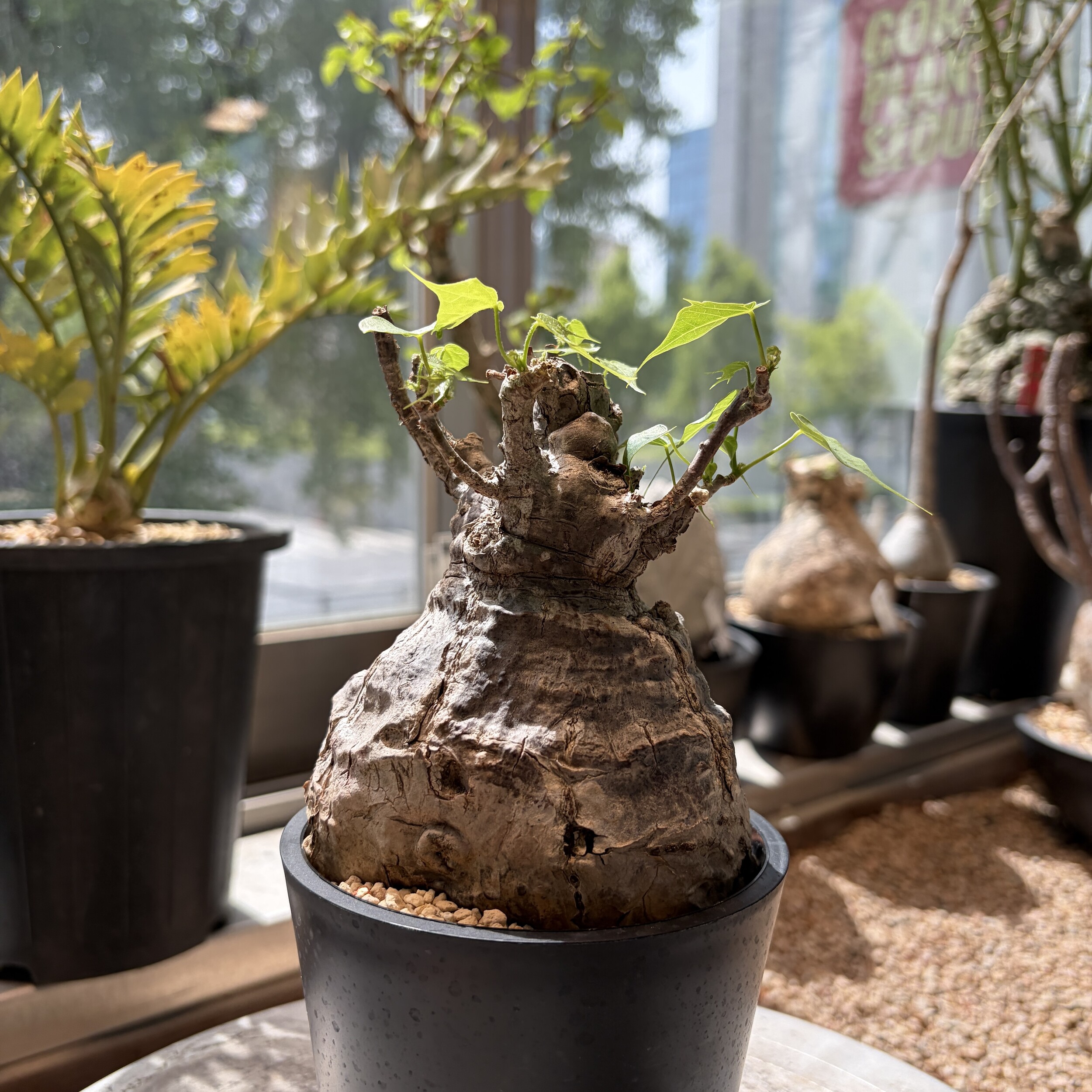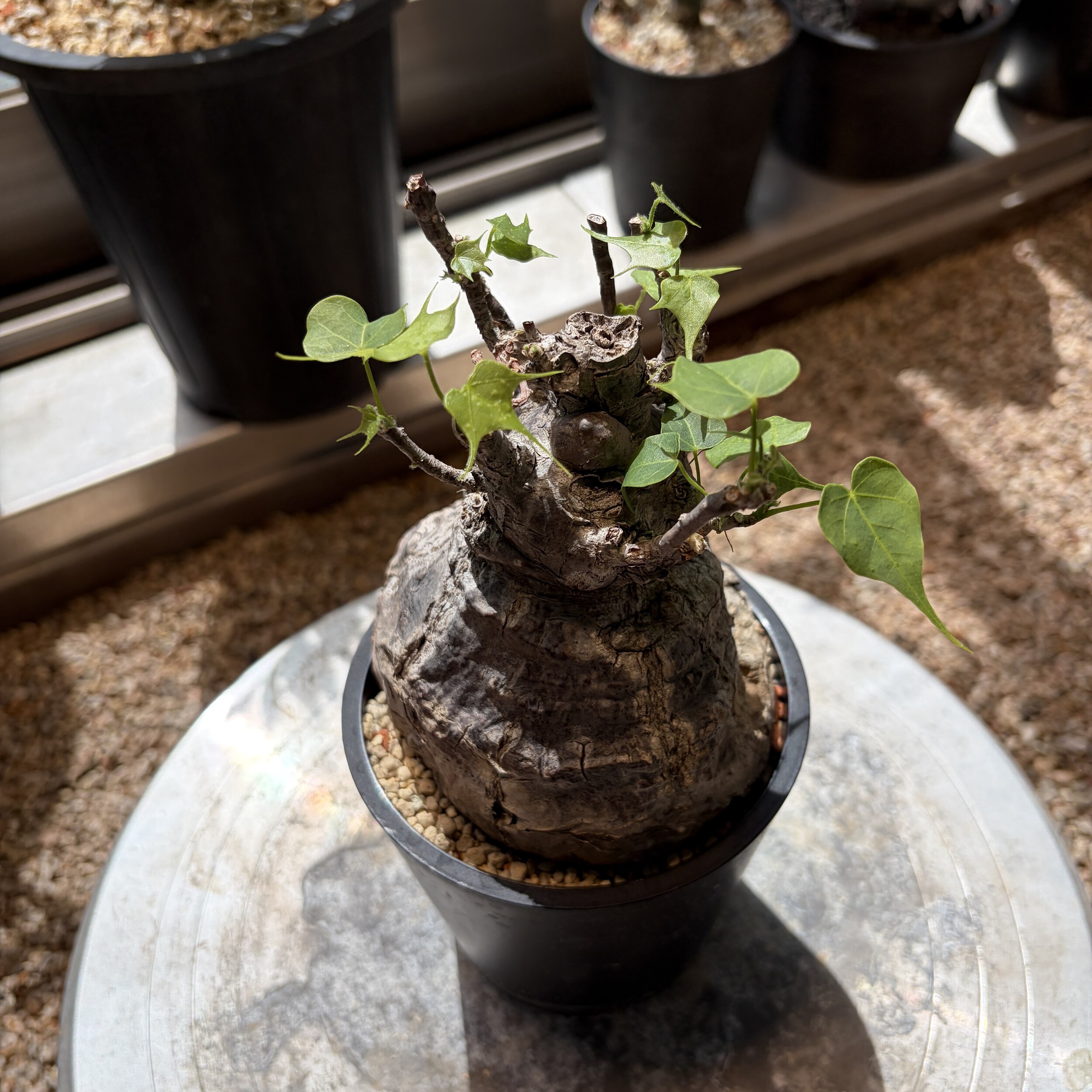 'Caudex' 식물들은 늦가을부터 자연스럽게 잎이 떨어집니다. (환경에 따라 잎이 지지 않을 수 있습니다.) 잎이 떨어지기 시작하면 서서히 물을 줄여나가며 휴면기인 겨울 동안에는 2-3주 1회 가볍게 분무 해주시면 됩니다.