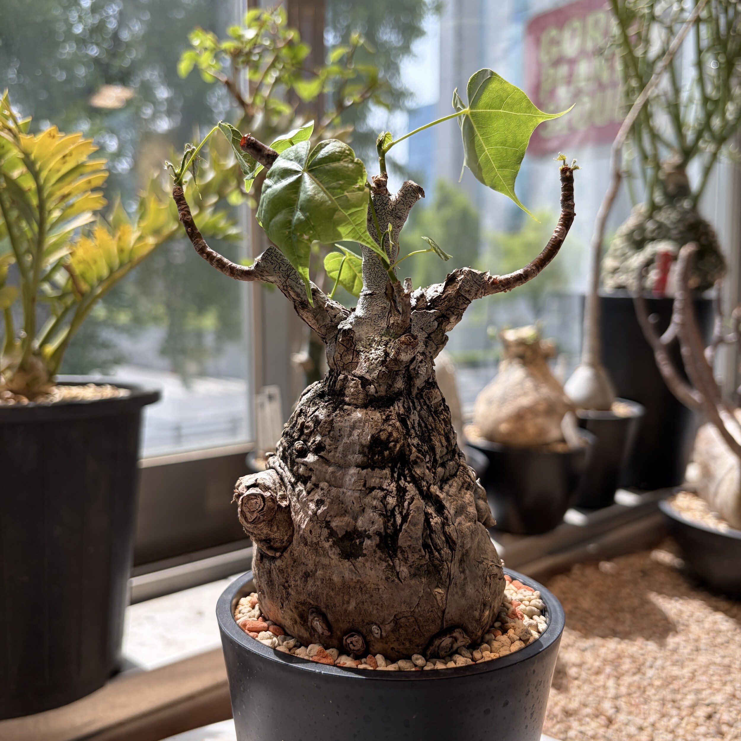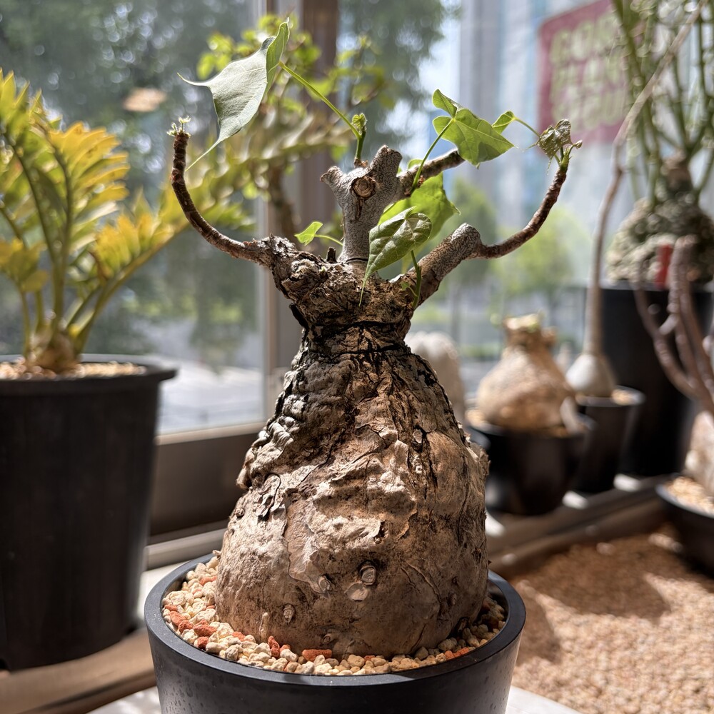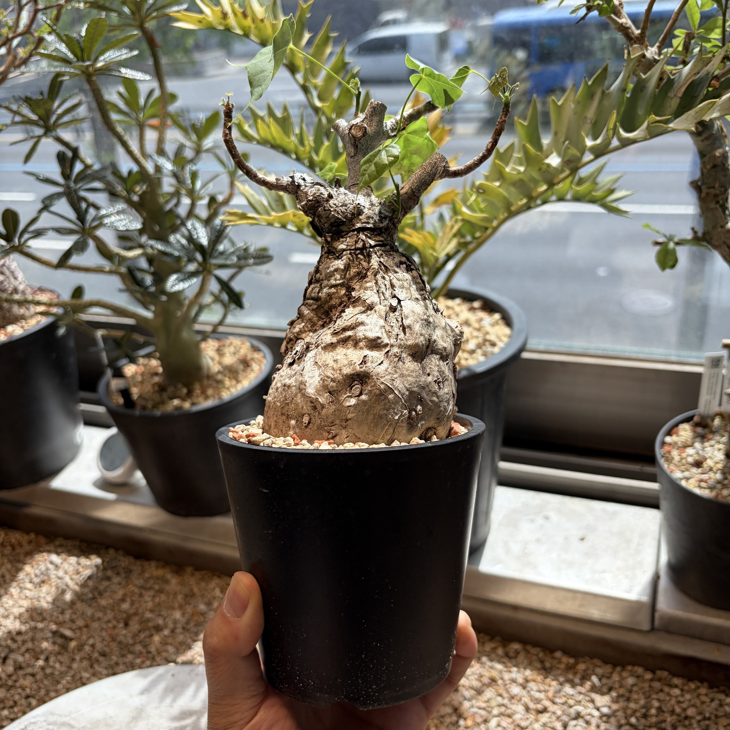 'Caudex' 식물들은 늦가을부터 자연스럽게 잎이 떨어집니다. (환경에 따라 잎이 지지 않을 수 있습니다.) 잎이 떨어지기 시작하면 서서히 물을 줄여나가며 휴면기인 겨울 동안에는 2-3주 1회 가볍게 분무 해주시면 됩니다.