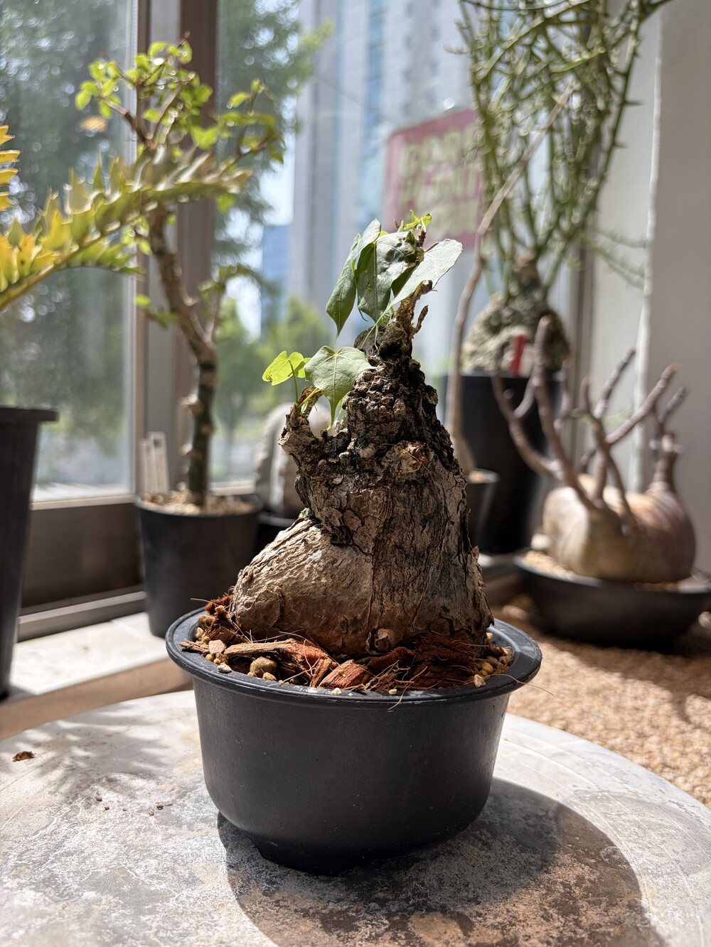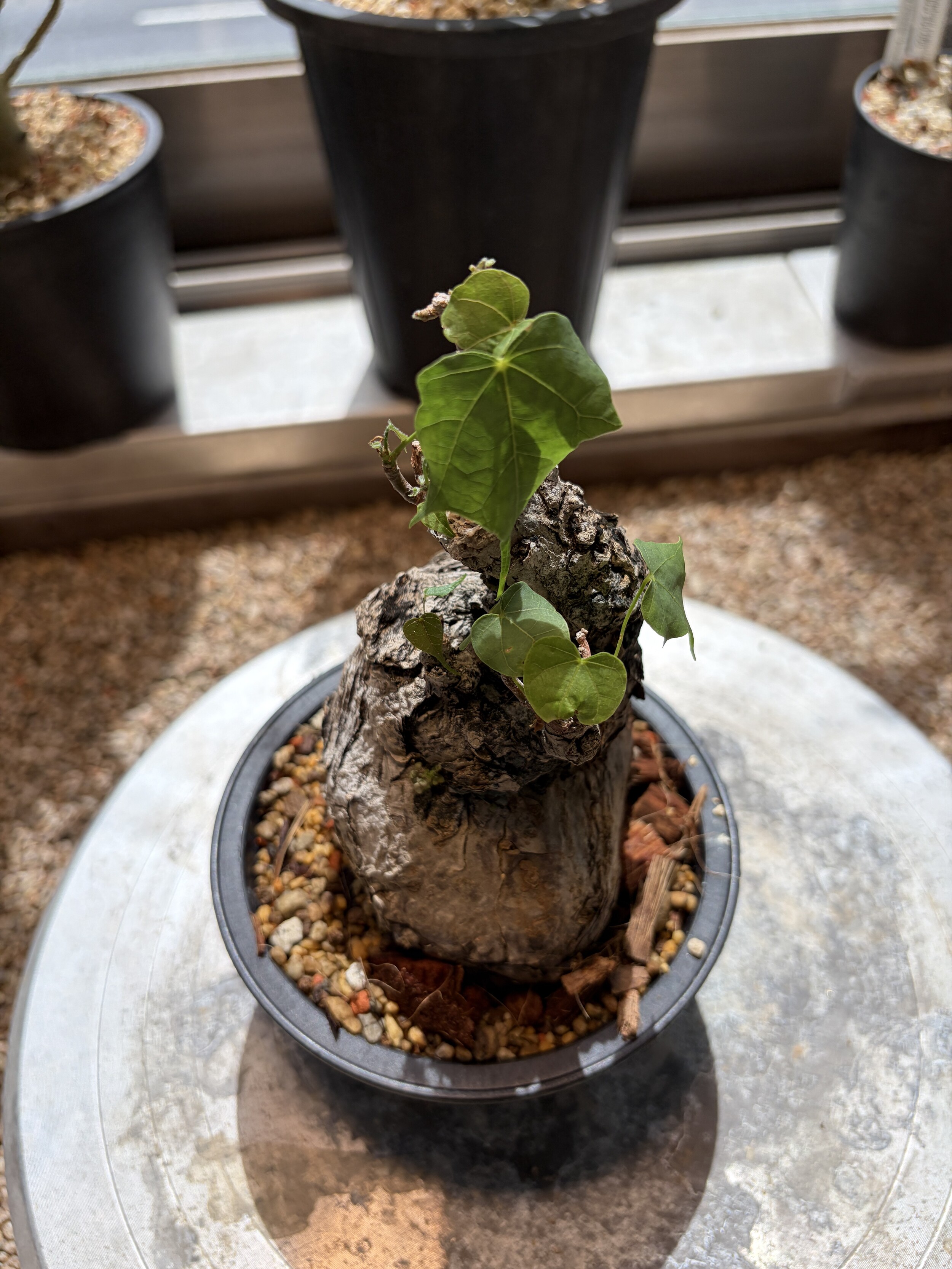 'Caudex' 식물들은 늦가을부터 자연스럽게 잎이 떨어집니다. (환경에 따라 잎이 지지 않을 수 있습니다.) 잎이 떨어지기 시작하면 서서히 물을 줄여나가며 휴면기인 겨울 동안에는 2-3주 1회 가볍게 분무 해주시면 됩니다.