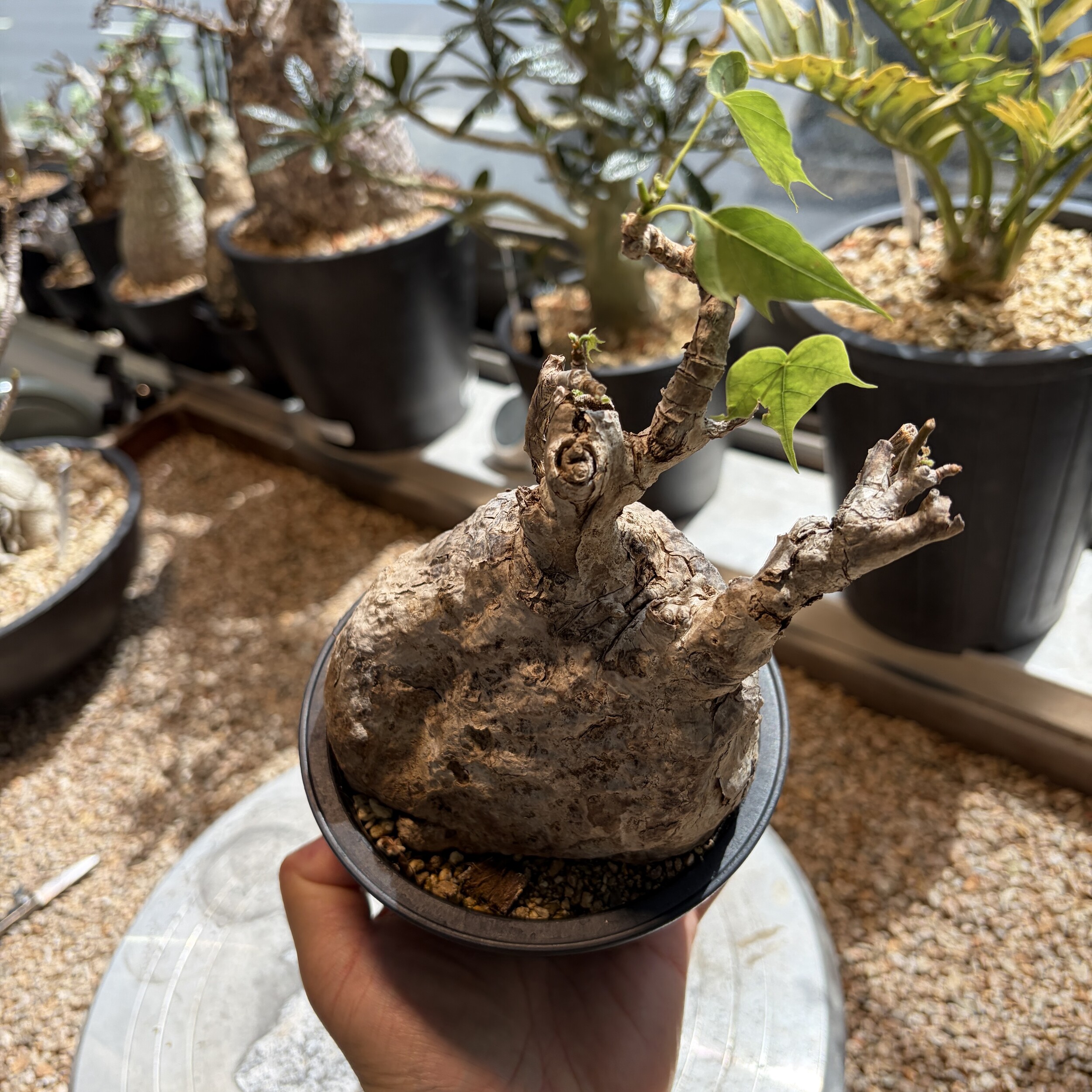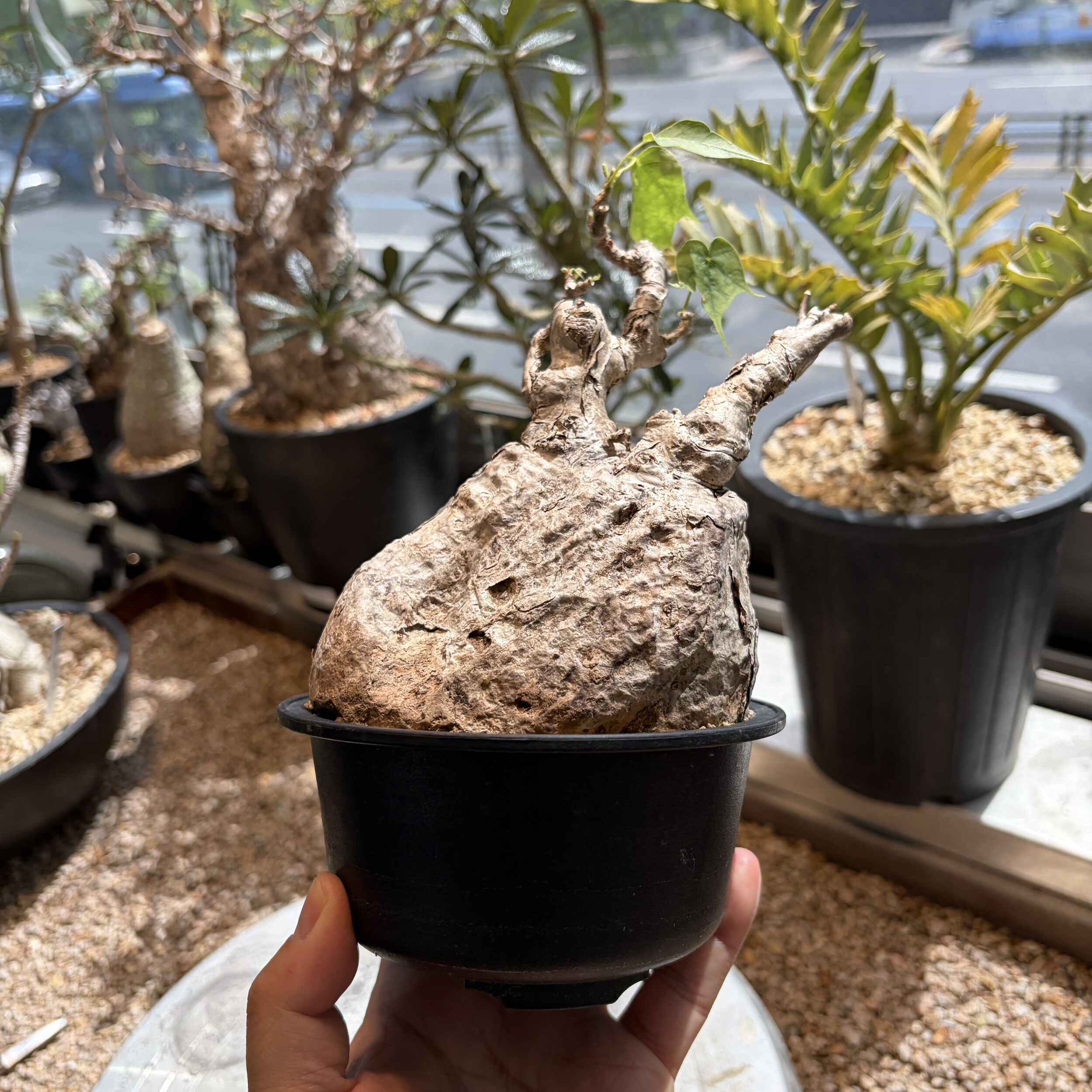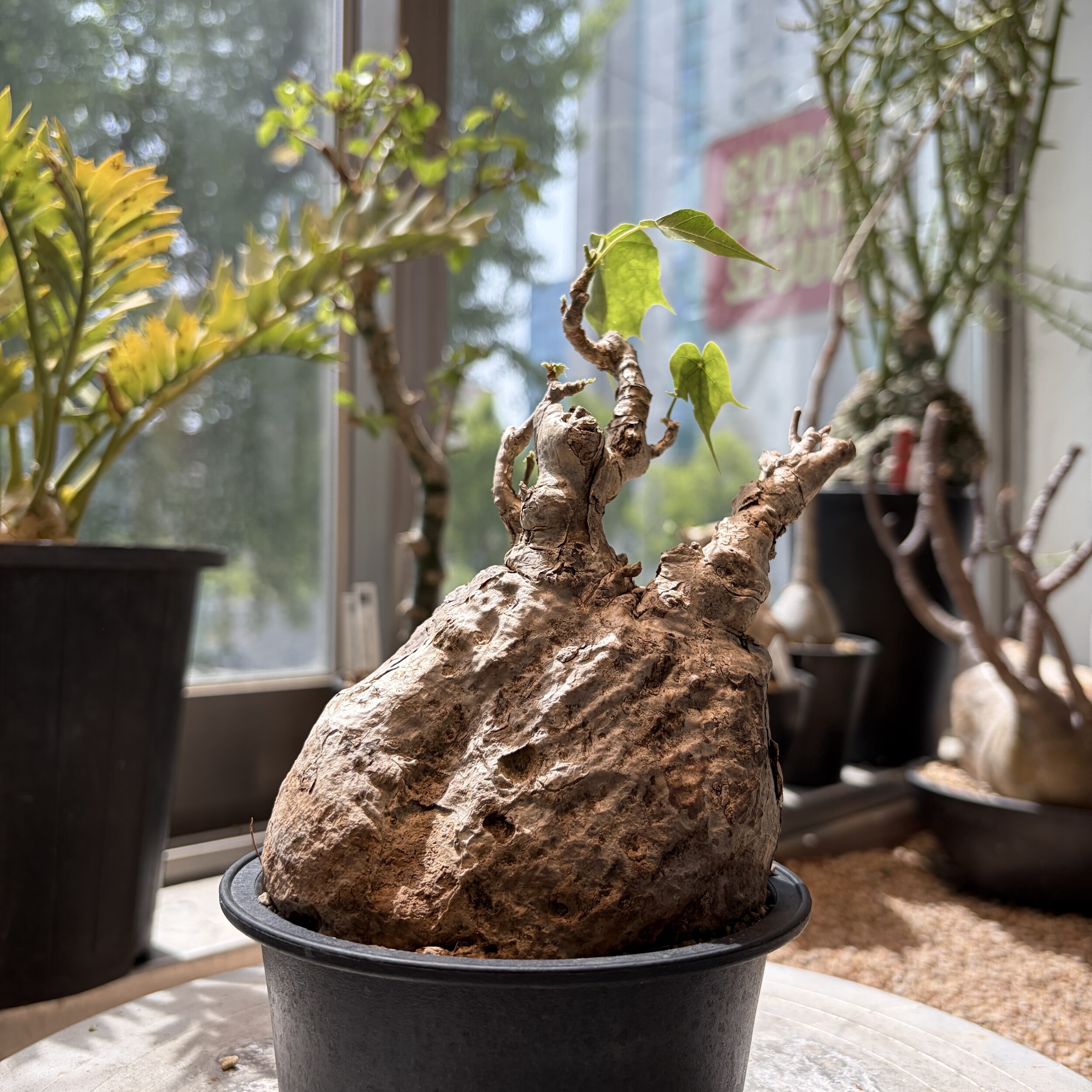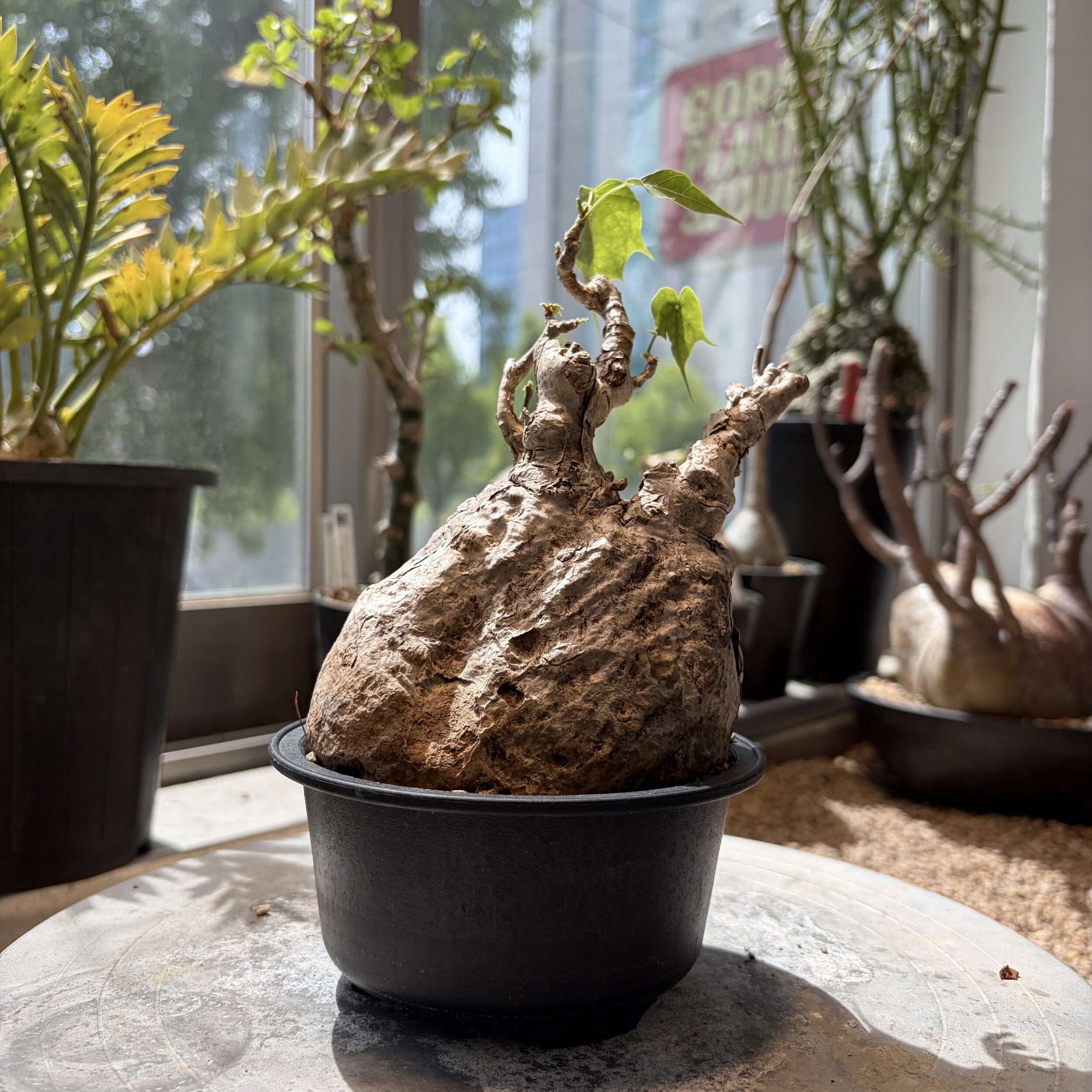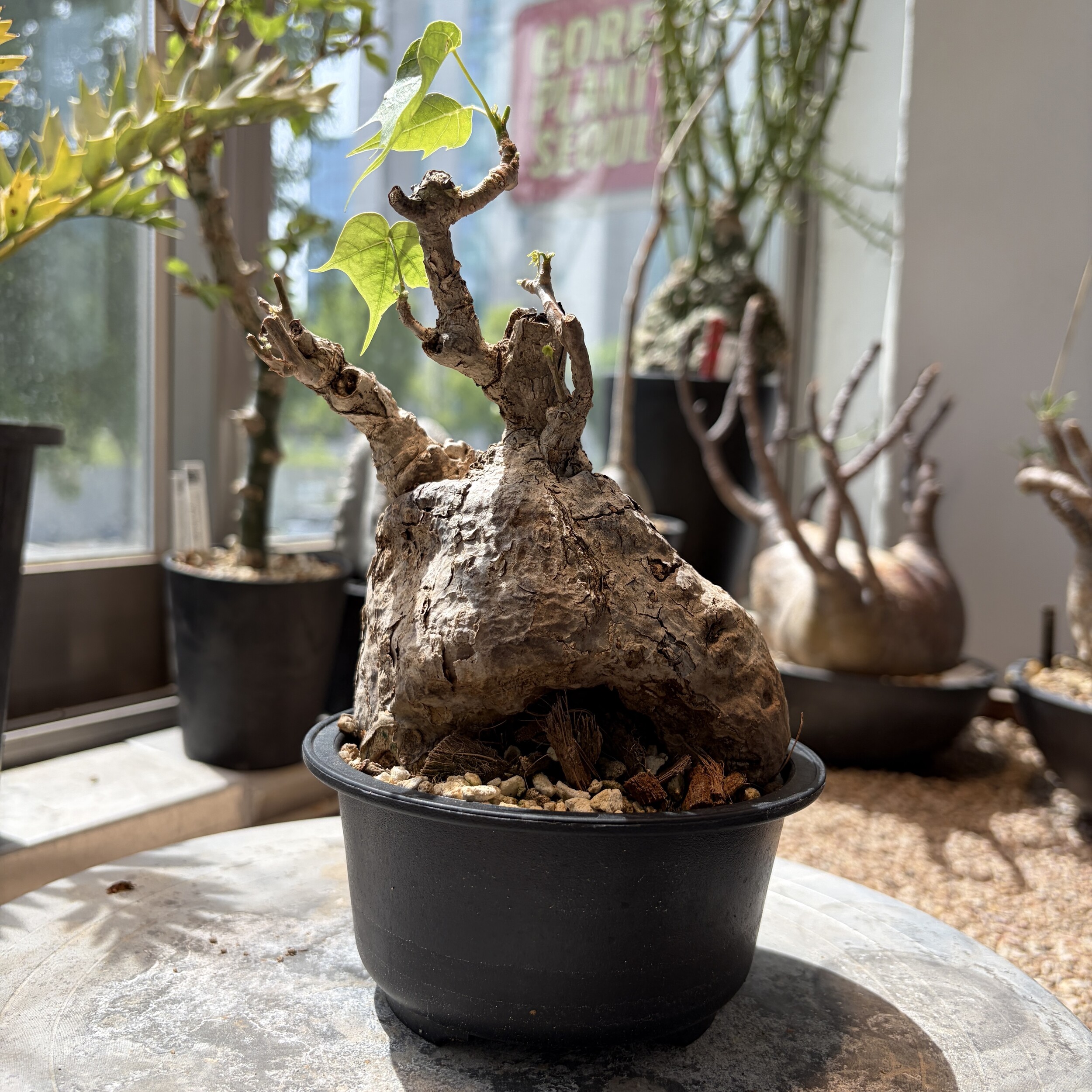 'Caudex' 식물들은 늦가을부터 자연스럽게 잎이 떨어집니다. (환경에 따라 잎이 지지 않을 수 있습니다.) 잎이 떨어지기 시작하면 서서히 물을 줄여나가며 휴면기인 겨울 동안에는 2-3주 1회 가볍게 분무 해주시면 됩니다.